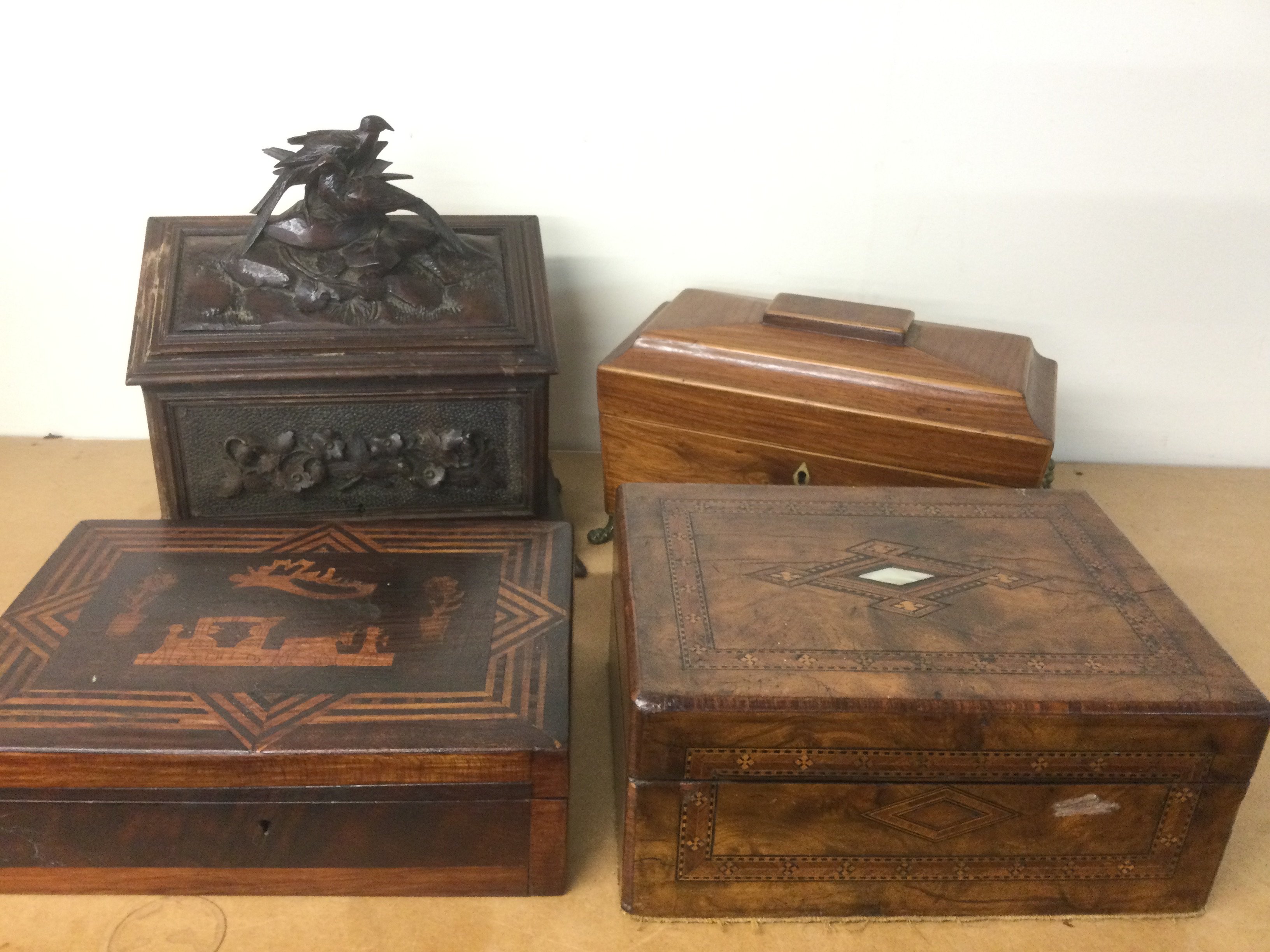 An inlaid workbox, tea caddy etc. Shipping category D.