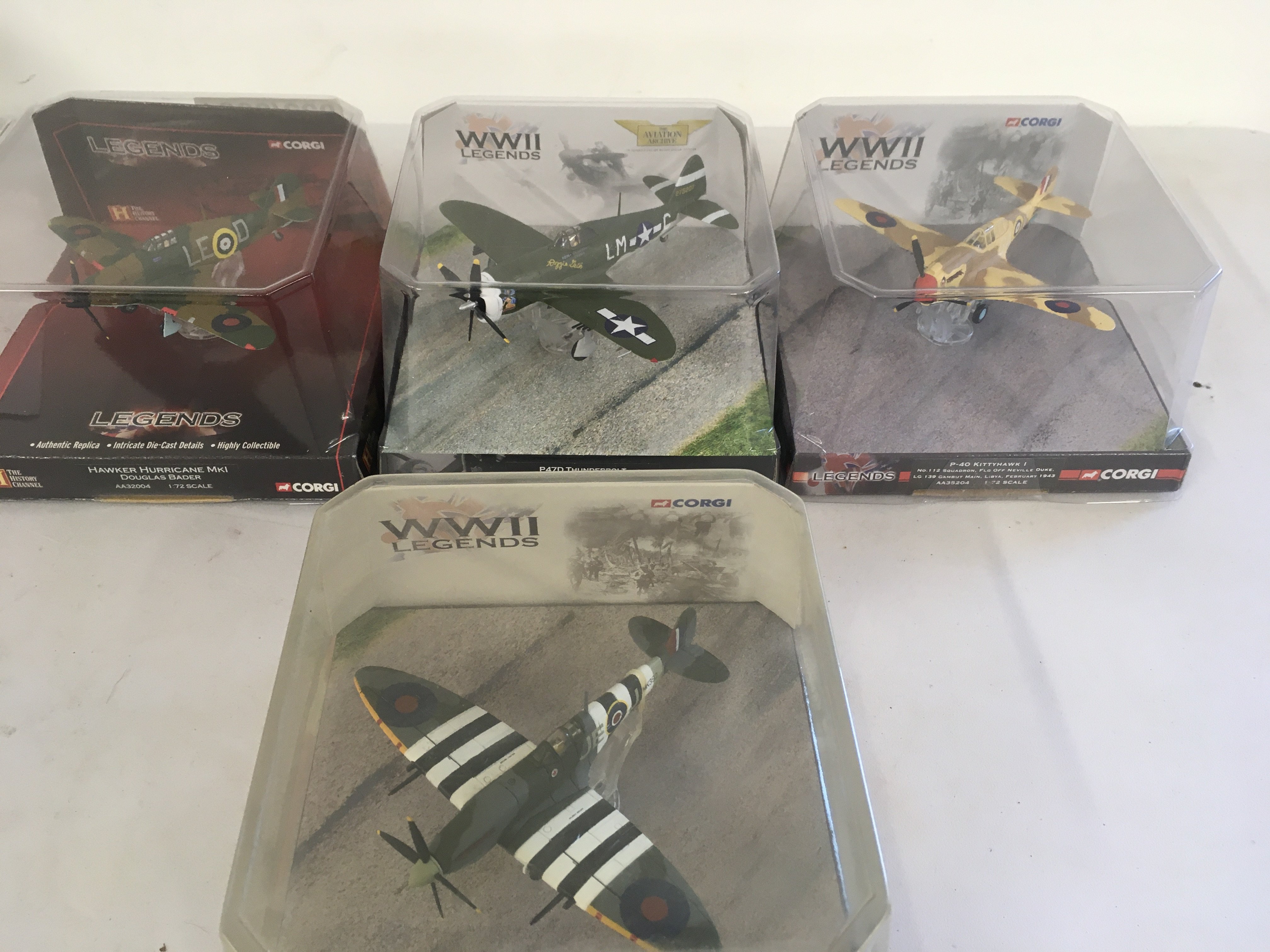 A collection of 4 model military aircraft by Corgi in original display packaging. All from the WWII Legends series.