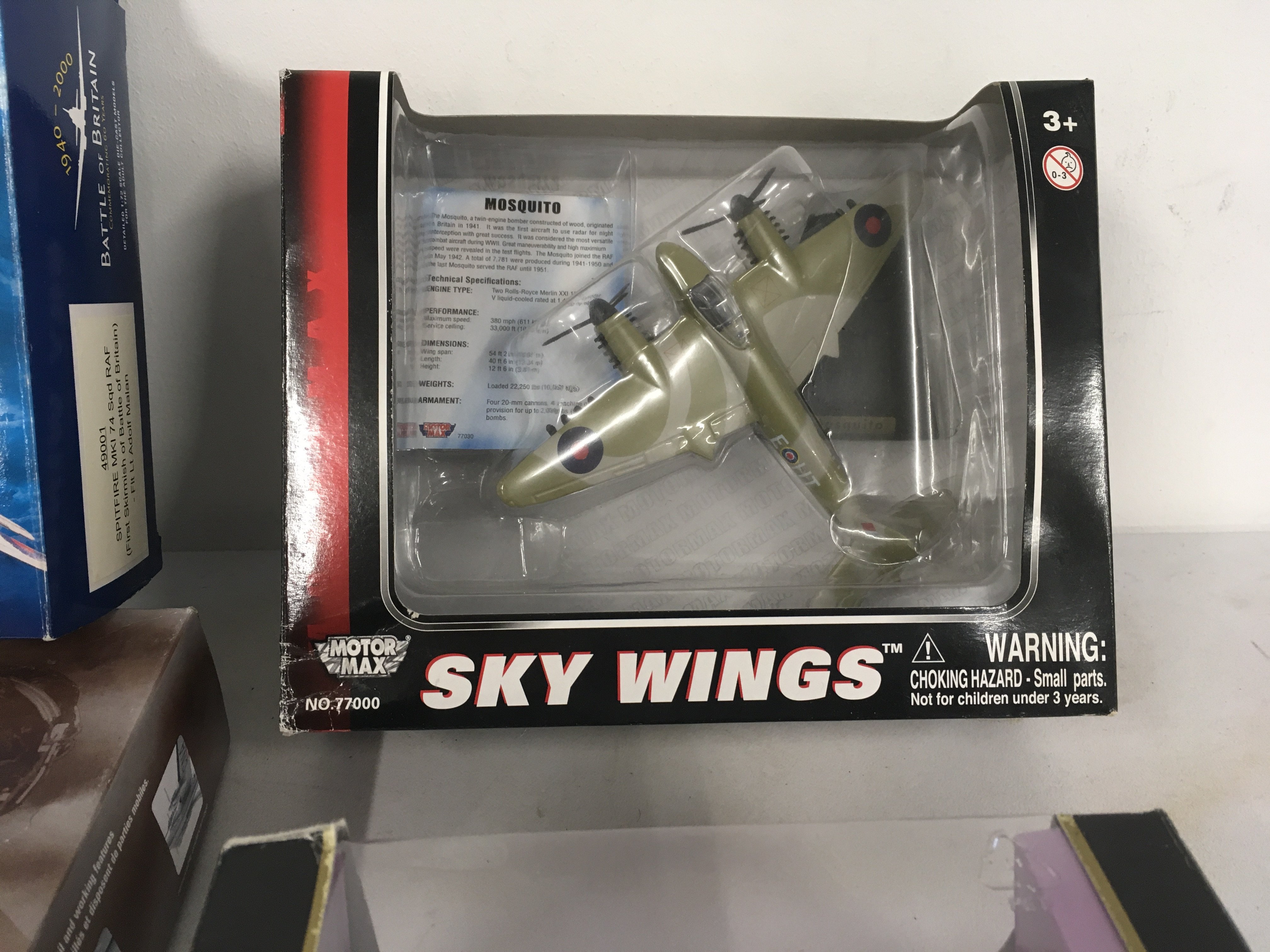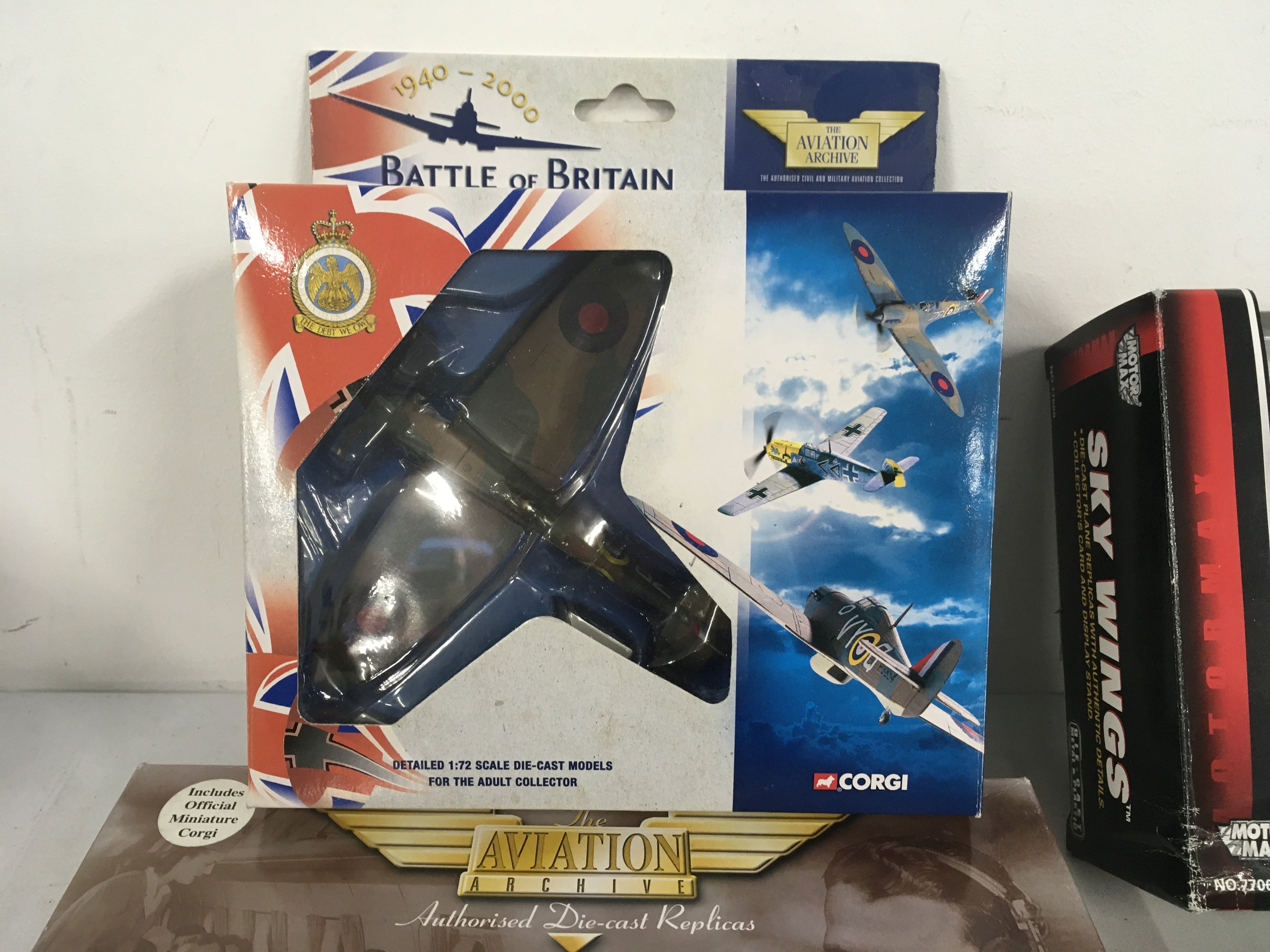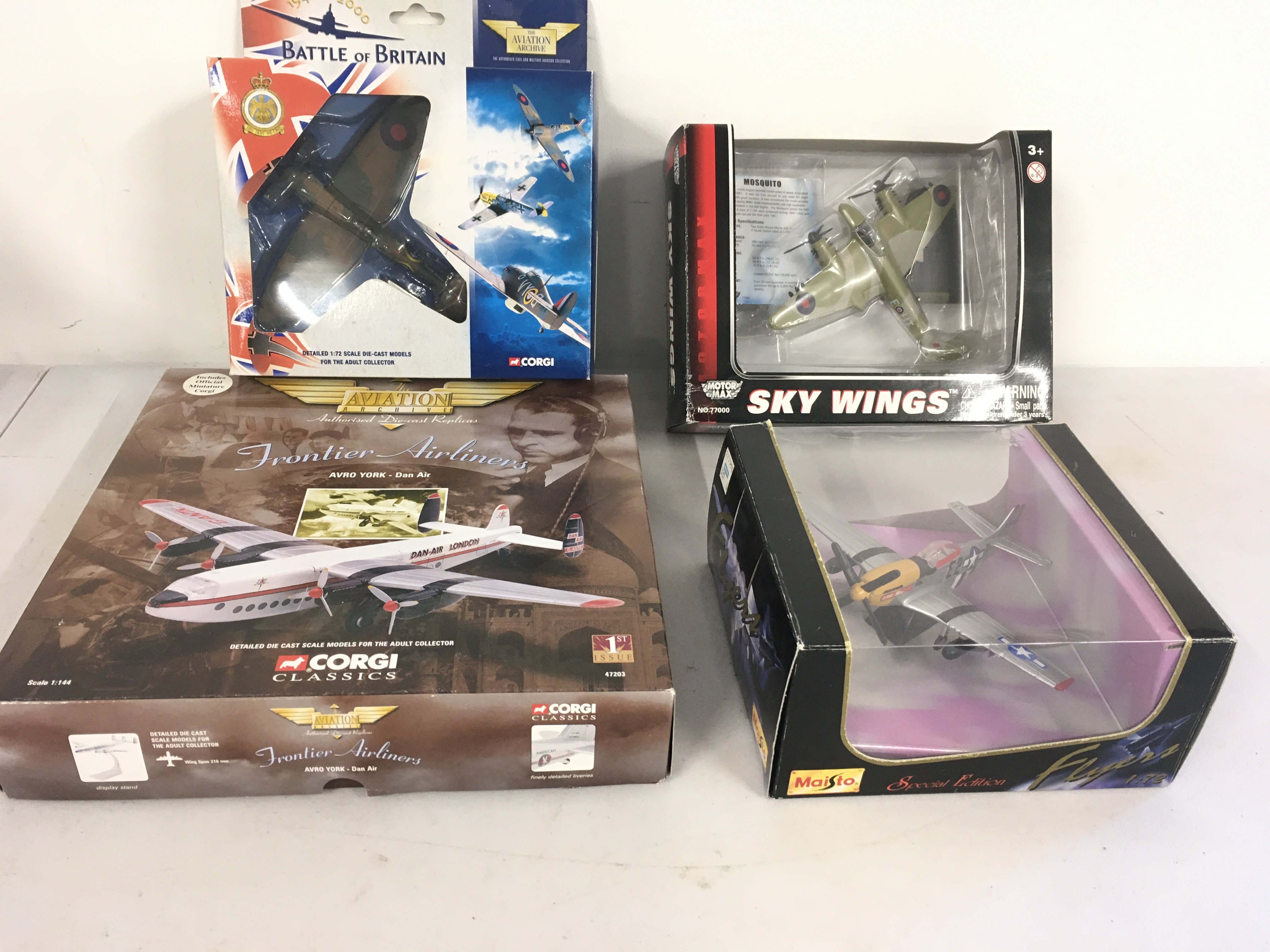 A collection of four model aircraft in original display packaging by Corgi..MotorMax and Maisto. Includes 47203 and a Battle of Britain set plus others.