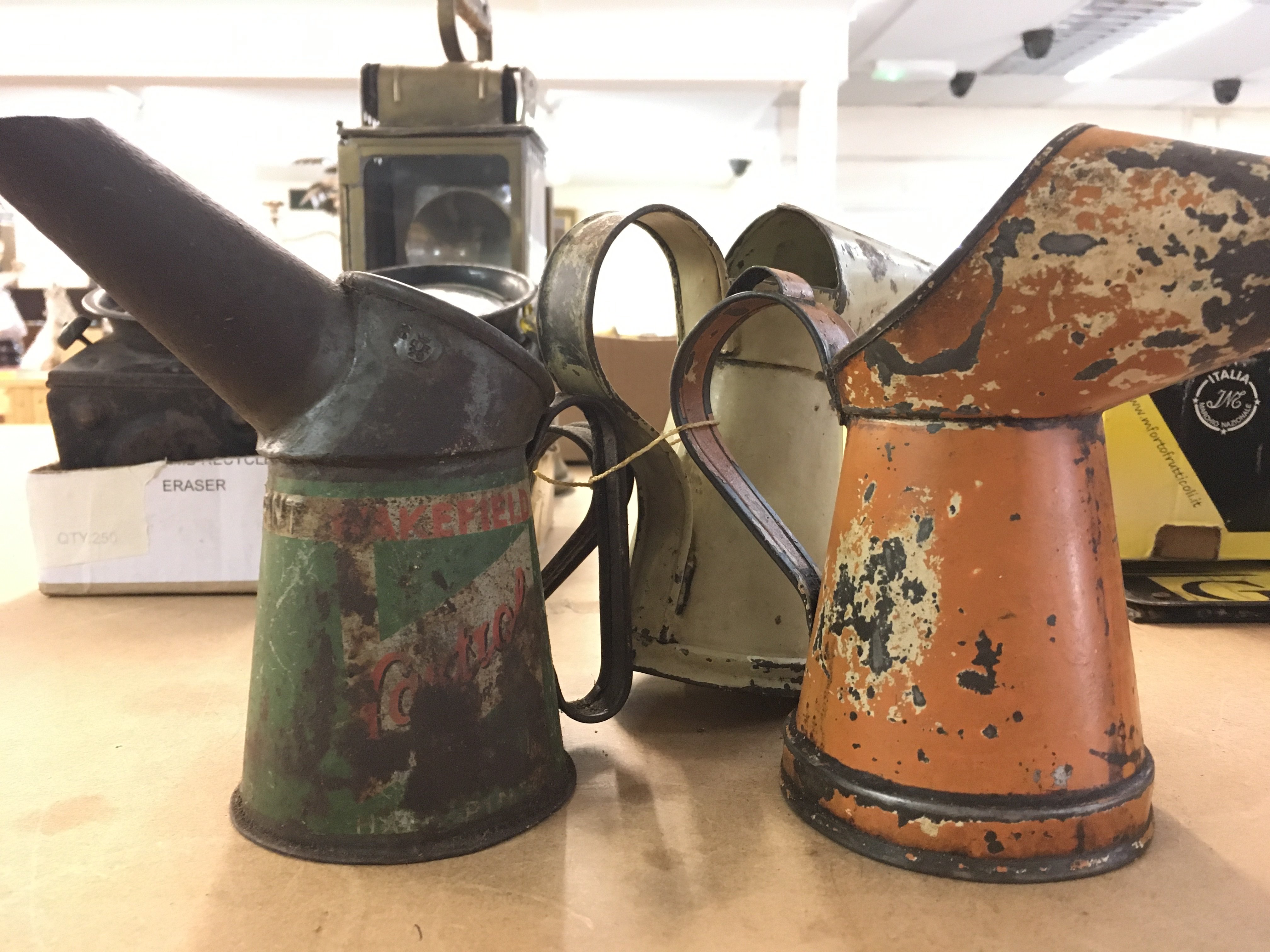 4 small quarter pint vintage oil jugs , all original. postage cat B