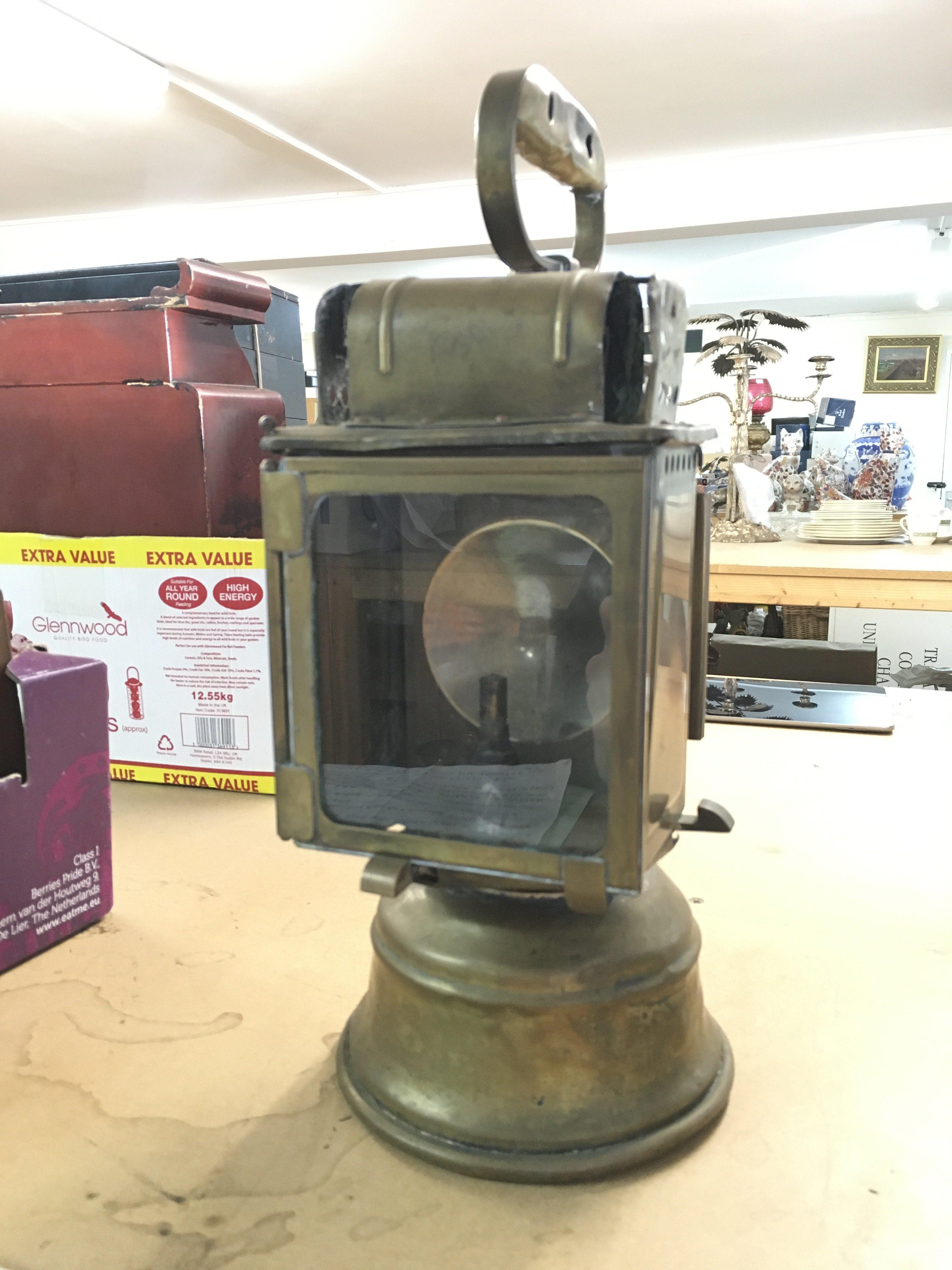An Unsual all brass carrying lamp with handle by dehail and greener plm French , this lot cannot be posted