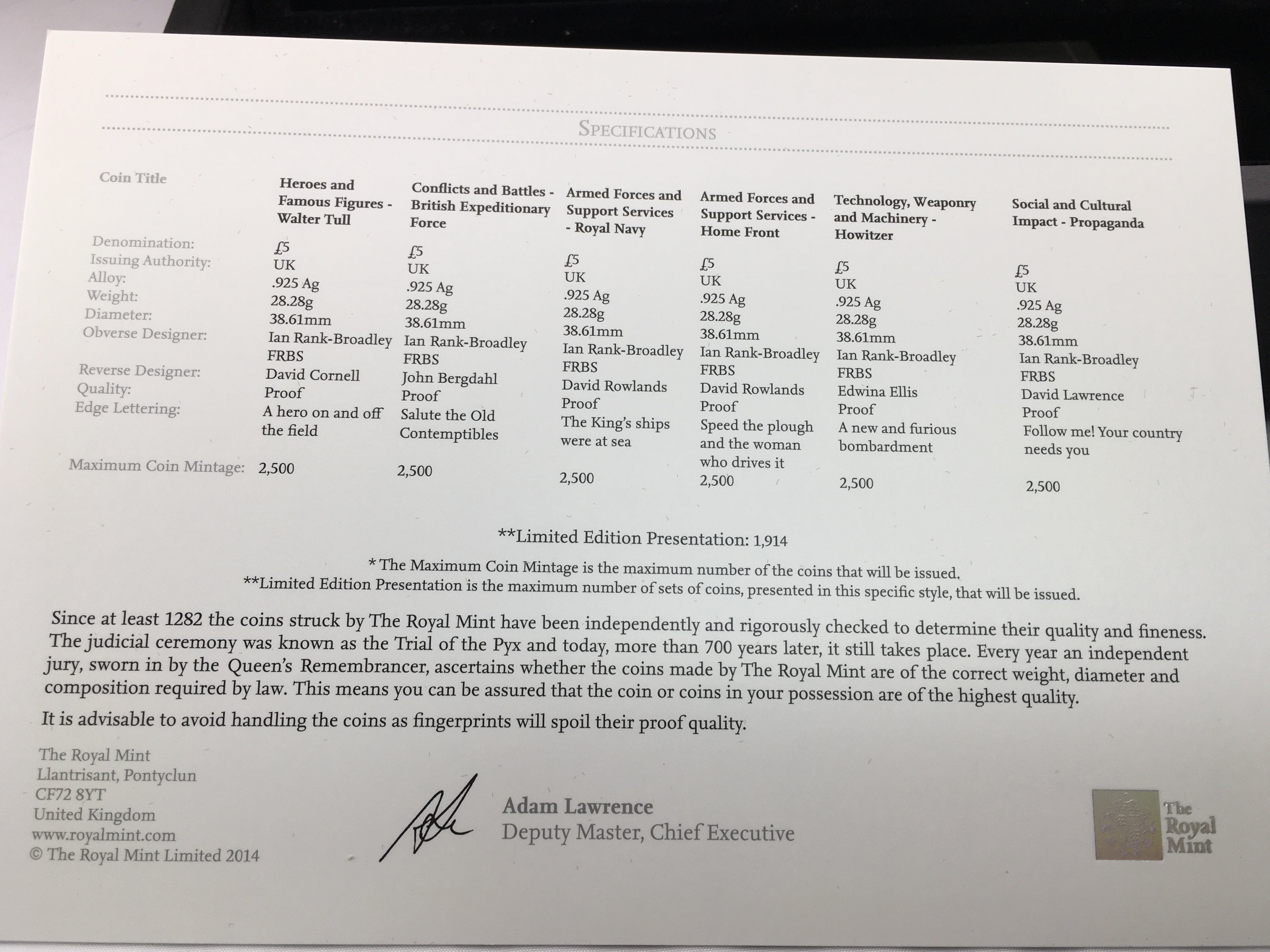 First World War 2014 silver proof 6 coin set with COA. Postage B