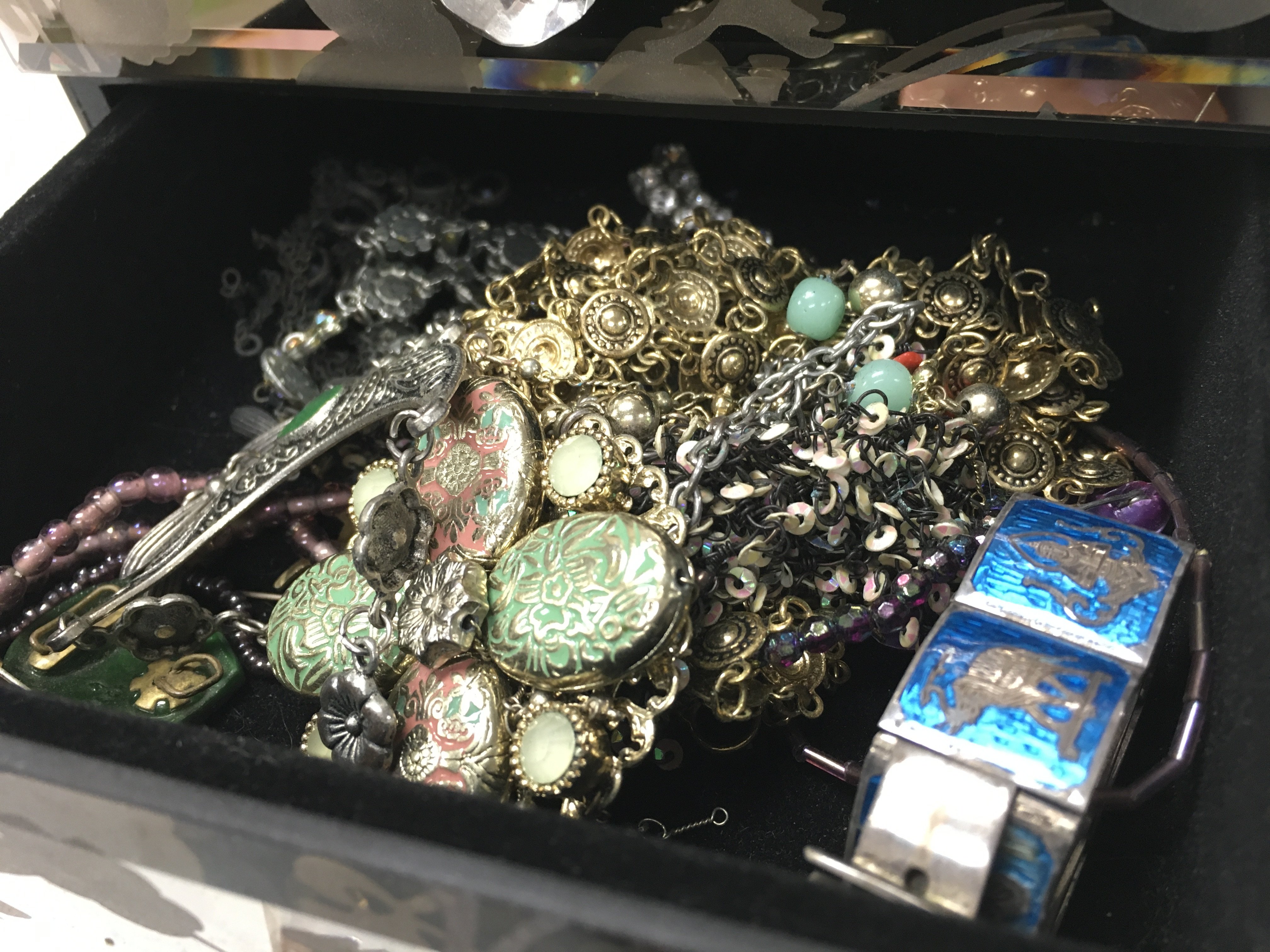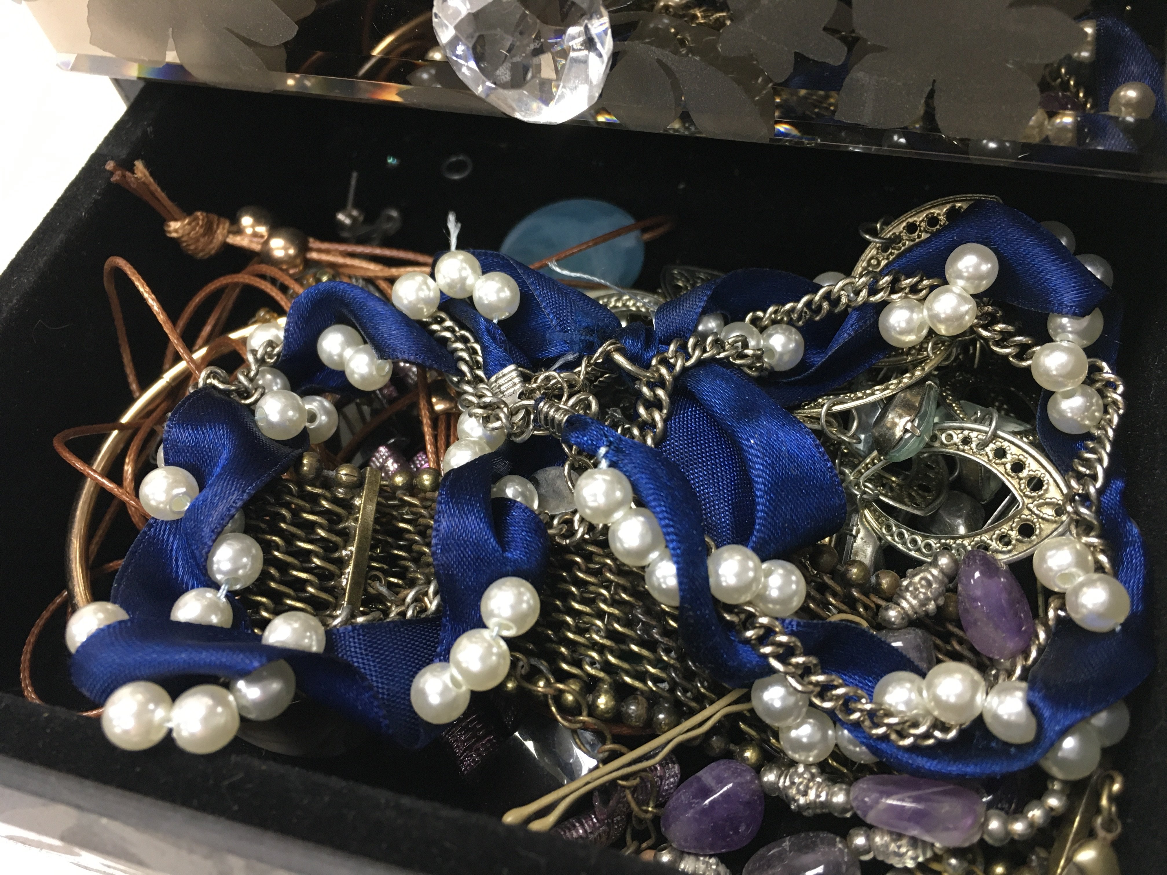A box of costume jewellery including necklaces, earrings etc. postage category B