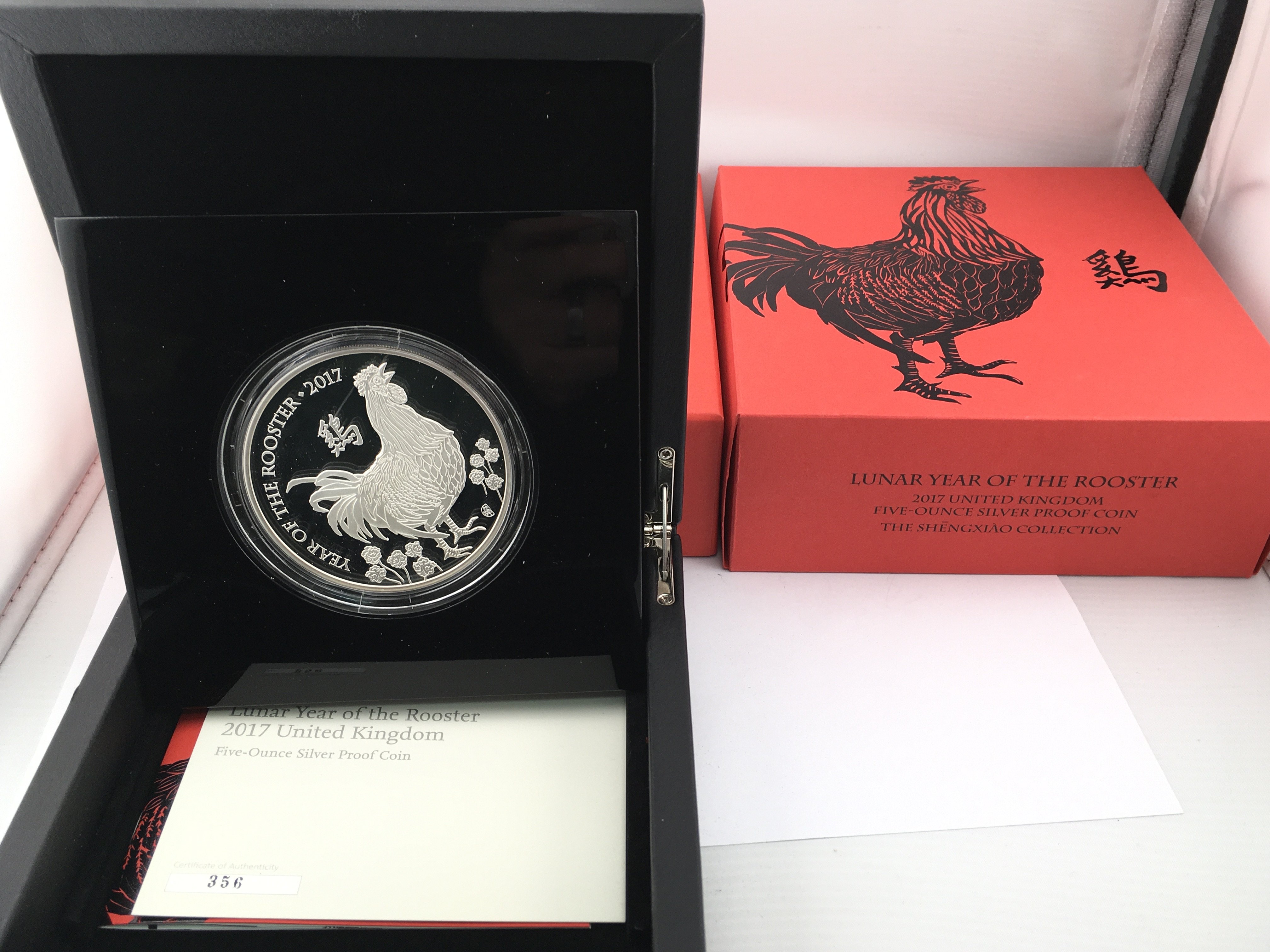 2017 Lunar year of the Rooster 5oz silver proof coin with COA Postage B