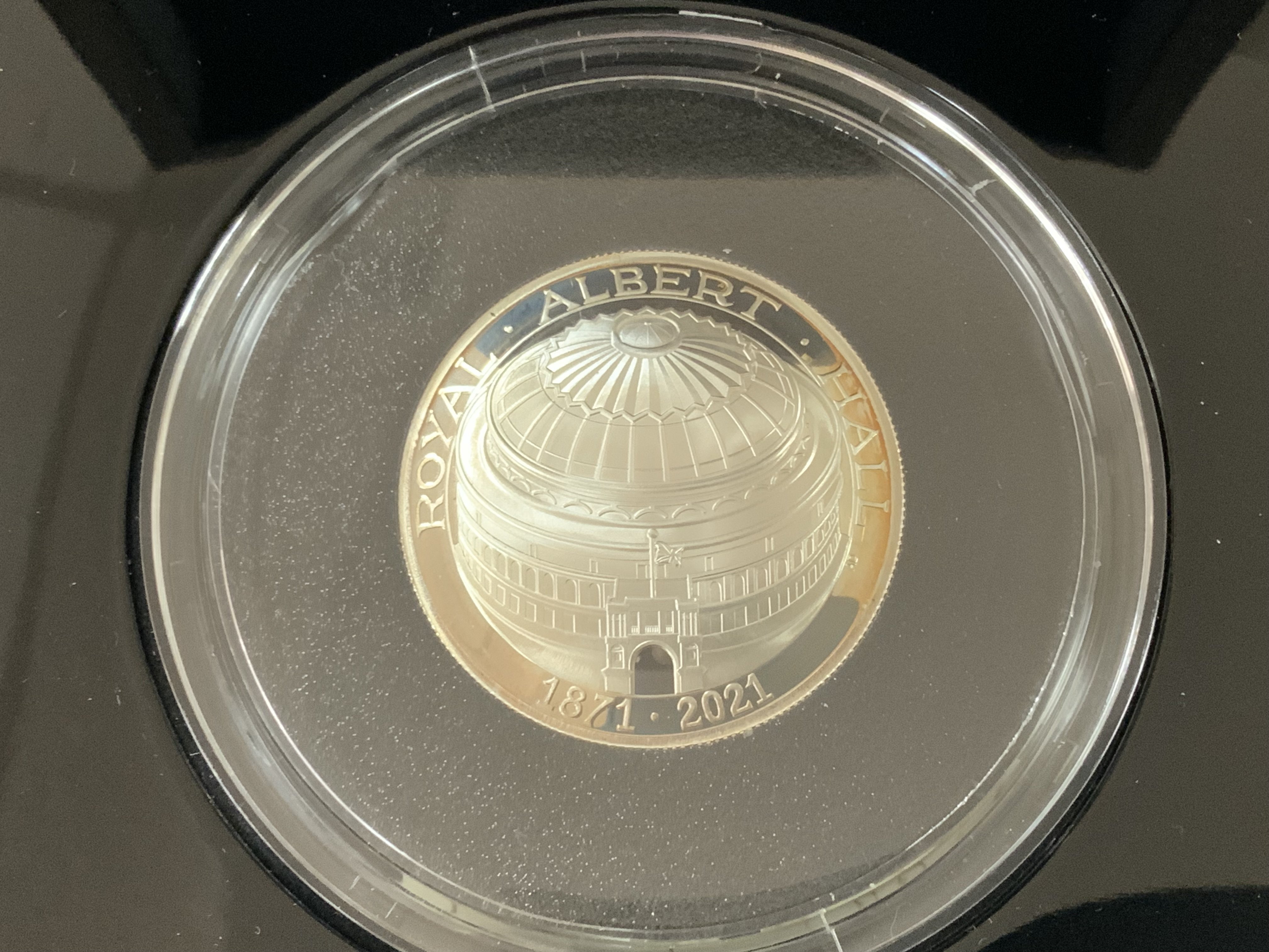Royal Mint 150th Anniversary of the Royal Albert hall 2021 UK 5 silver proof domed coin, with box and paperwork. (A)