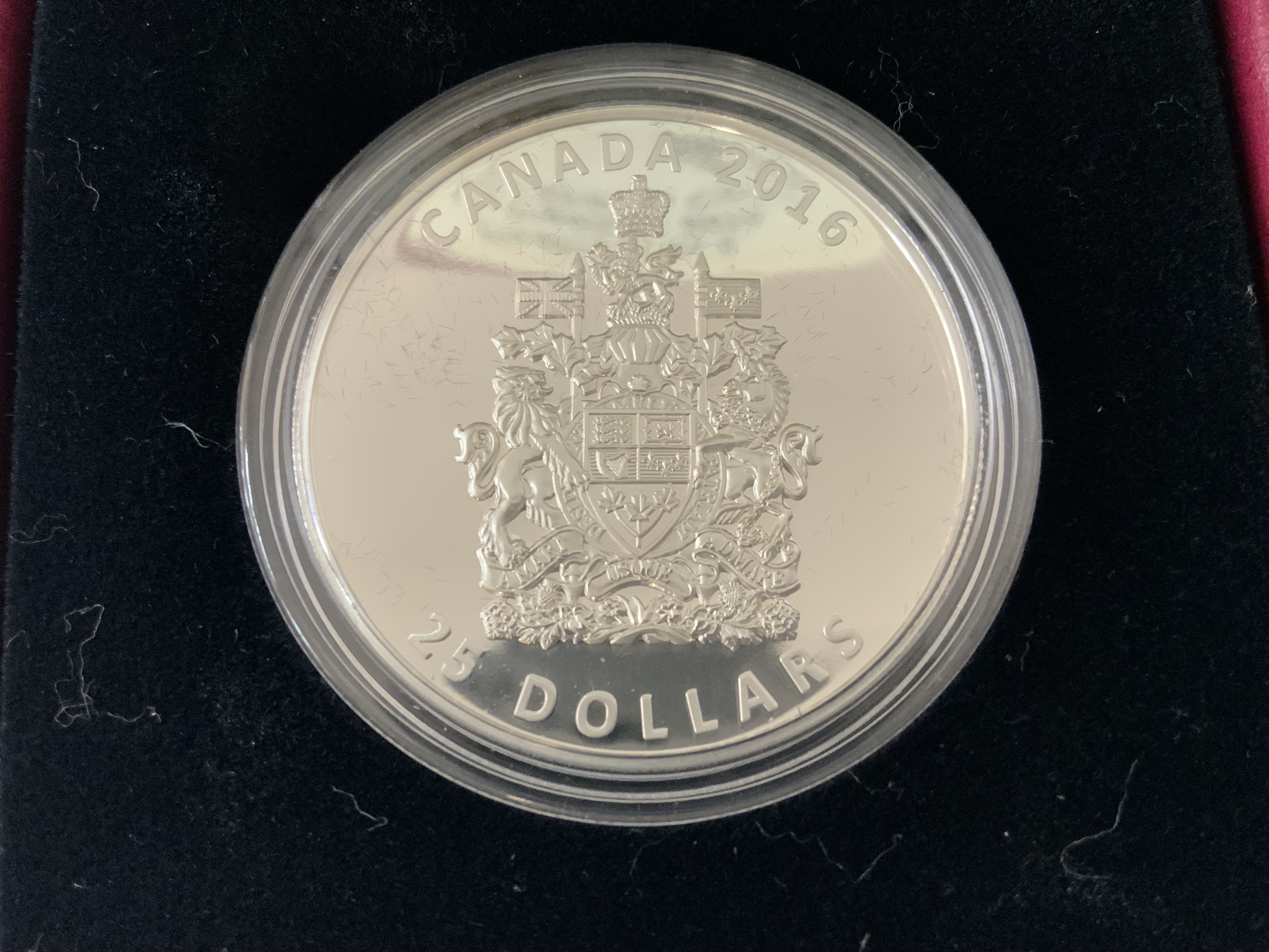 Royal Canadian mint 2016 $25 fine silver piedfort coin, display the Coat of Arms of Canada. (A) NO RESERVE
