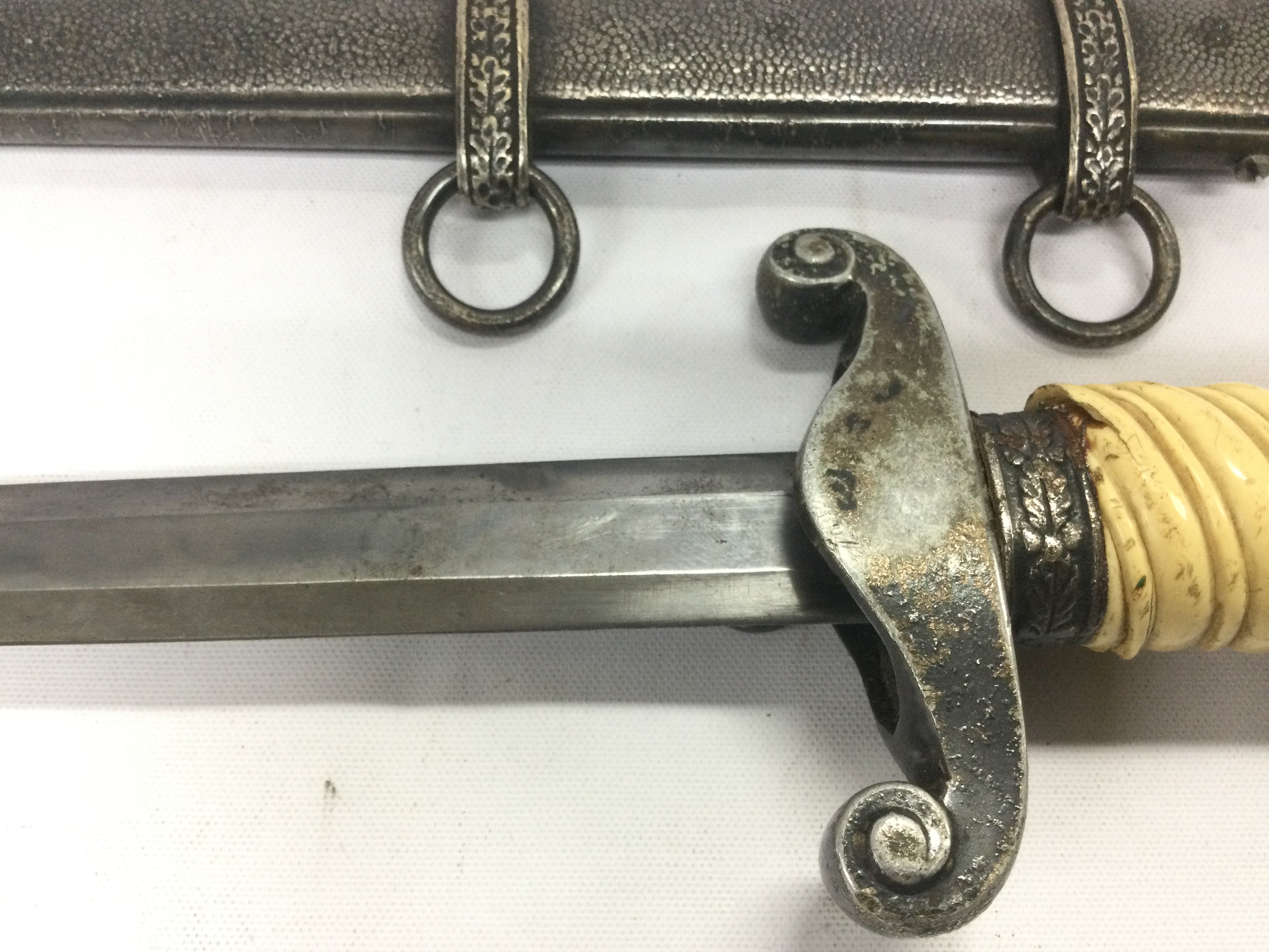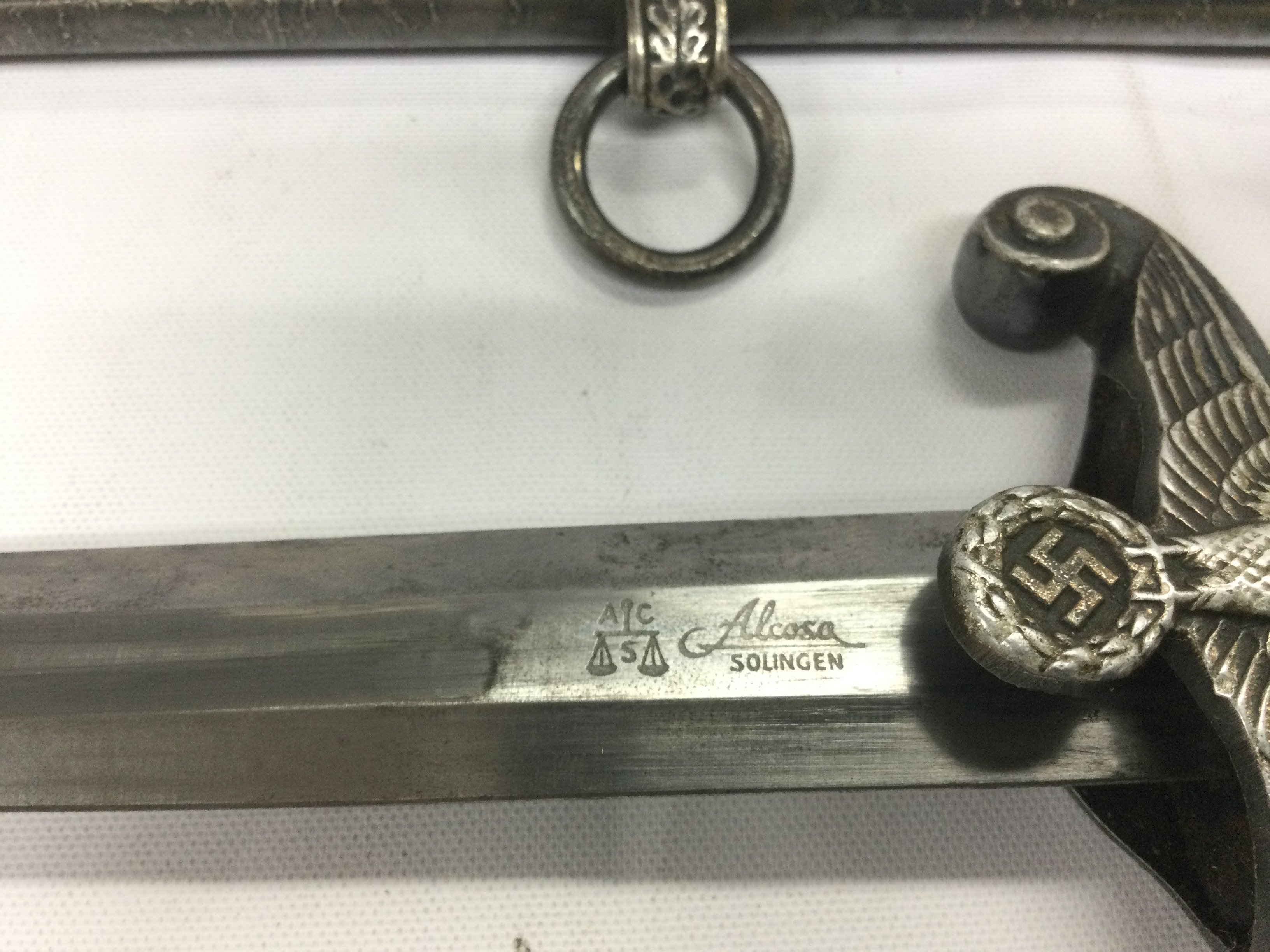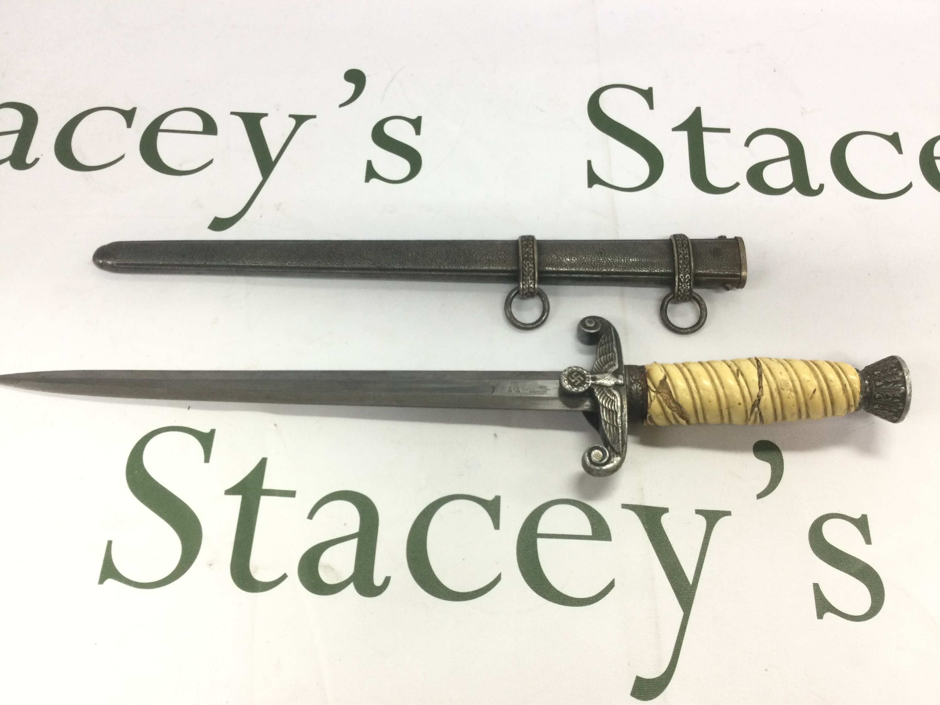 A Third Reich dagger and scabbard. Some damage to handle. Shipping category D.