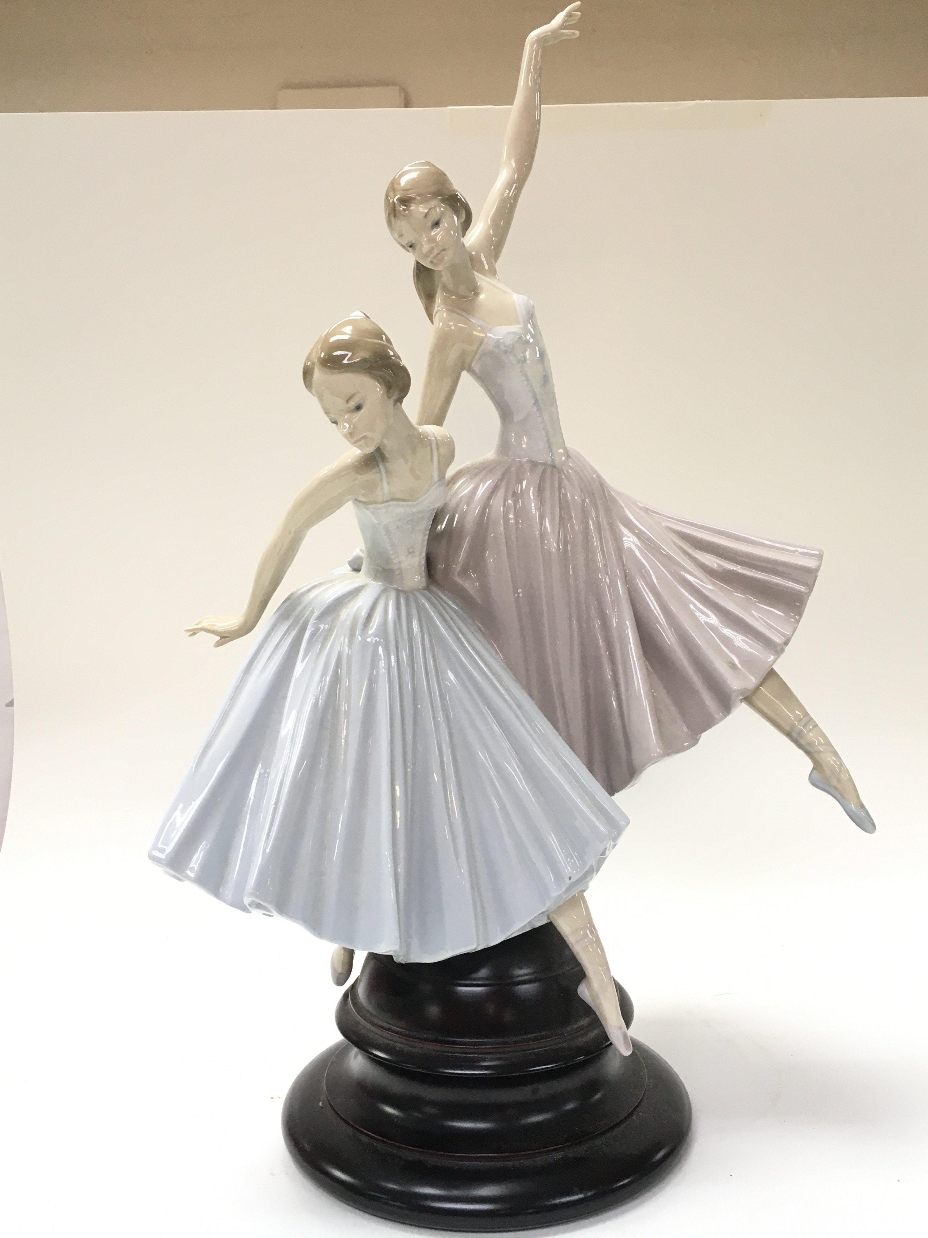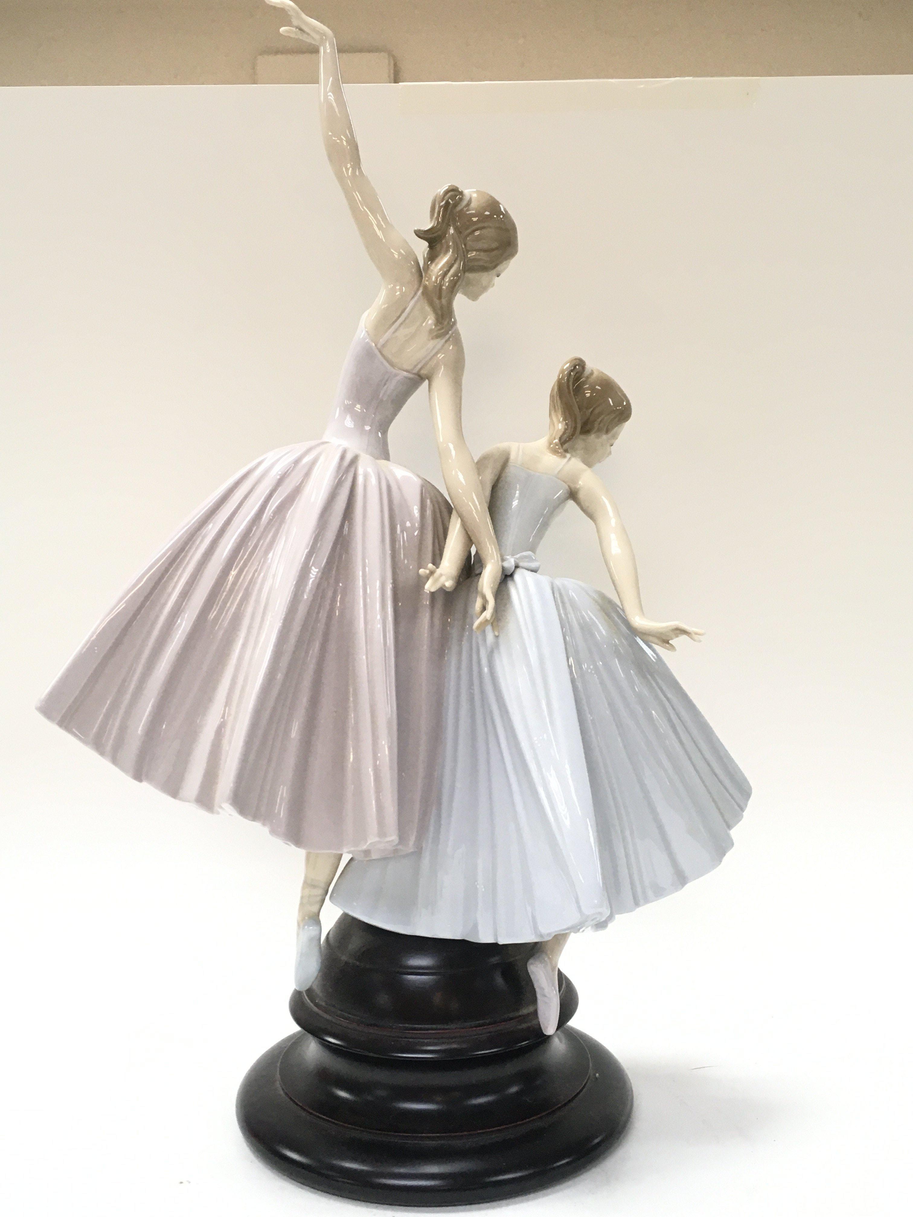 A large Lladro Merry Ballet porcelain figure group. 49cm tall.This lot cannot be posted
