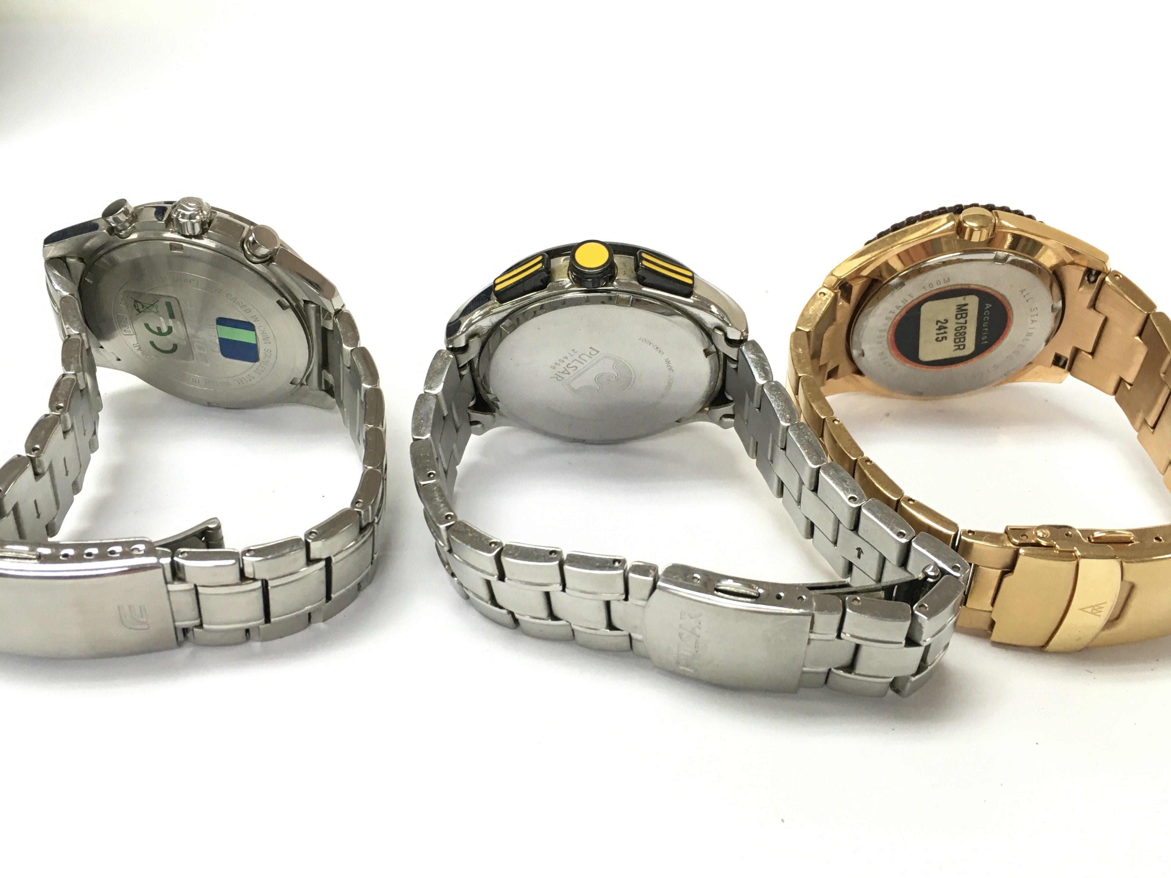 Three gents watches including pulsar chronograph and a accurist and a Casio Edifice. Postage B