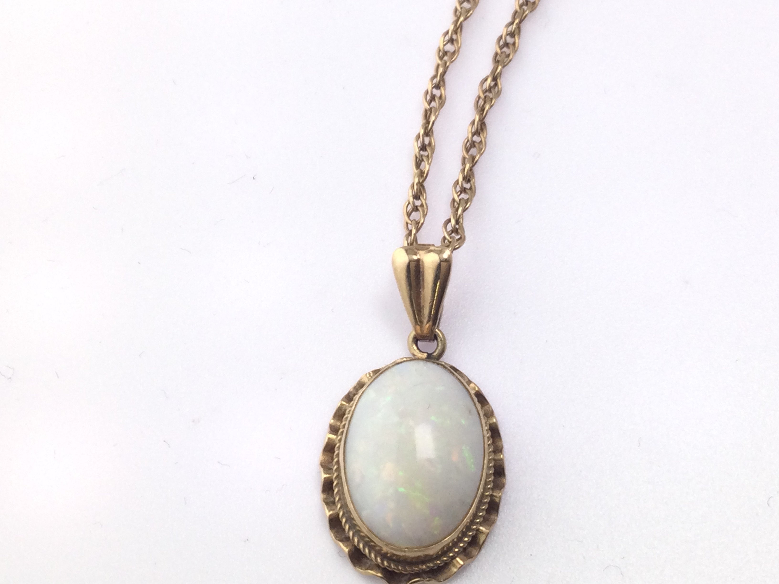 A 9ct gold chain with opal pendant. Total weight 4.42g