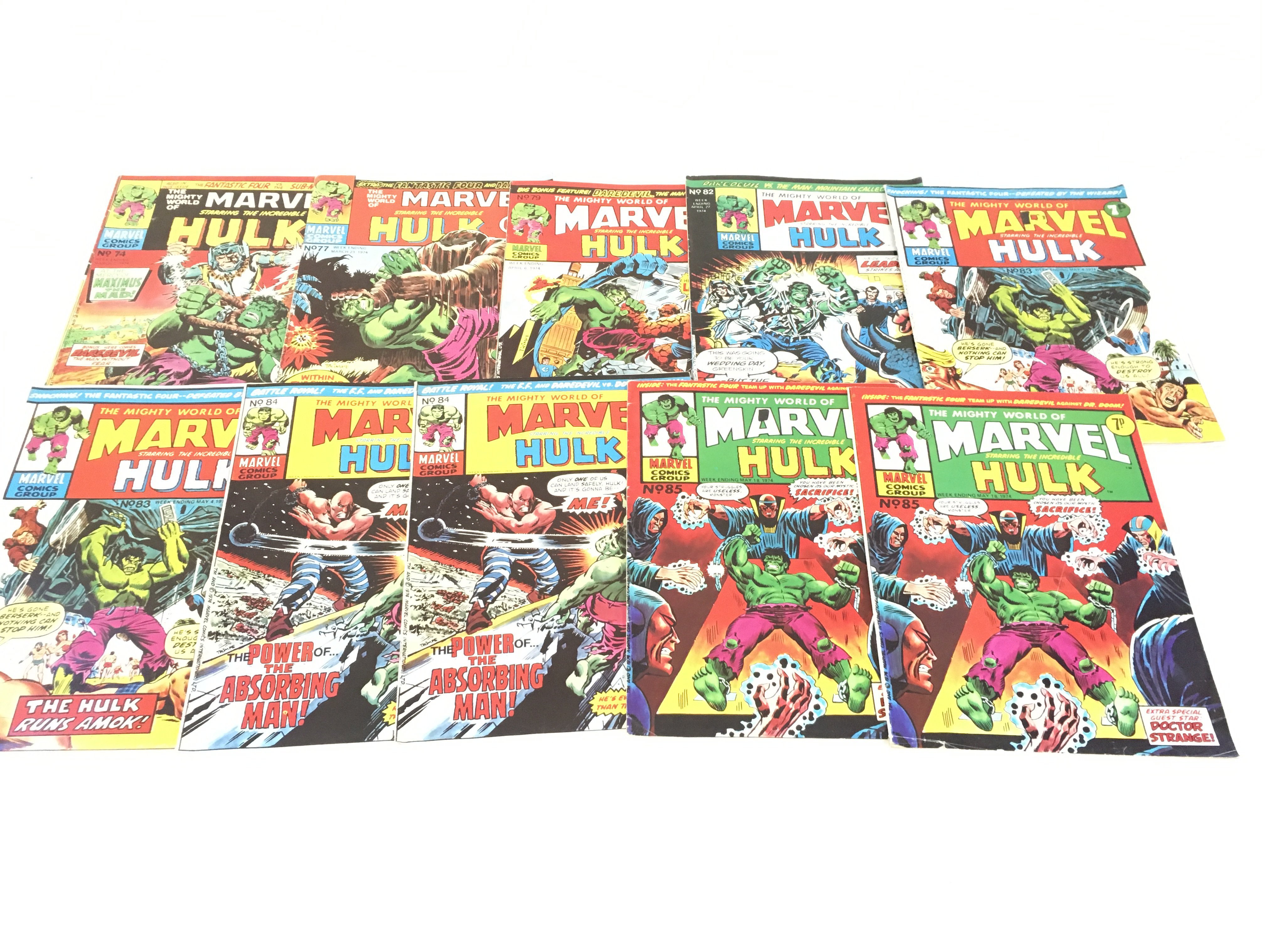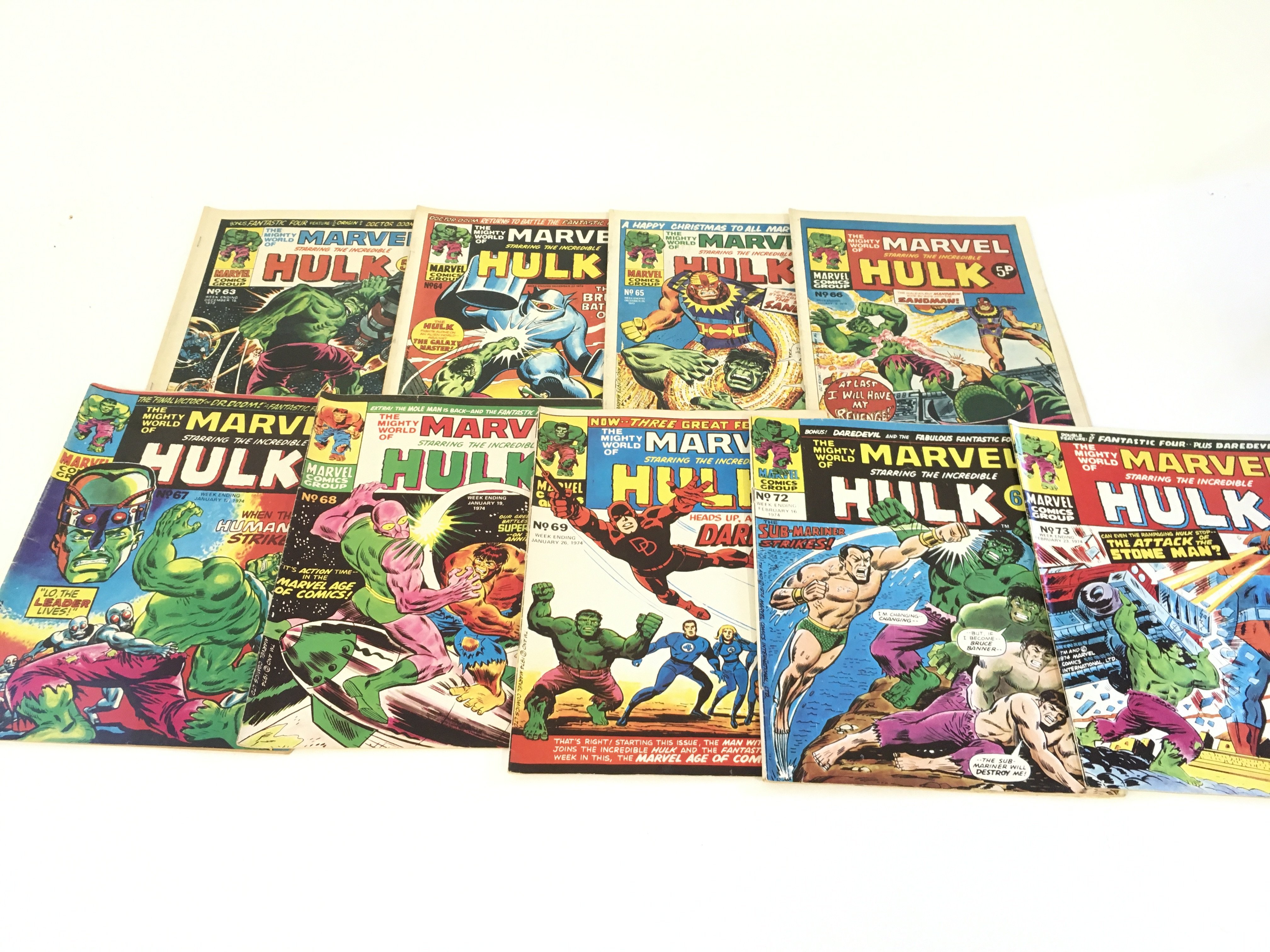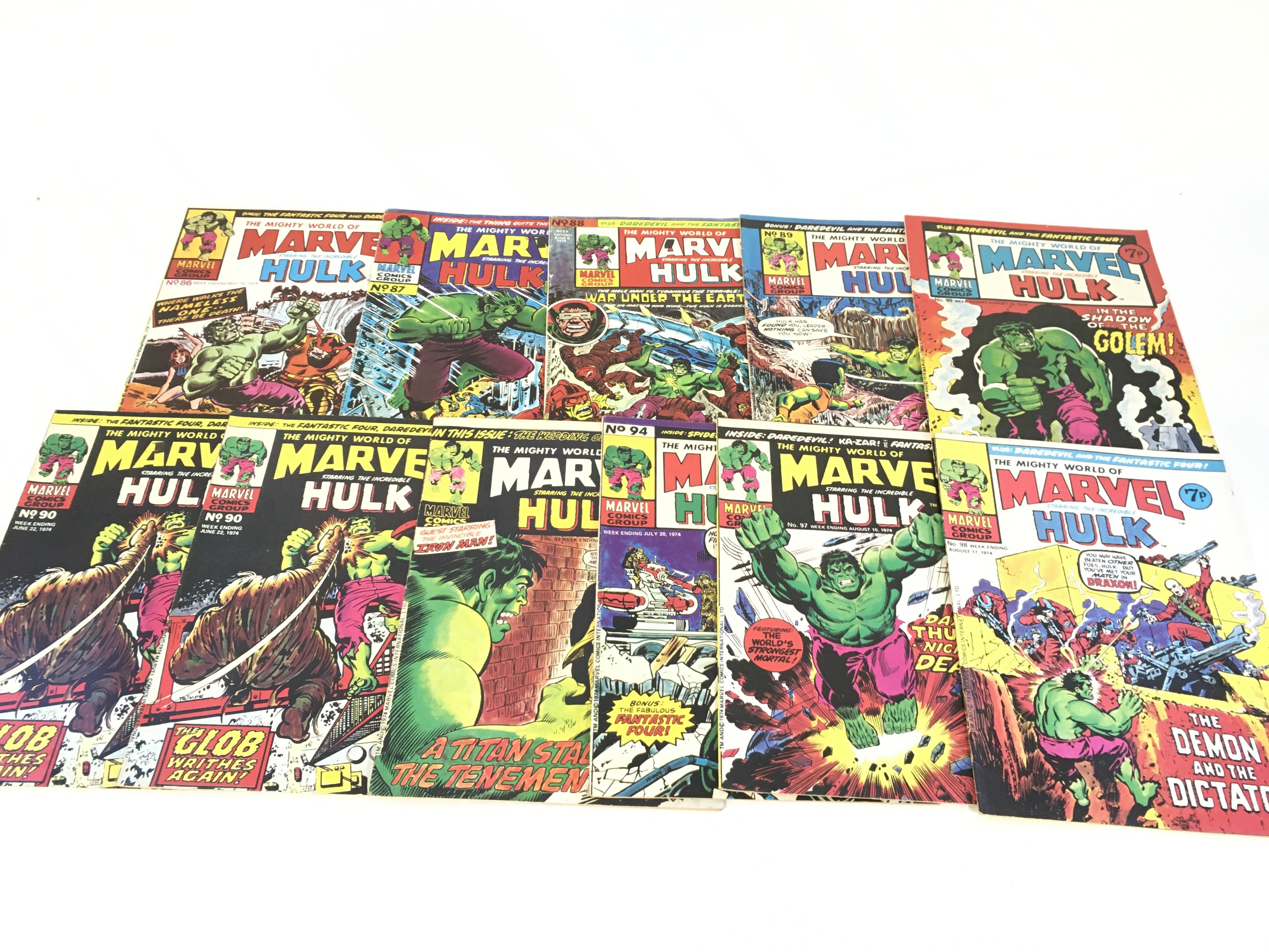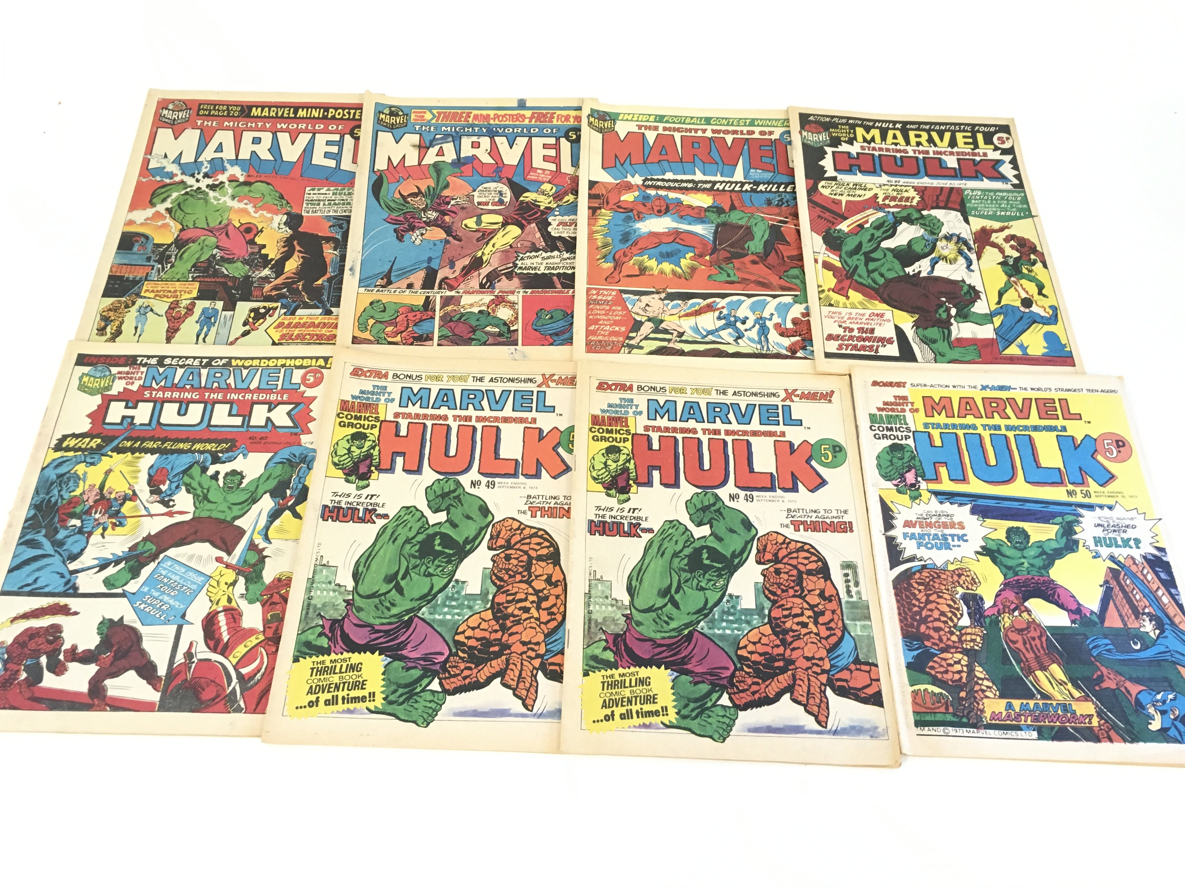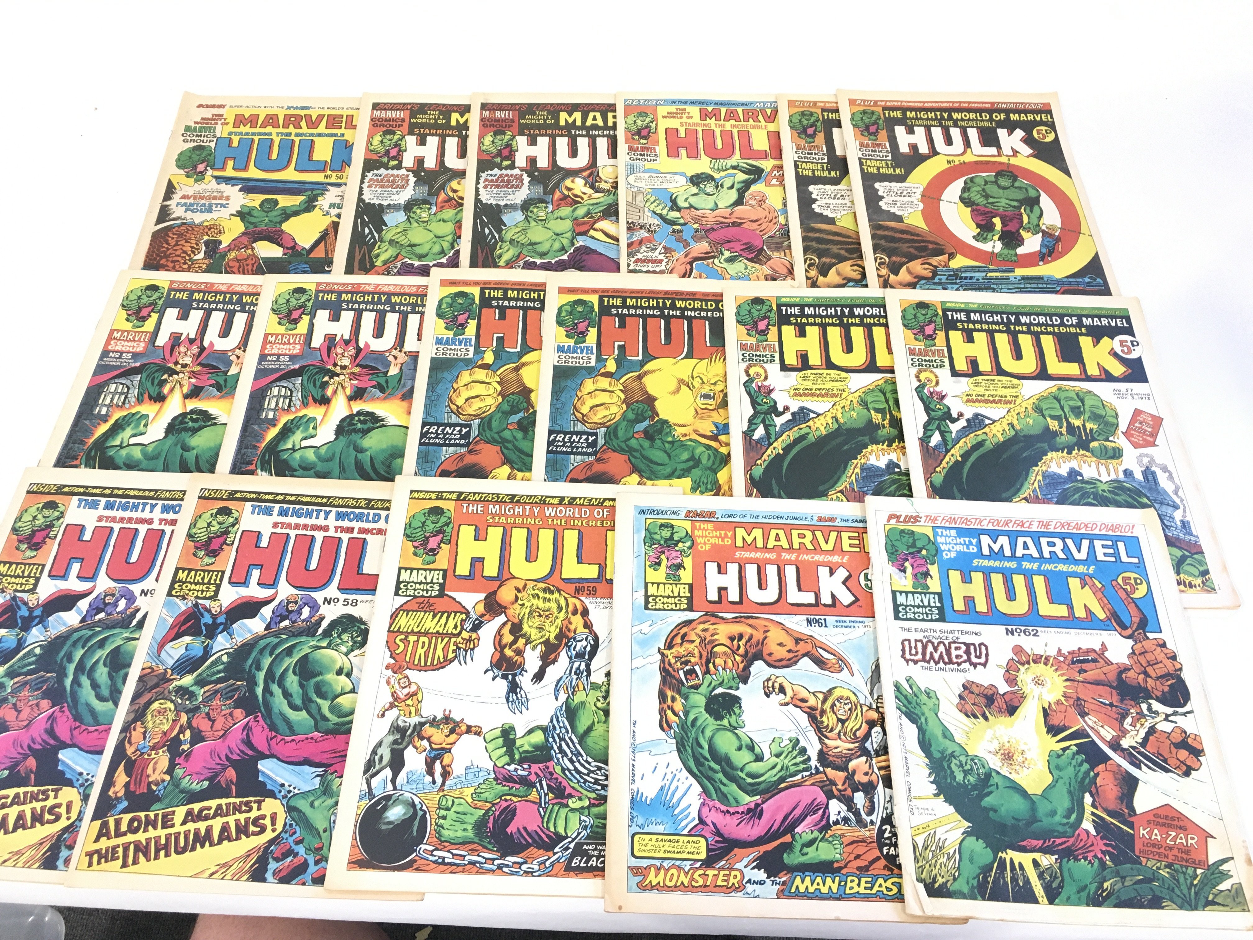 A box containing approximately 140 1970's marvel comics. Consisting of The Incredible Hulk and Planet of the Apes, including a first issue planet of the apes.