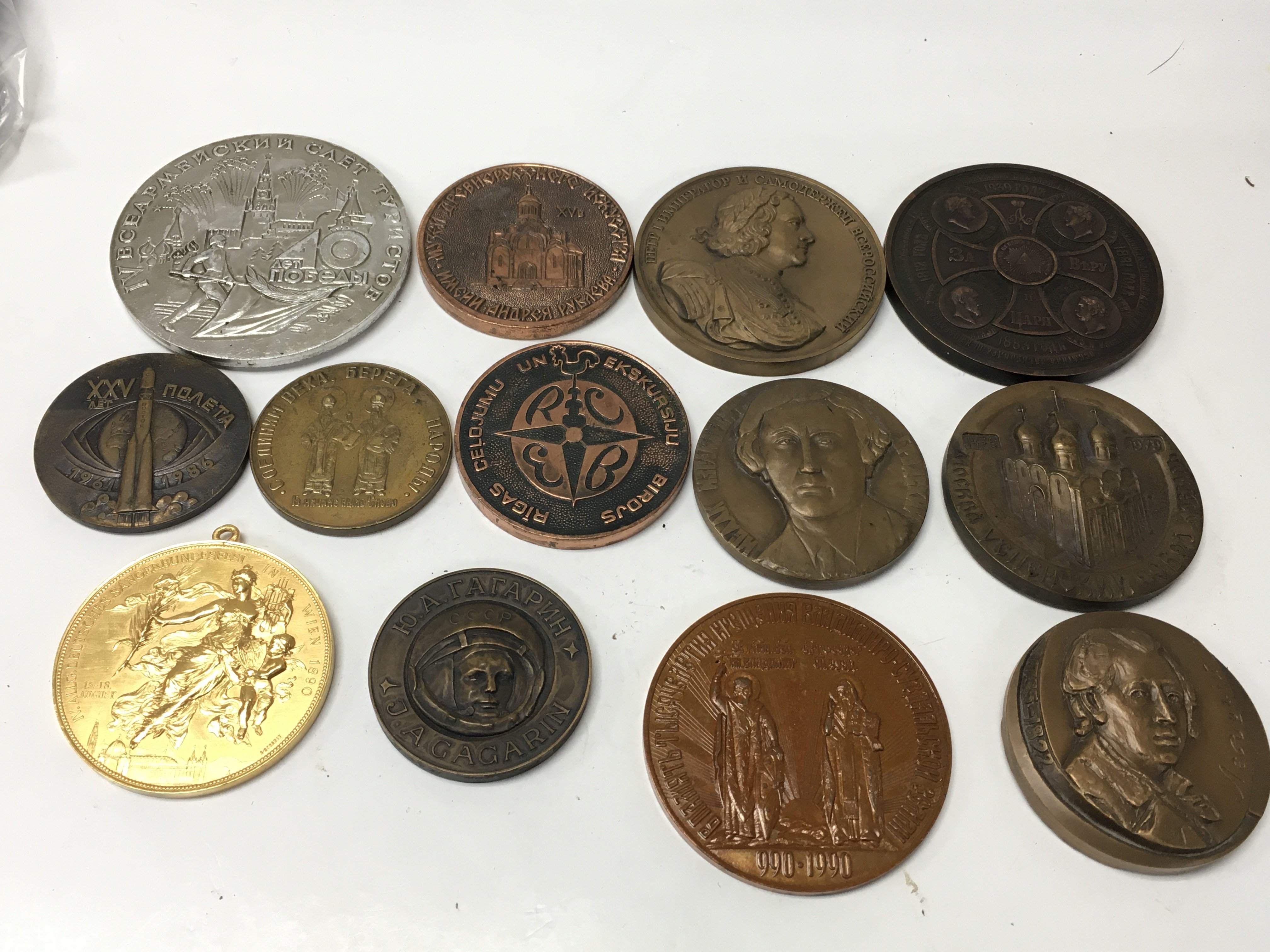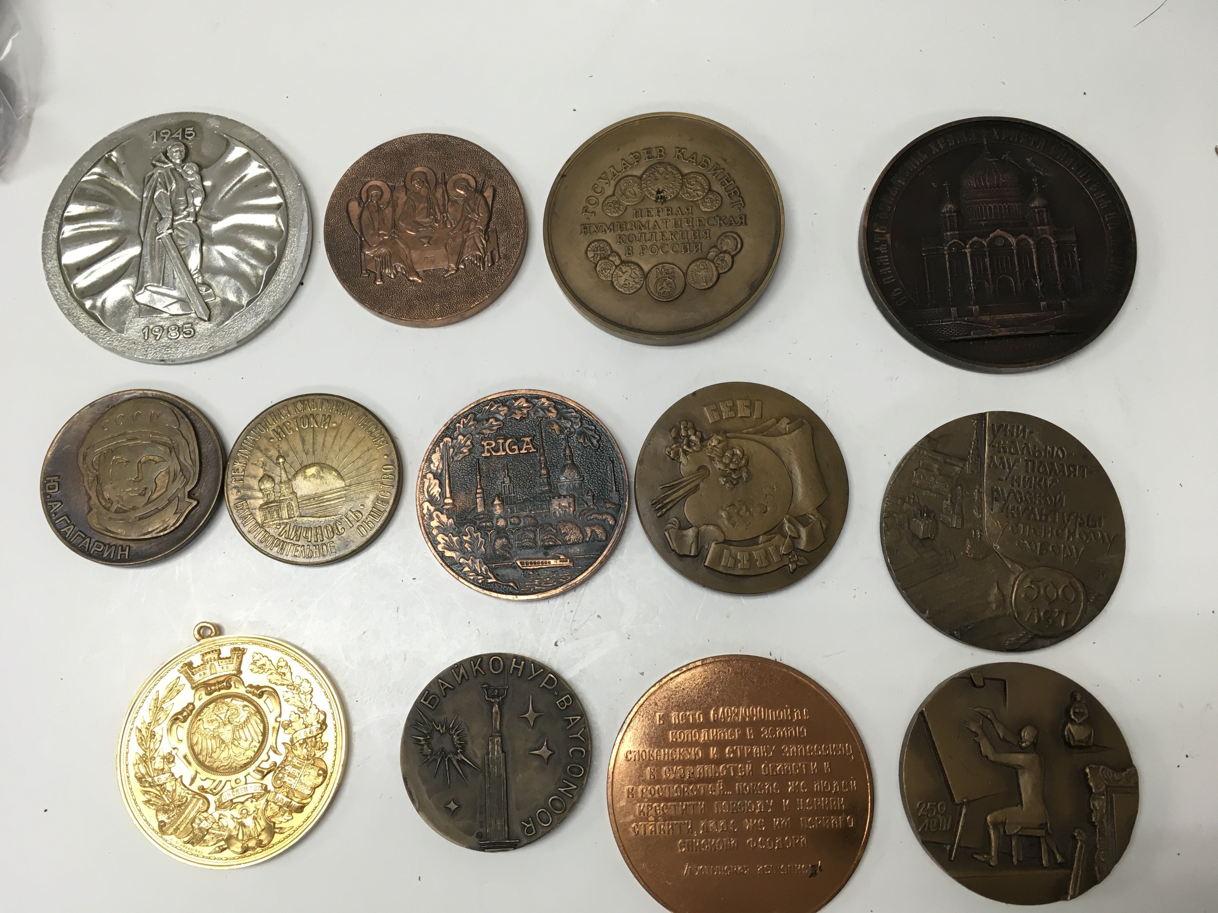 WITHDRAWN - A collection of 20th century Russian USSR medallions/table medals including a Yuri Gagarin Baikonur medal, millennium of the baptism of the Vladimir-Suzdal land 990-1990 medal, Museum of Ancient Russian Art medal and a German- Austrian medal singers association festival Vienna 1890. Postage category B