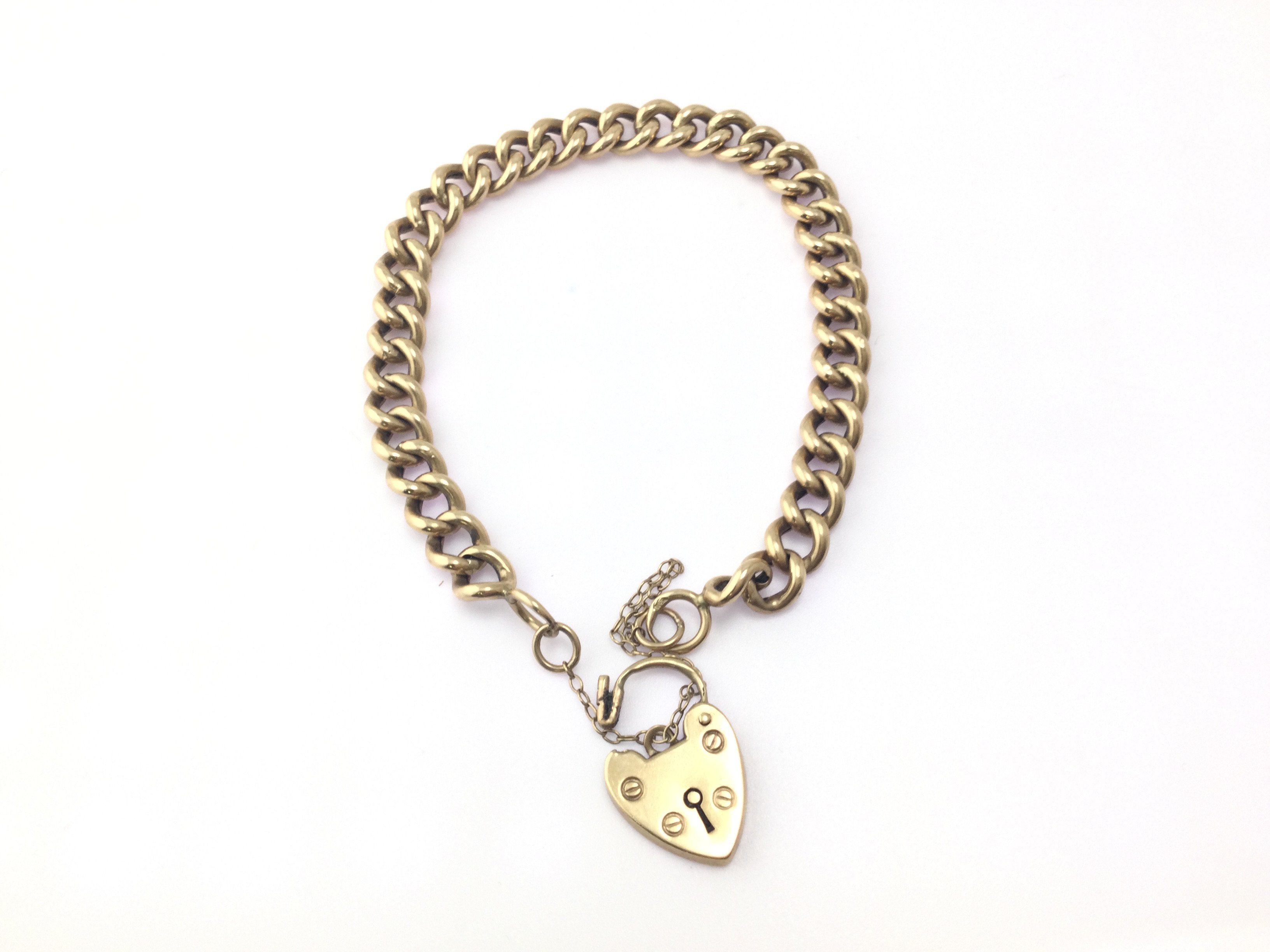 A 9ct gold bracelet with heart shaped lock. 10.29g
