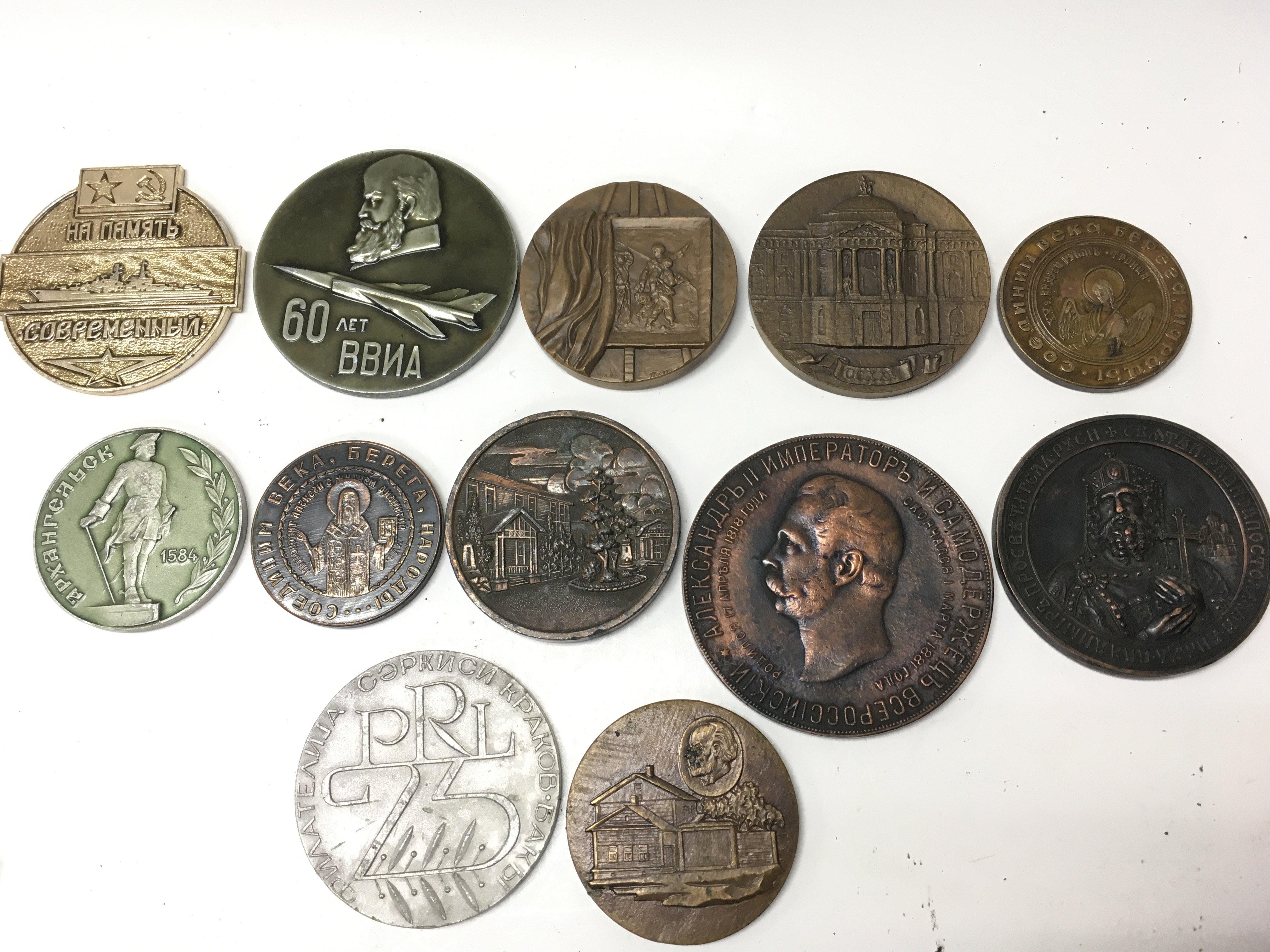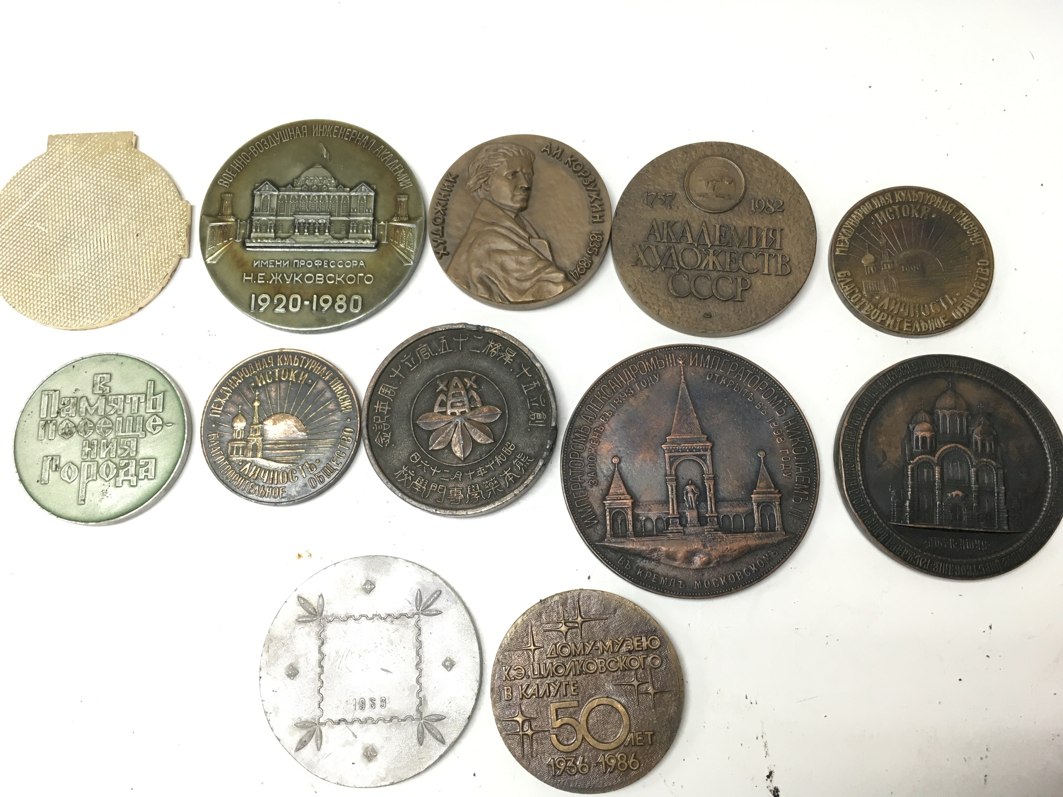 A collection of 20th century Russian medallions/ table medals including a International cultural mission Origins Personality of the USSR Table Medal, Museum of K.E. Tsiolkovsky in Kaluga medal, Alexander II Memorial Monument 1898 medal etc. postage category B