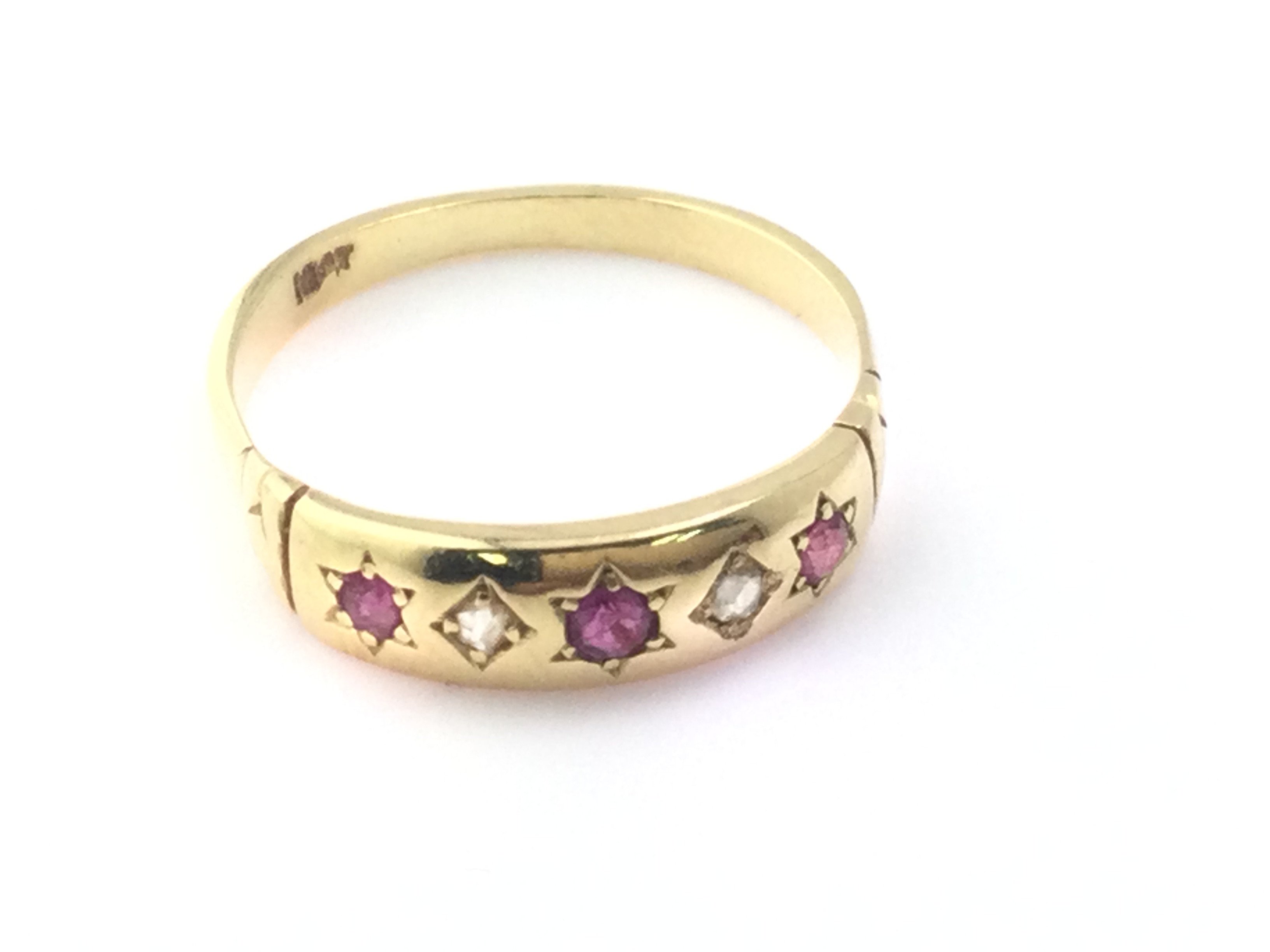 An 18ct Edwardian ruby and diamond ring. Size O and 2.70g