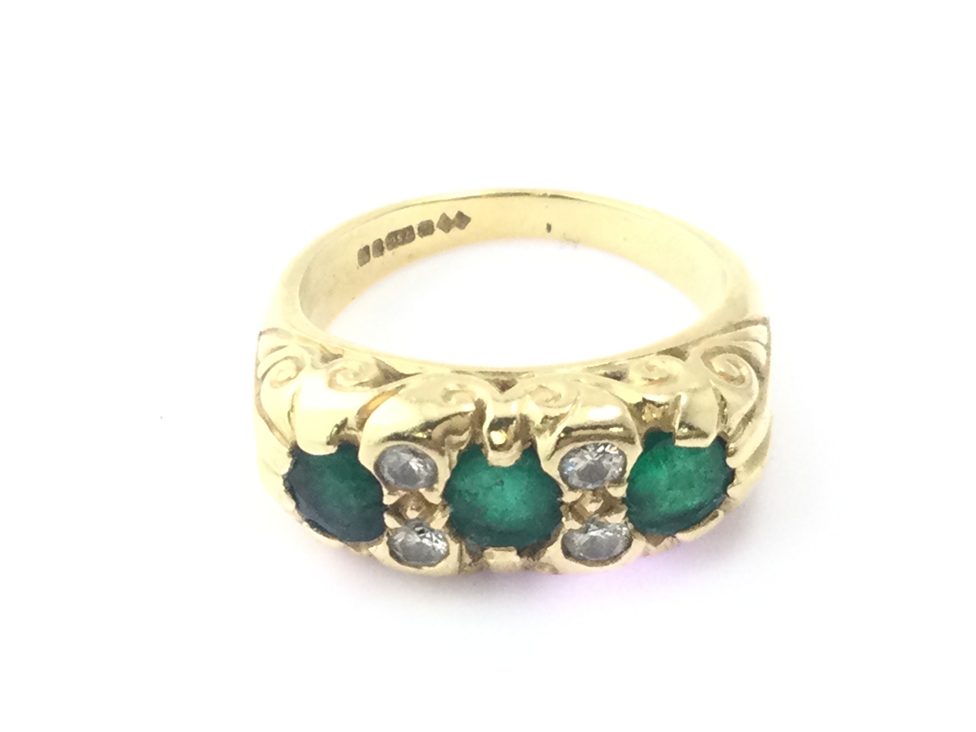 An 18ct emerald and diamond ring. Size M and 9.51g Postage A
