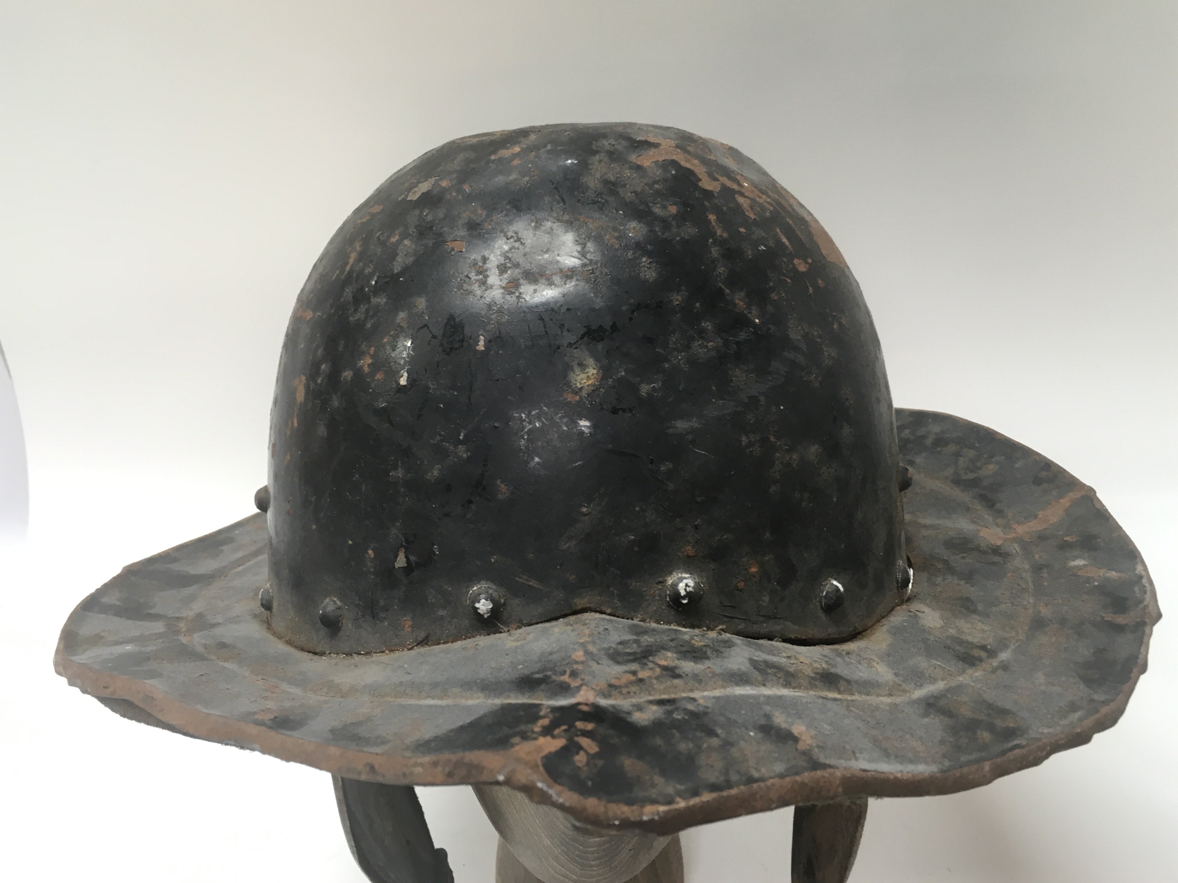 A Cromwellian Civil War style tin Roundhead soldiers/Pikemans helmet (head for display purposes and is not featured with this lot). Postage category C