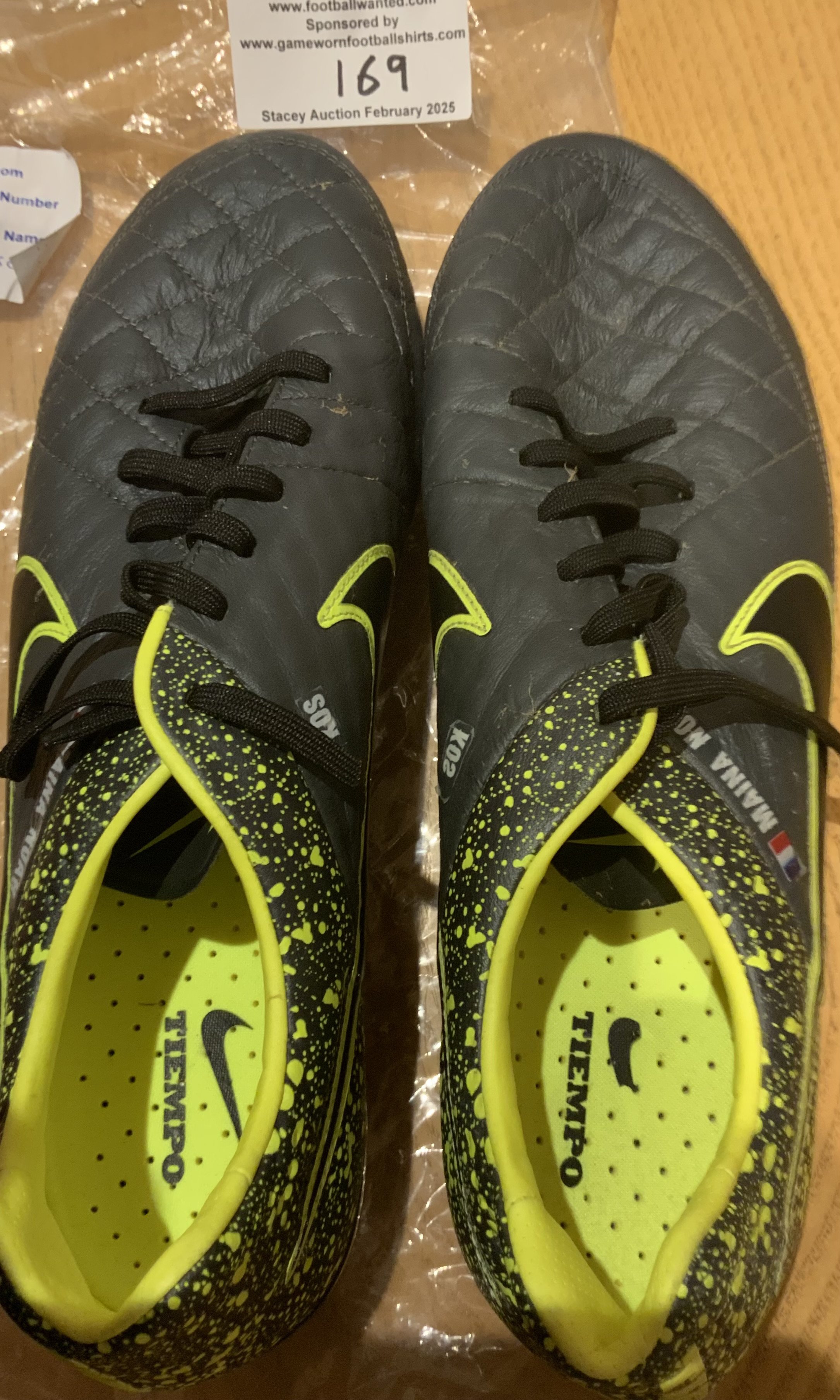 Arsenal + France Match Worn Koscielny Football Boots: Pair of Nike Tiempo boots both having initials KOS embroidered to side. Outer side has France flag and names Maina and Noah.