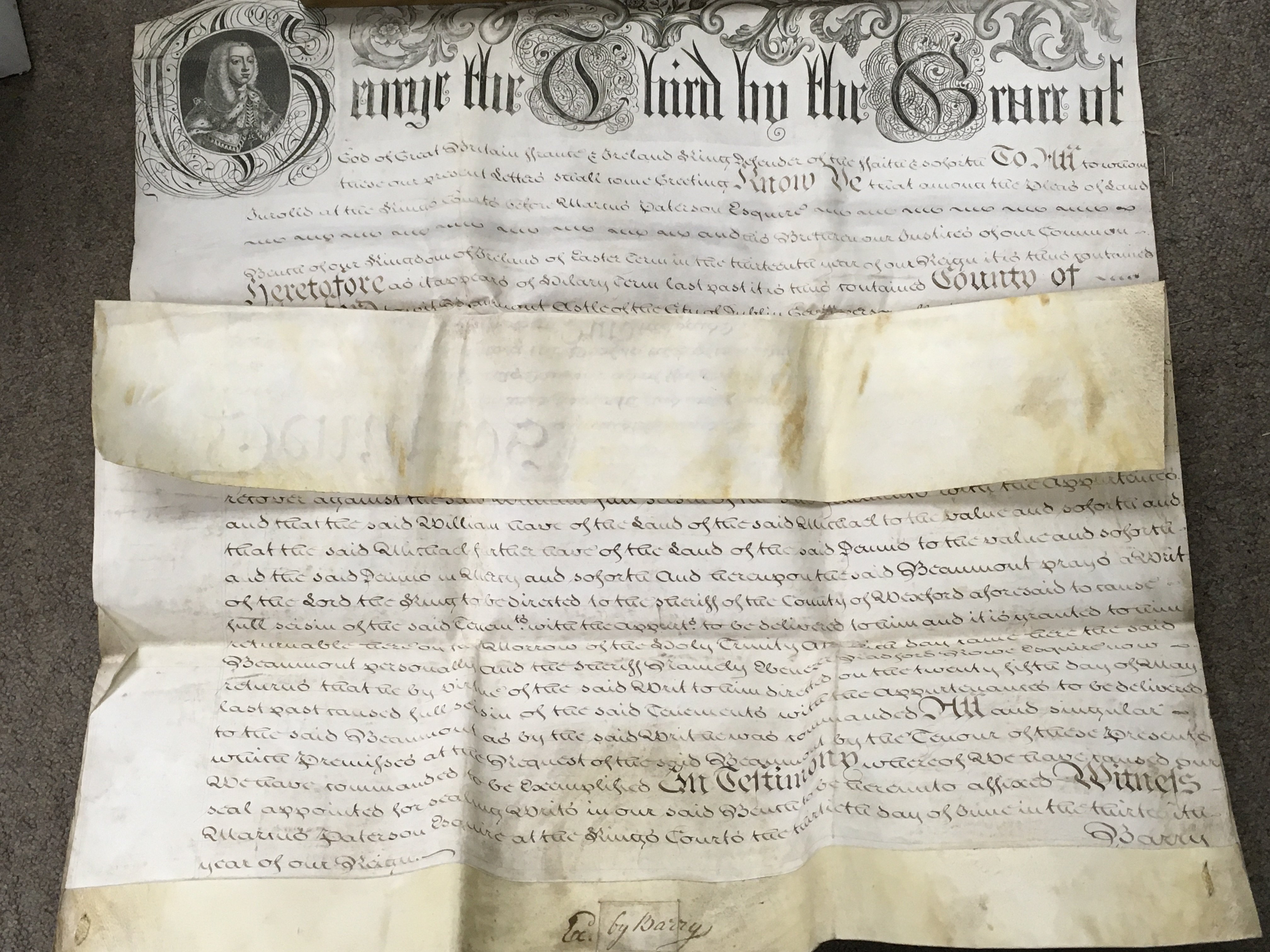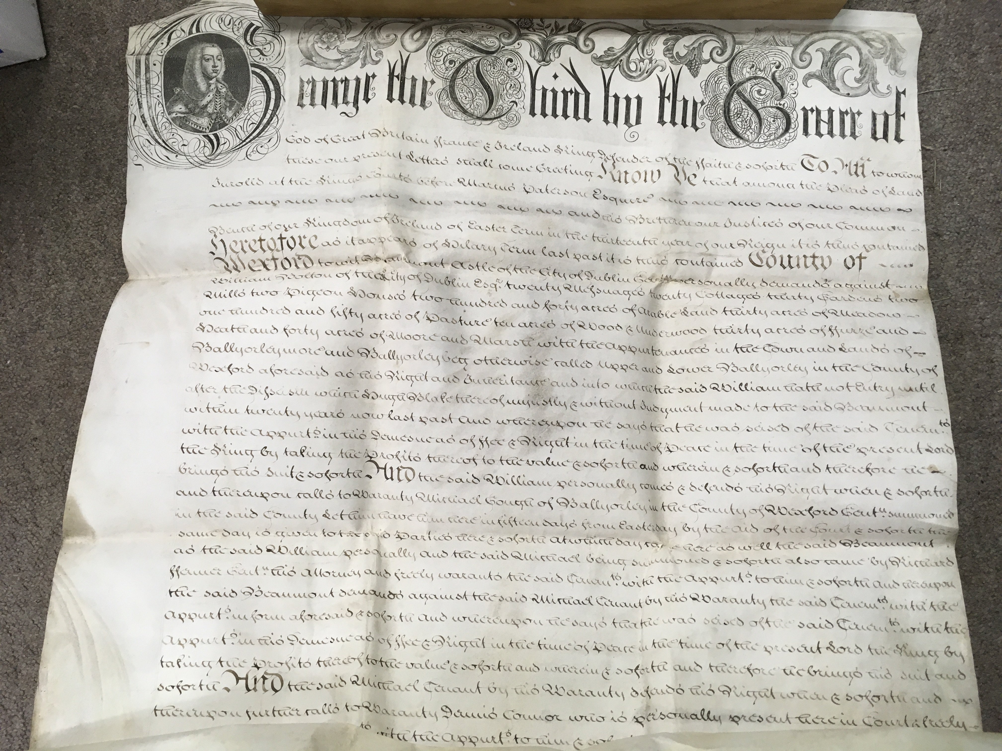 A 1773 King George III Vellum document with the great seal of the realm, Wexford related