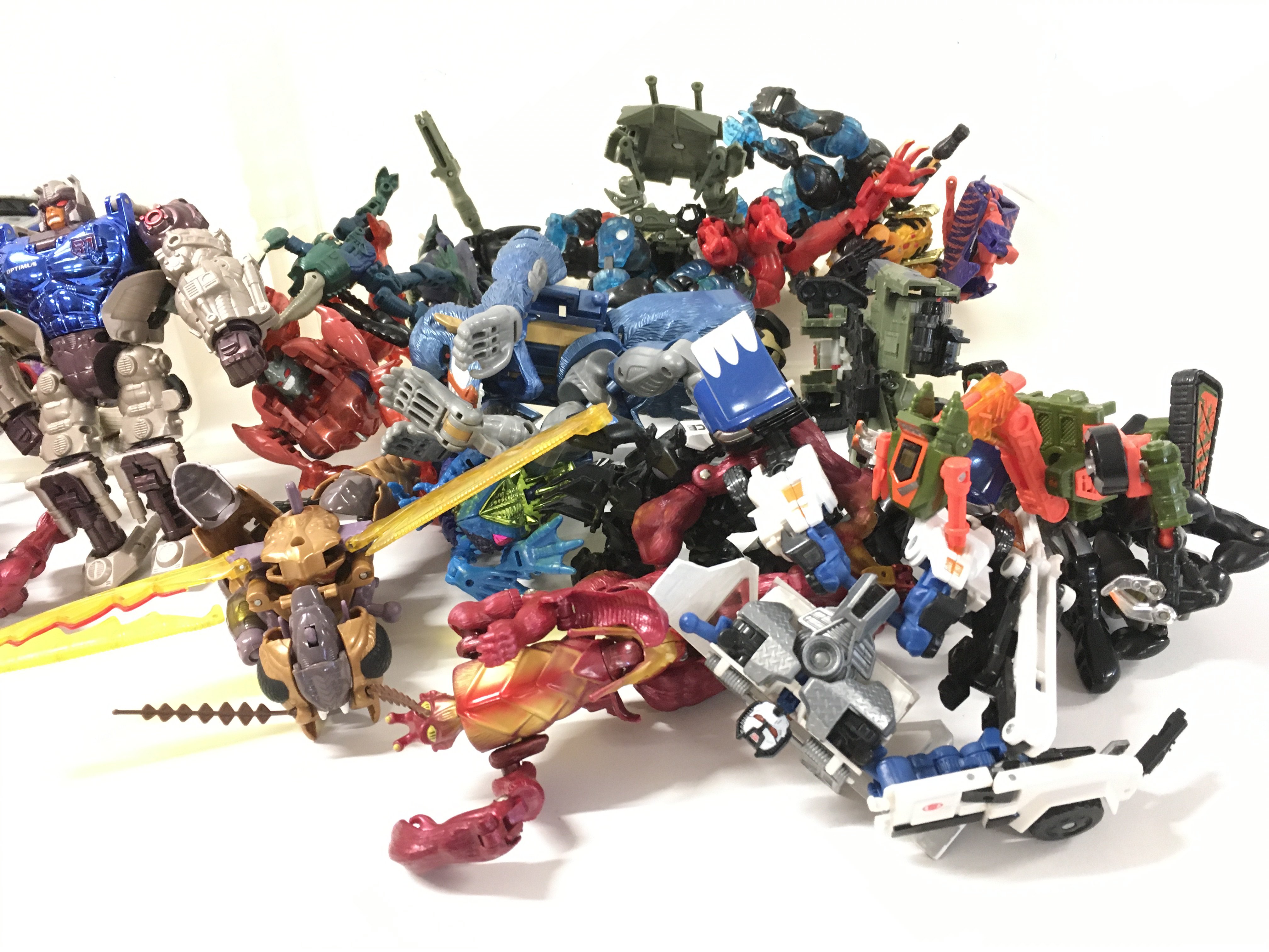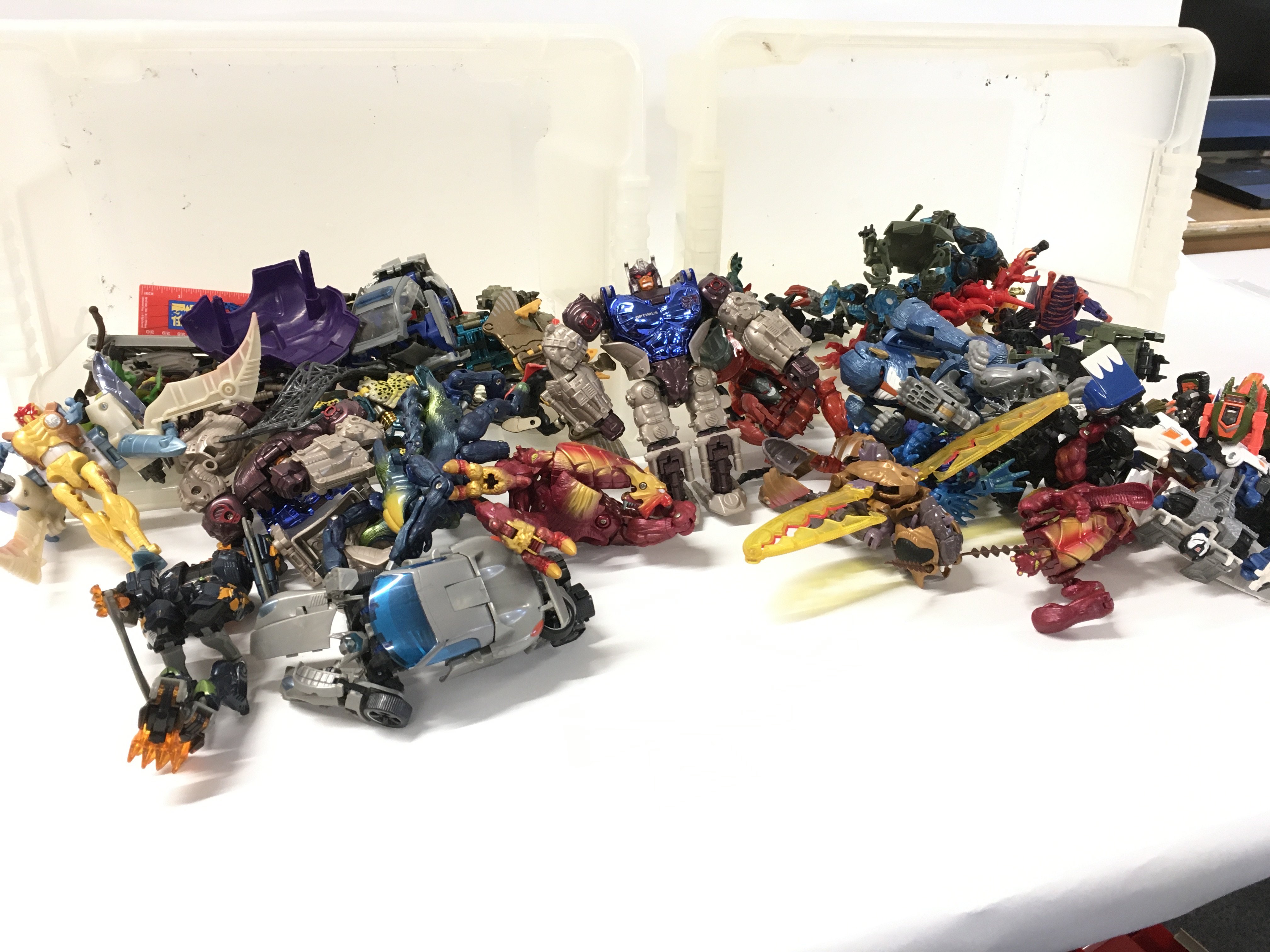 Two boxes containing a collection of Transformers Beast Wars figures. (2)