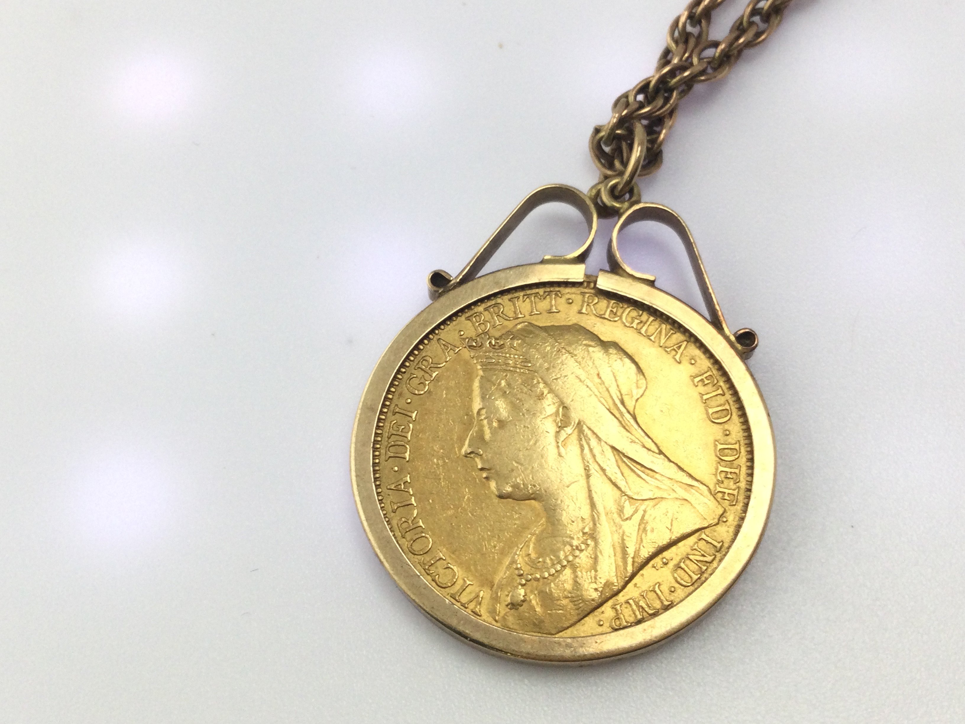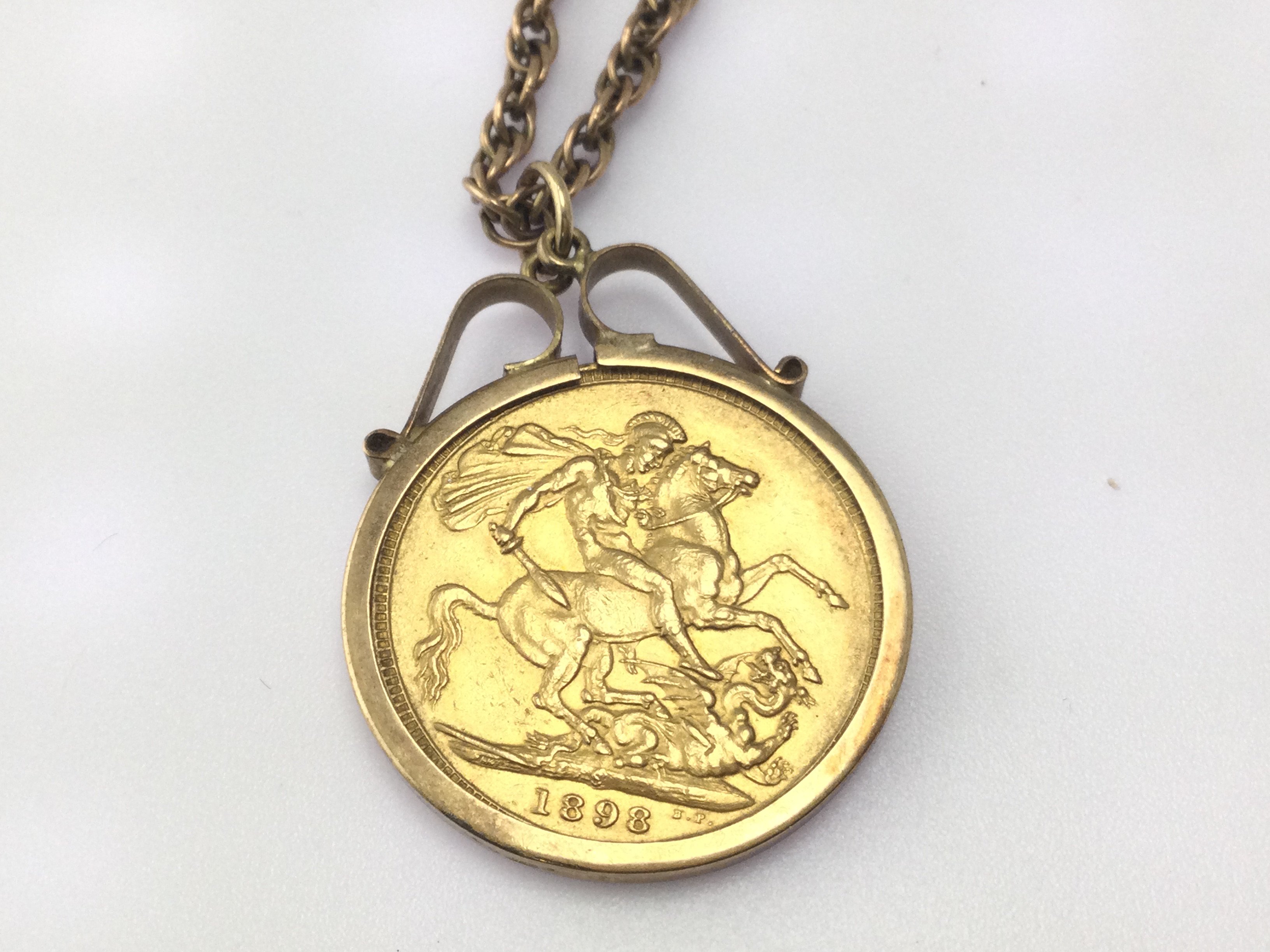 A 1898 full sovereign in pendant on chain. 17.46g