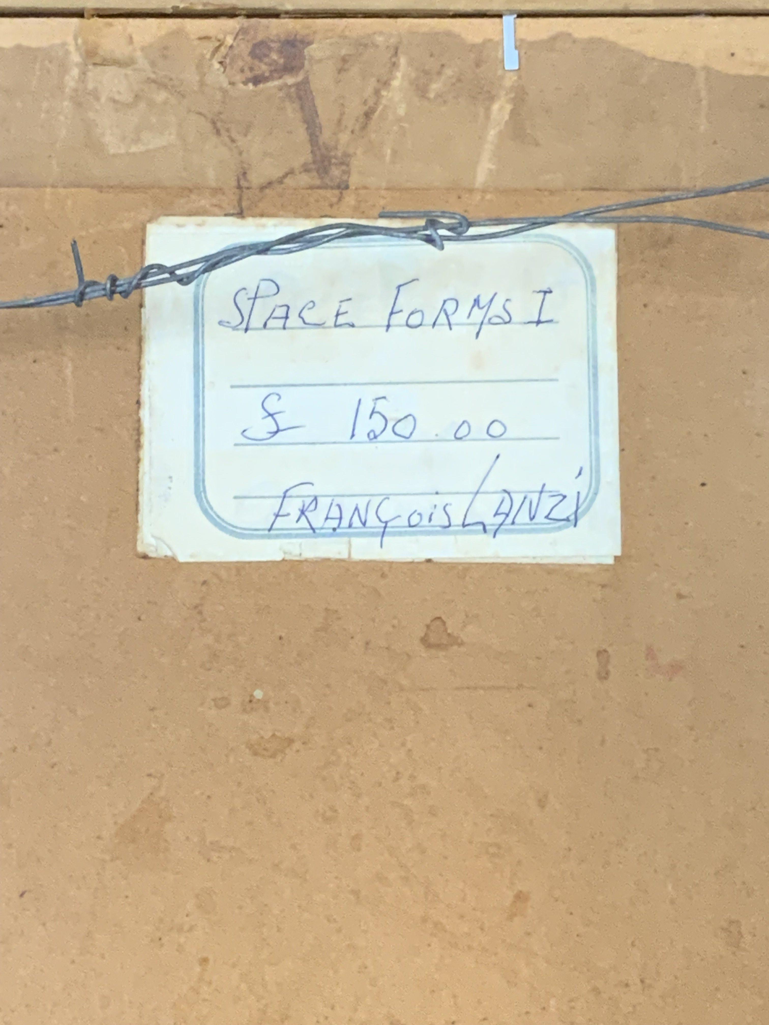 Francois Lanzi, mixed media Abstract composition titled Space Forms 1, signed lower right, labelled to reverse. 55cm x 47cm. (D)