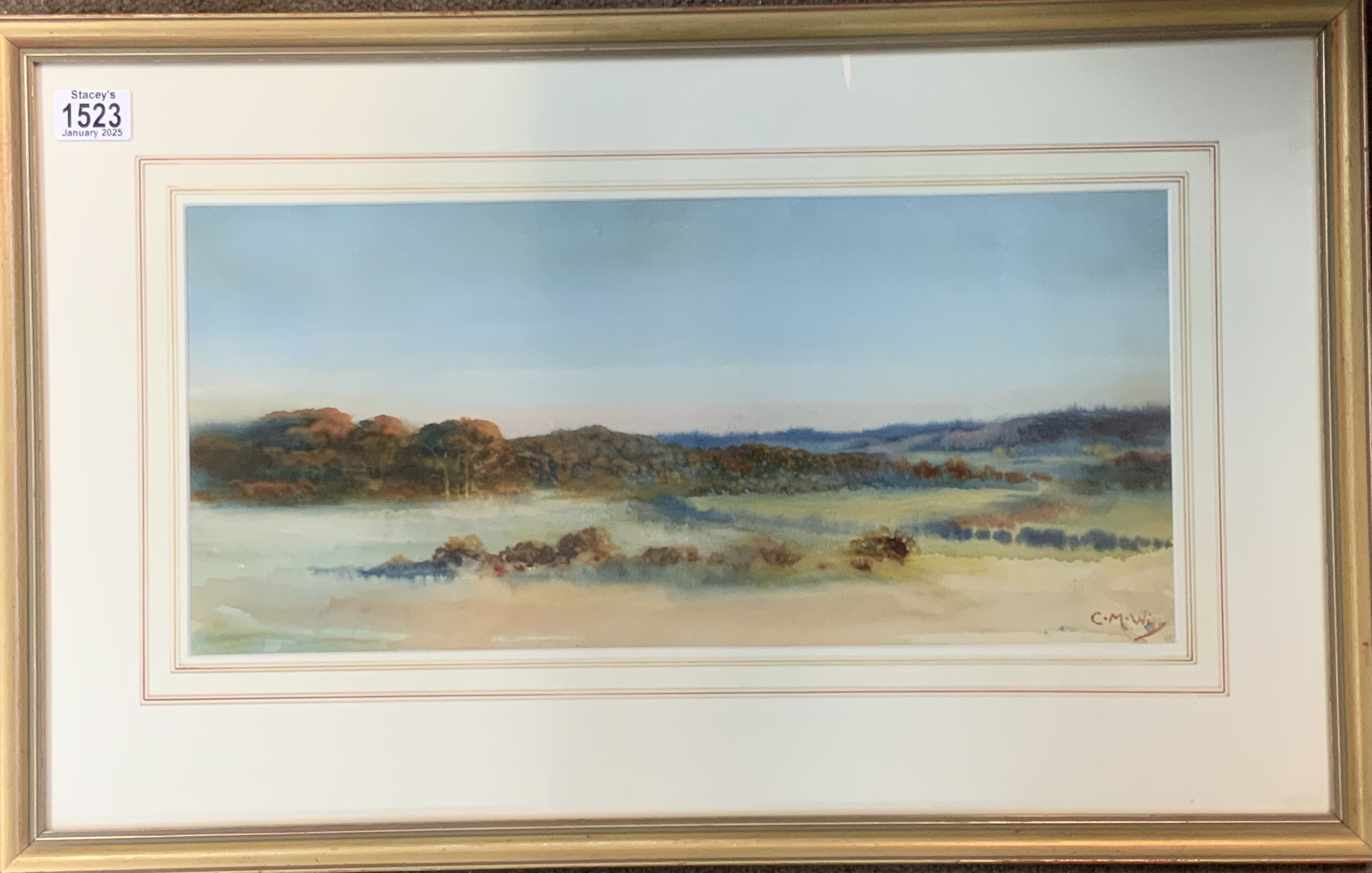 Charles Mayes Wigg, 1889-1969 watercolour colour painting titled Wide Sky. 68cm x 42cm. (D)