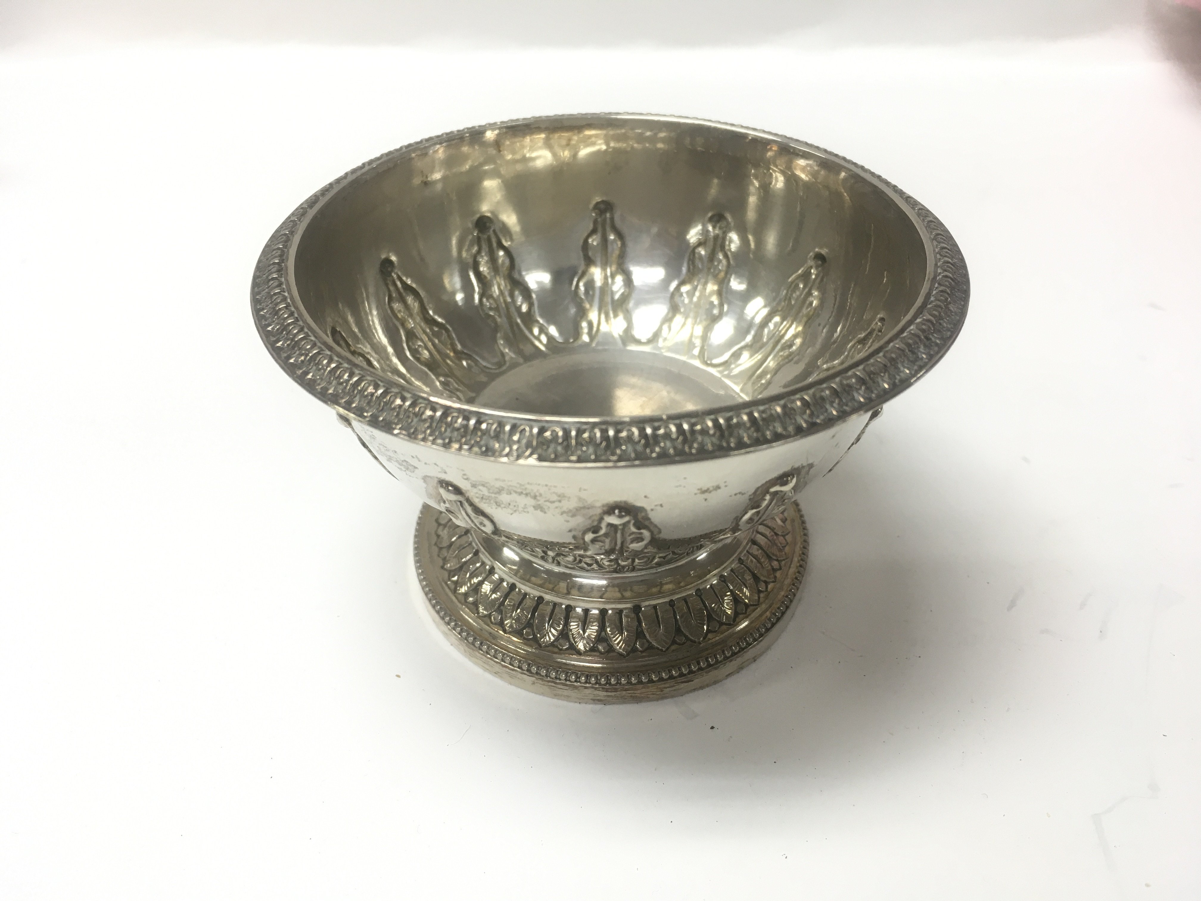 A George III silver embossed silver bowl on a pedestal base with a patterned top edge border. Approx weight 110grams.