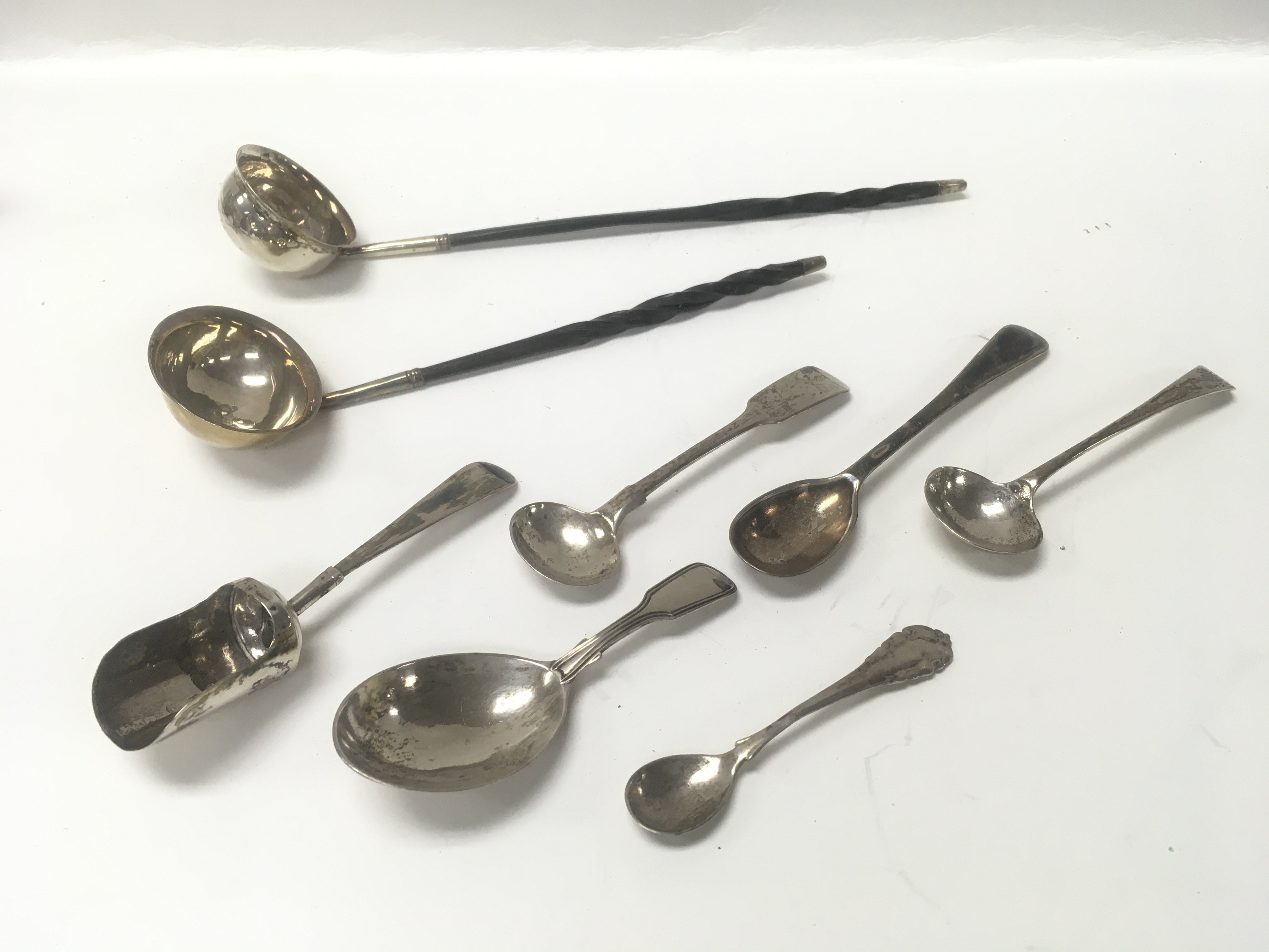 A collection of silver ladles and spoons. Approx weight with ladles 85 grams.