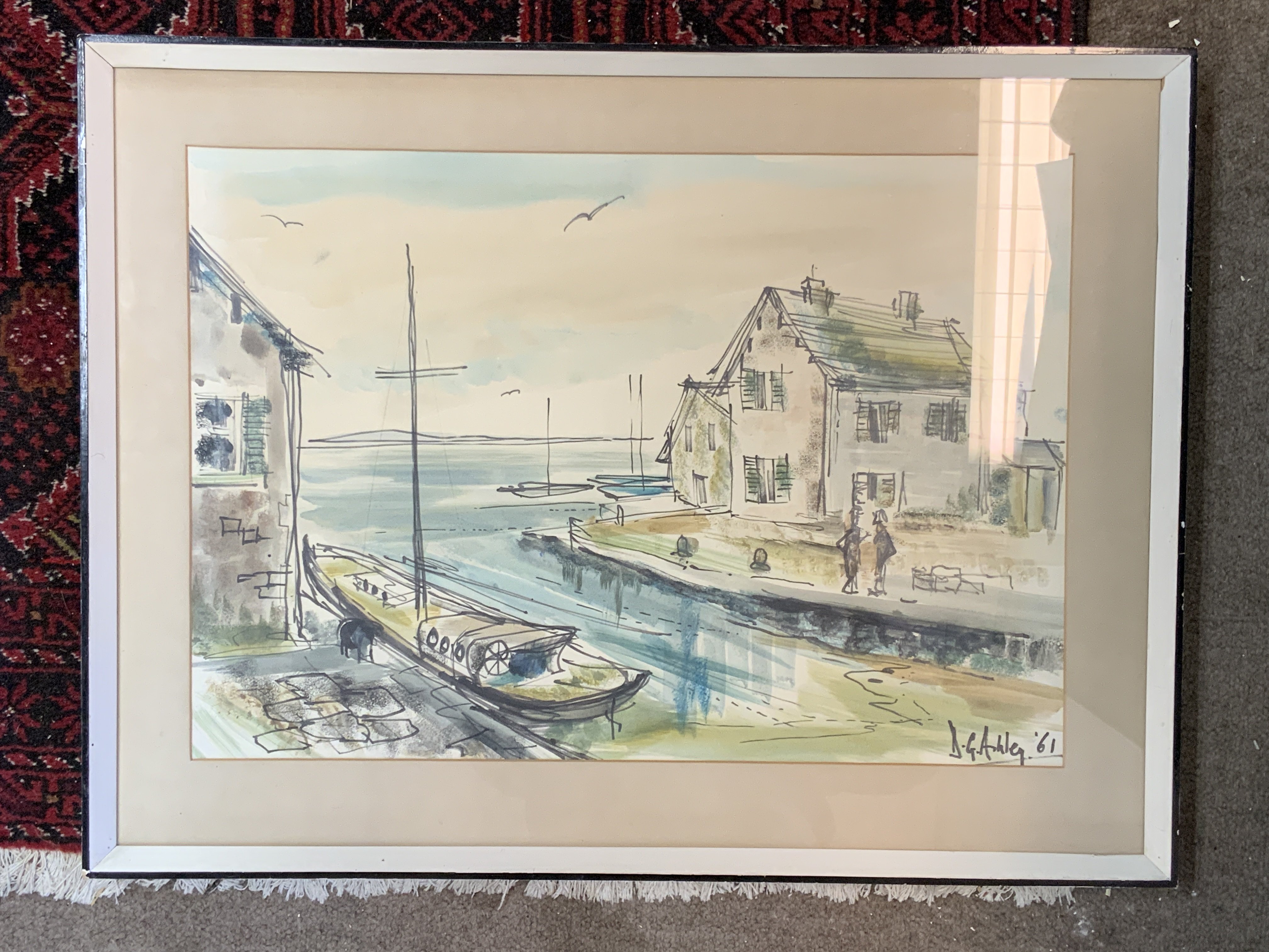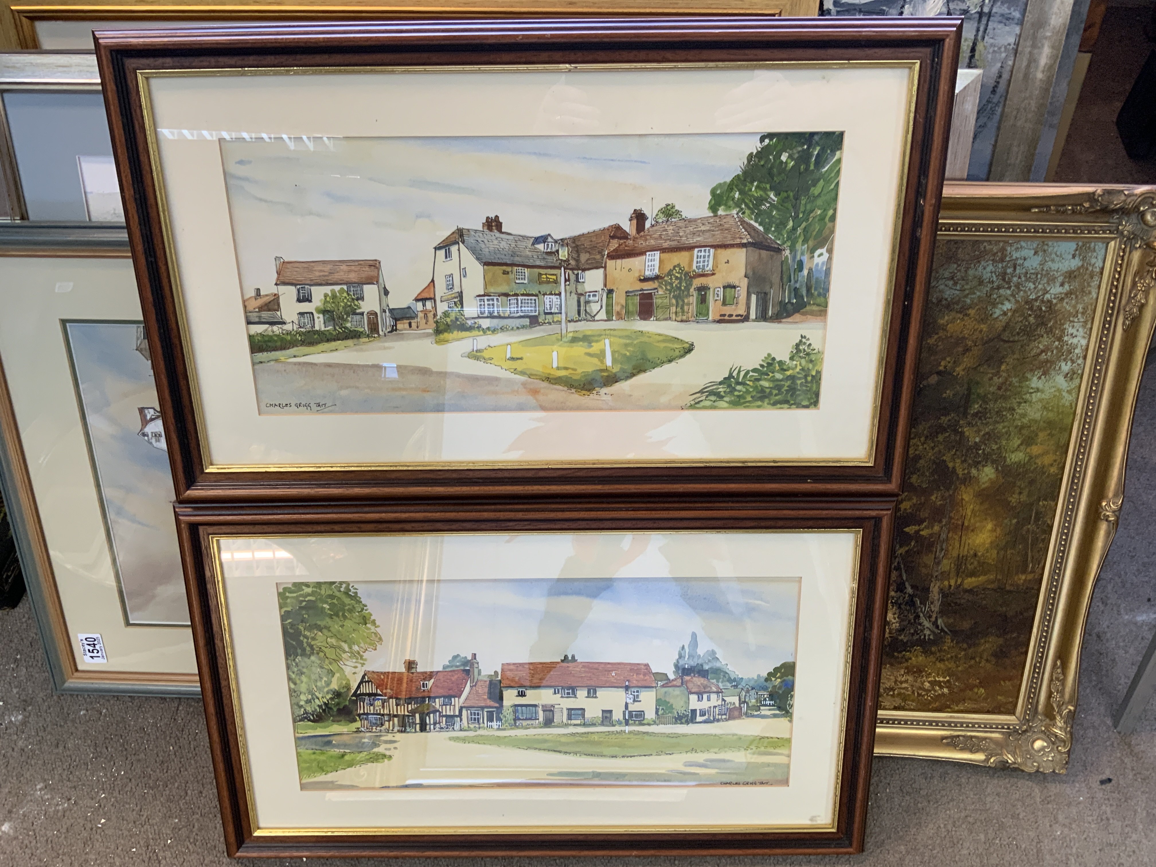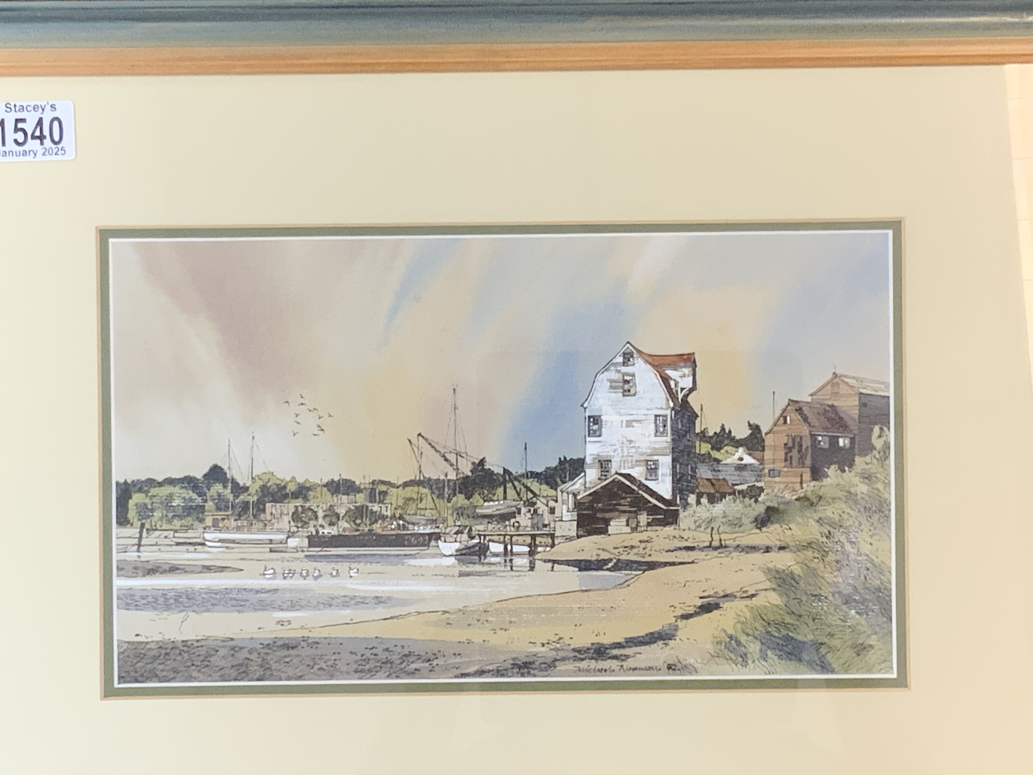 A collection of various framed pictures including a framed watercolour ink and wash by Michael Norman. Dated 82. (7)