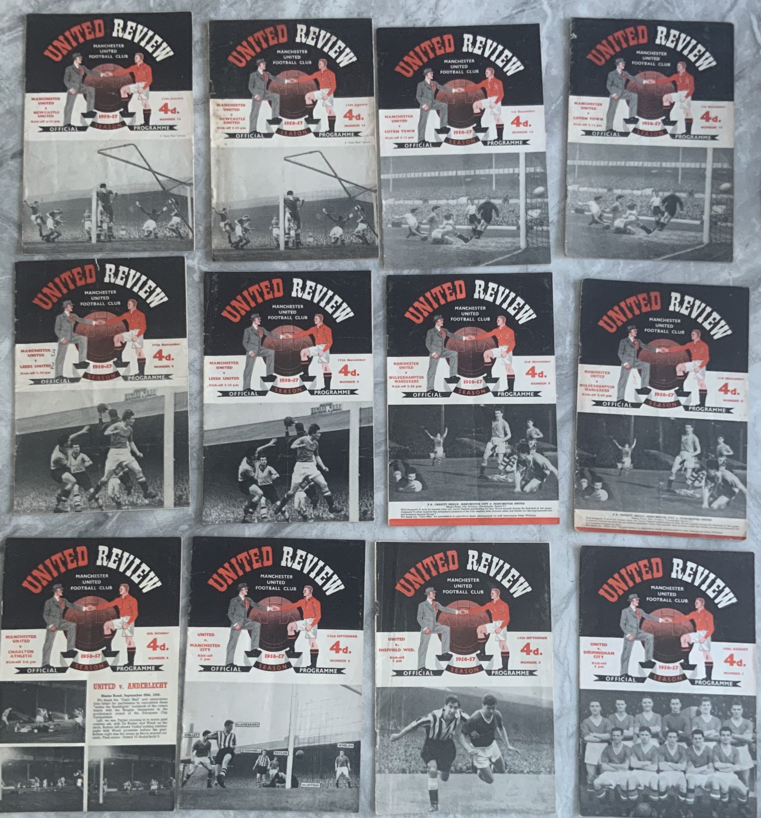Manchester United 56/57 Home Football Programmes: 17 different matches in good condition except for Preston which is poor. Some duplication 6 having score to front. (25)
