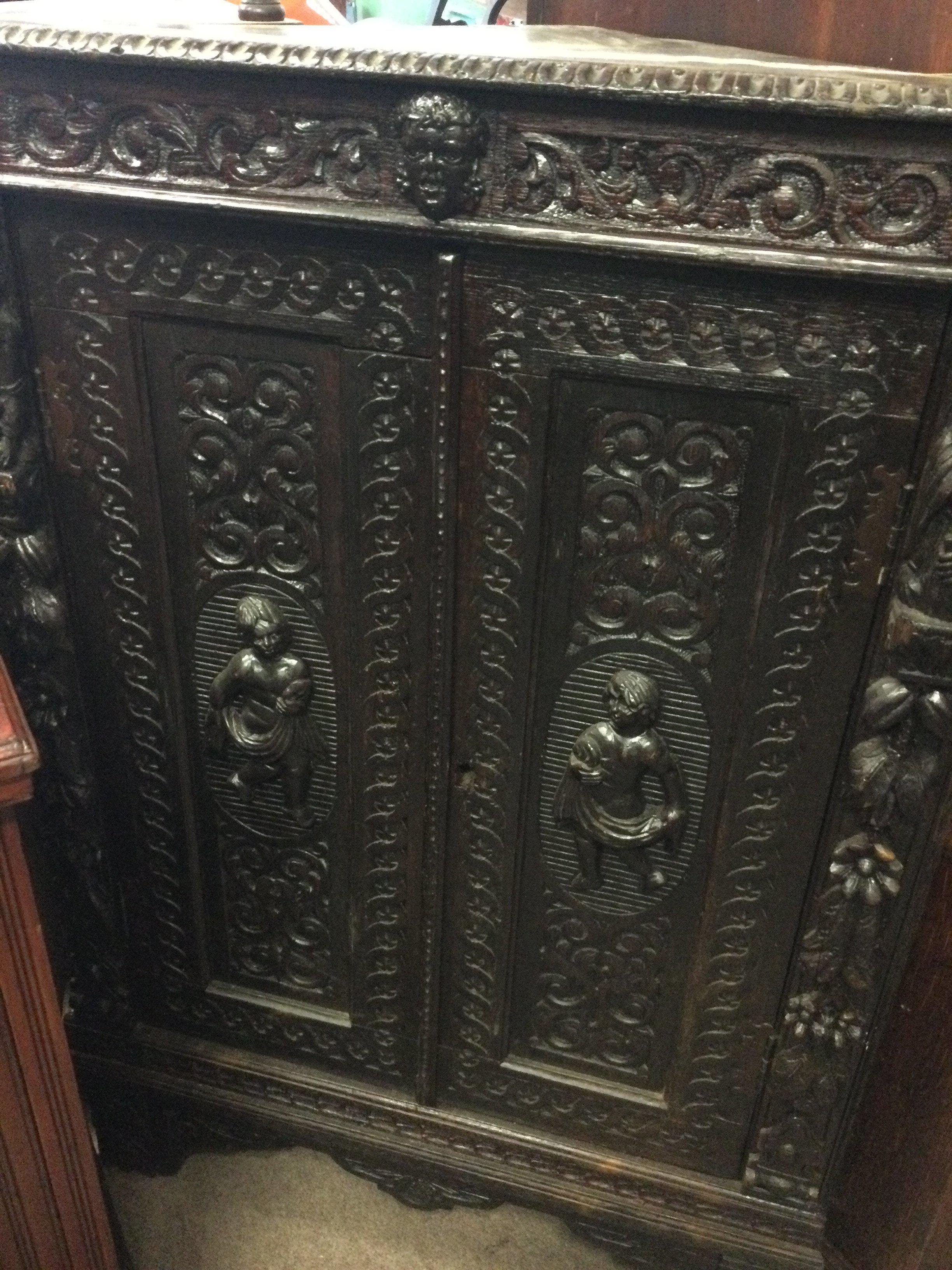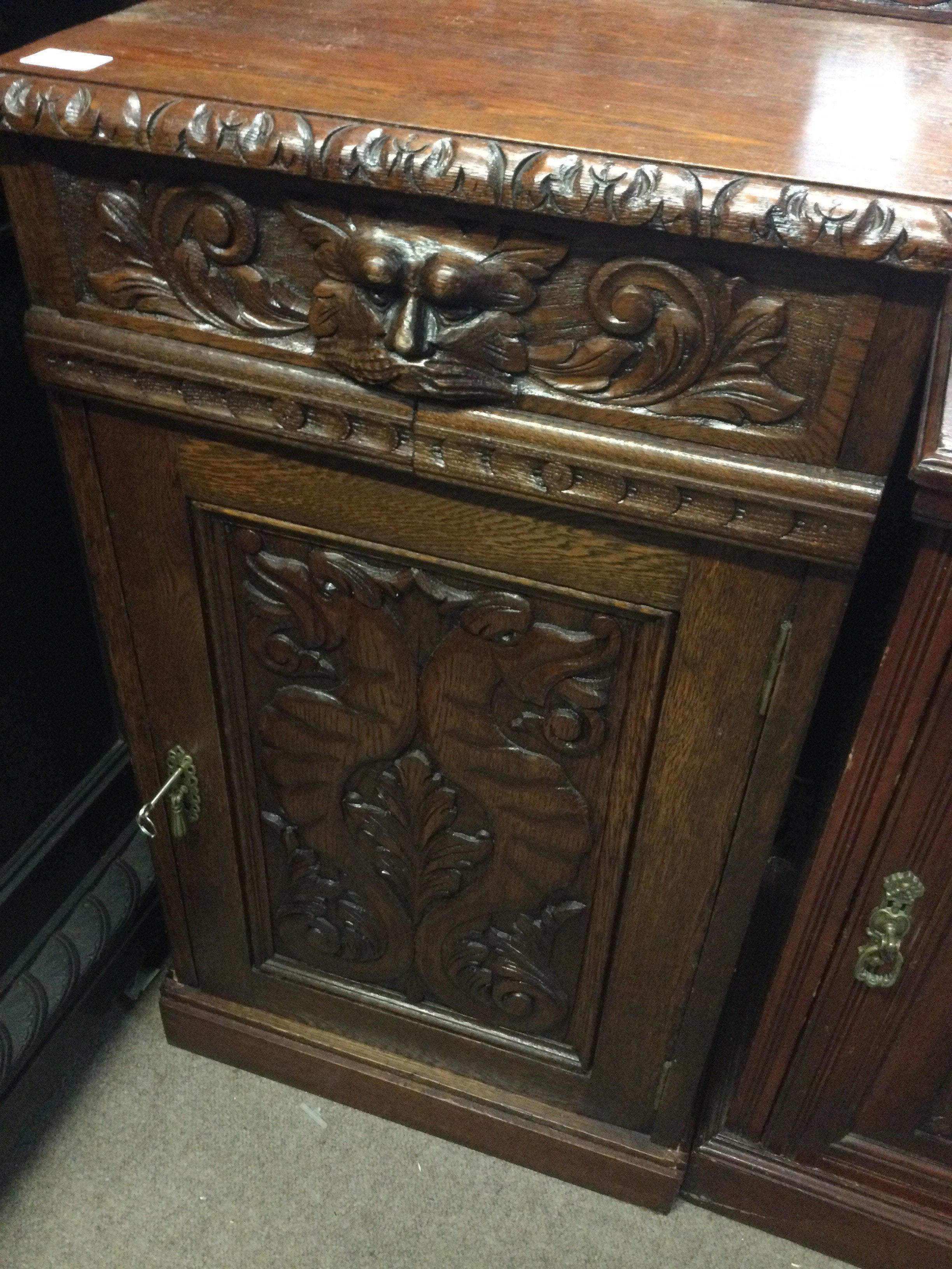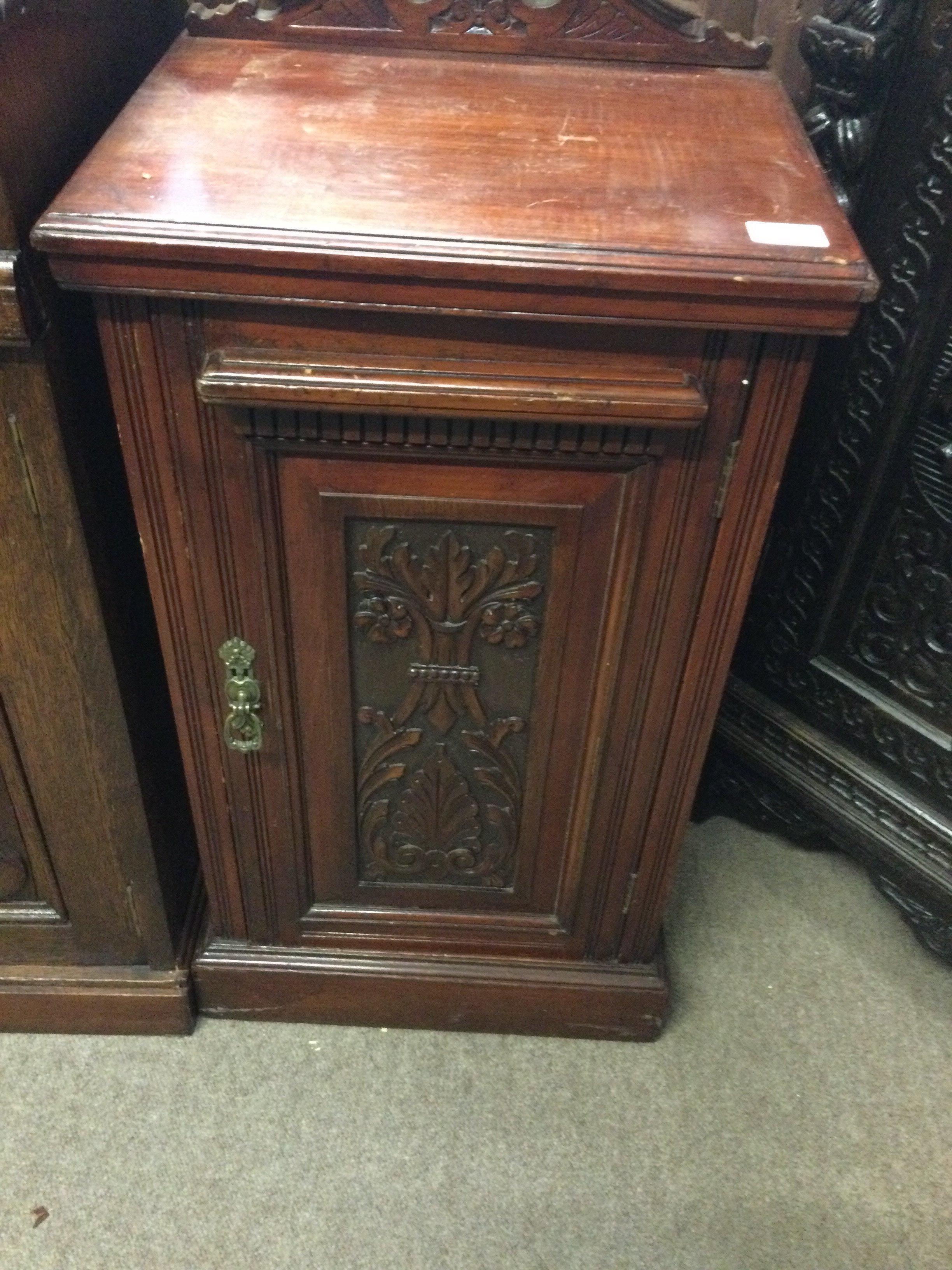 A collection of furniture including a carved corner cabinet a small cabinet with single drawer carved door on a plinth base and a Edwardian pot cupboard.