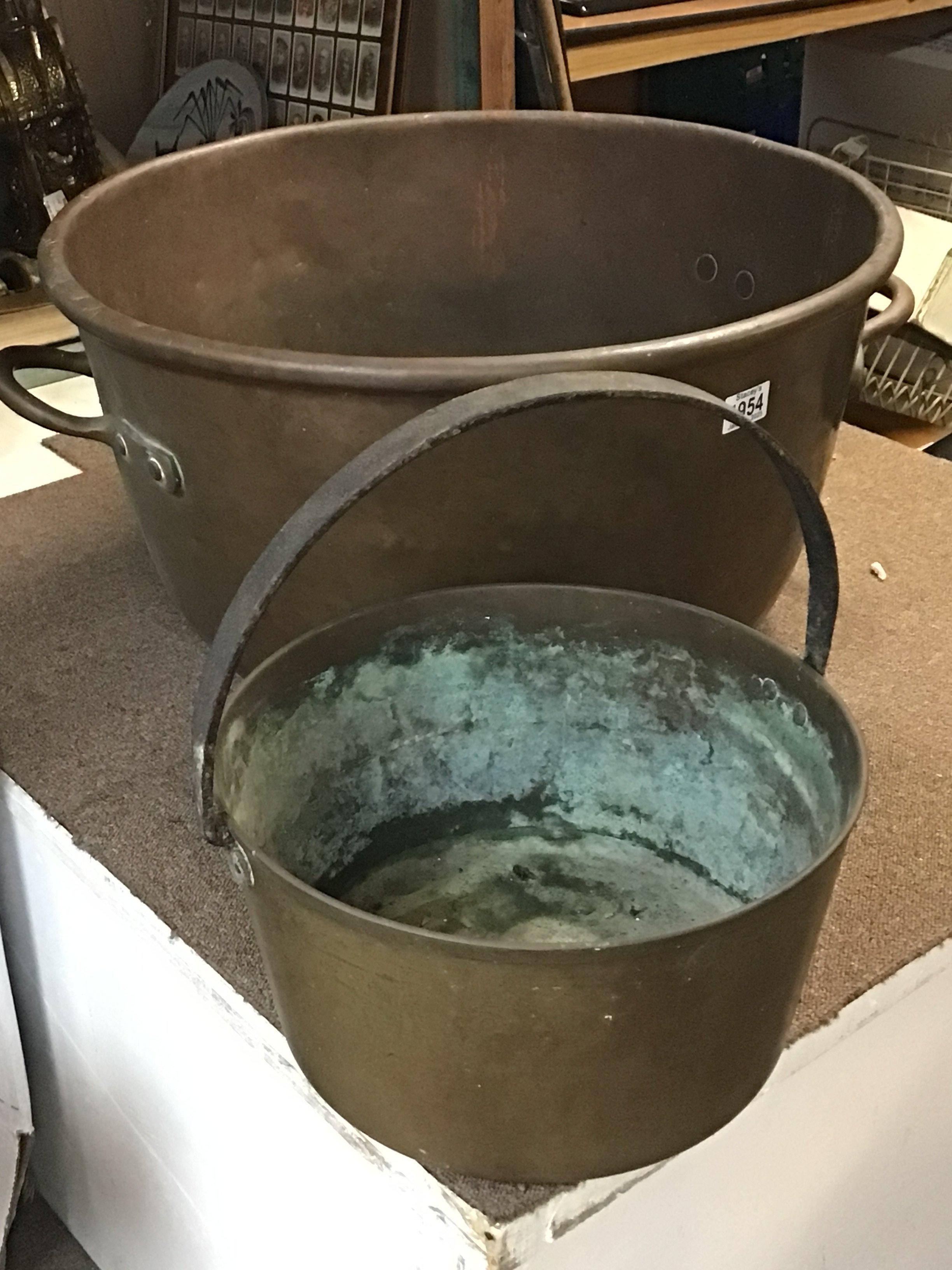 A large Vintage heavy copper wash bowl diameter 60cm and a preserve pan (2)