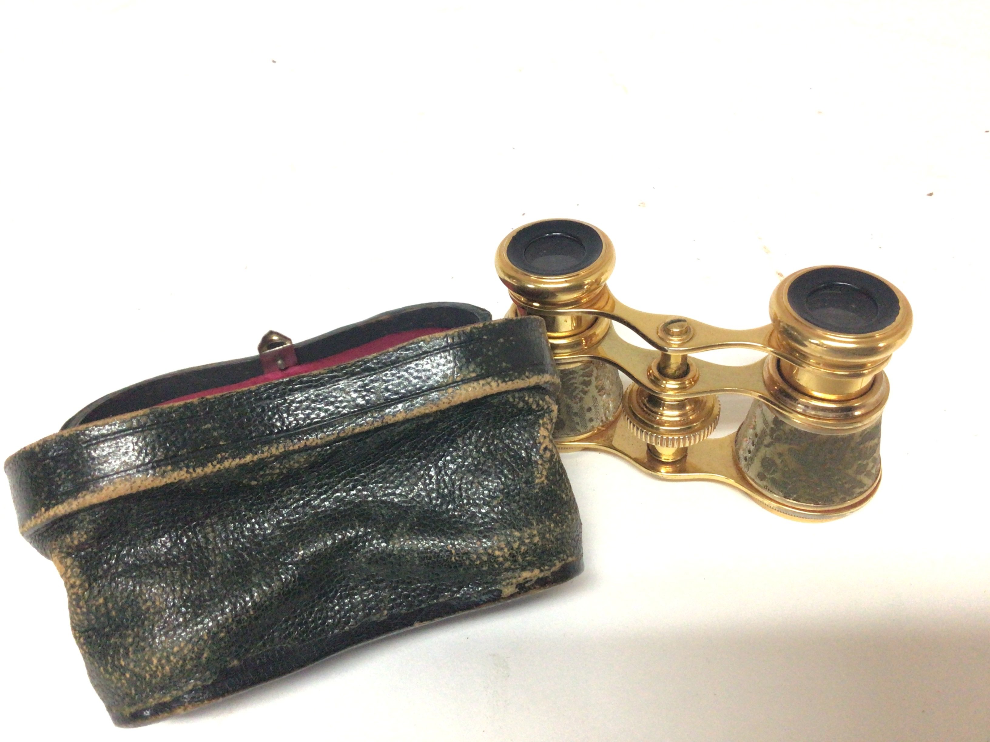 A pair of gilt plated vintage opera glasses with case maker J.Nedbal