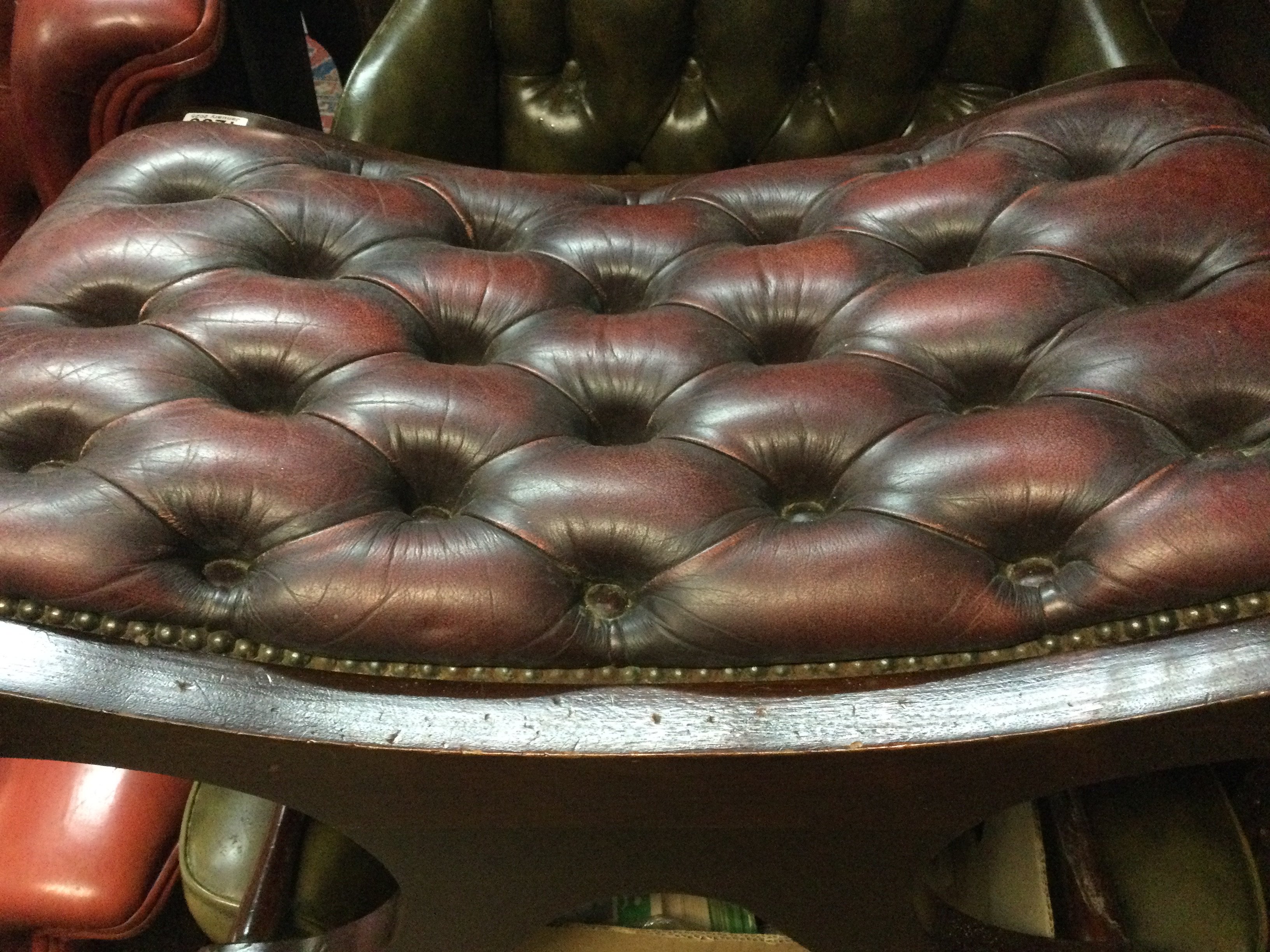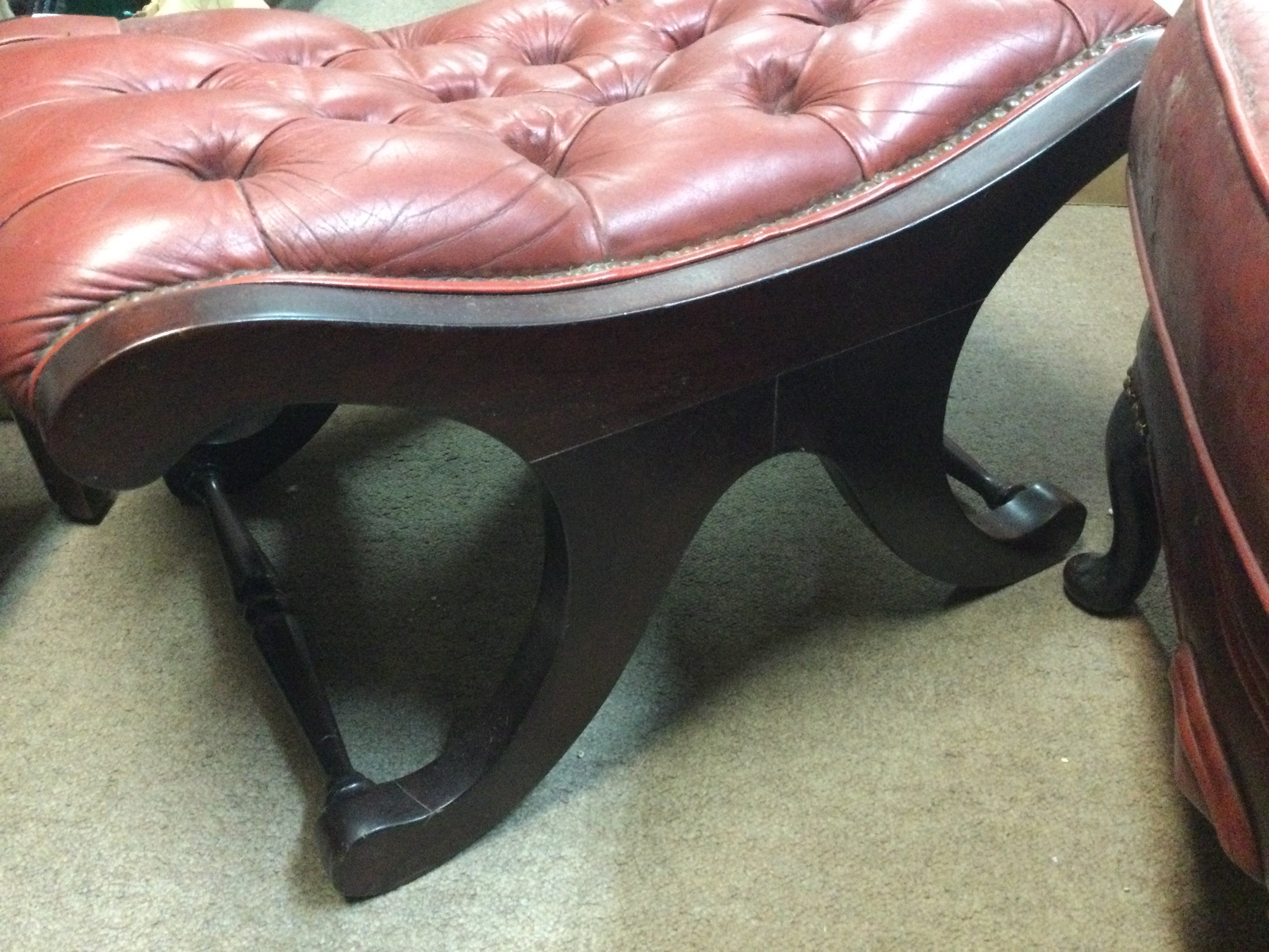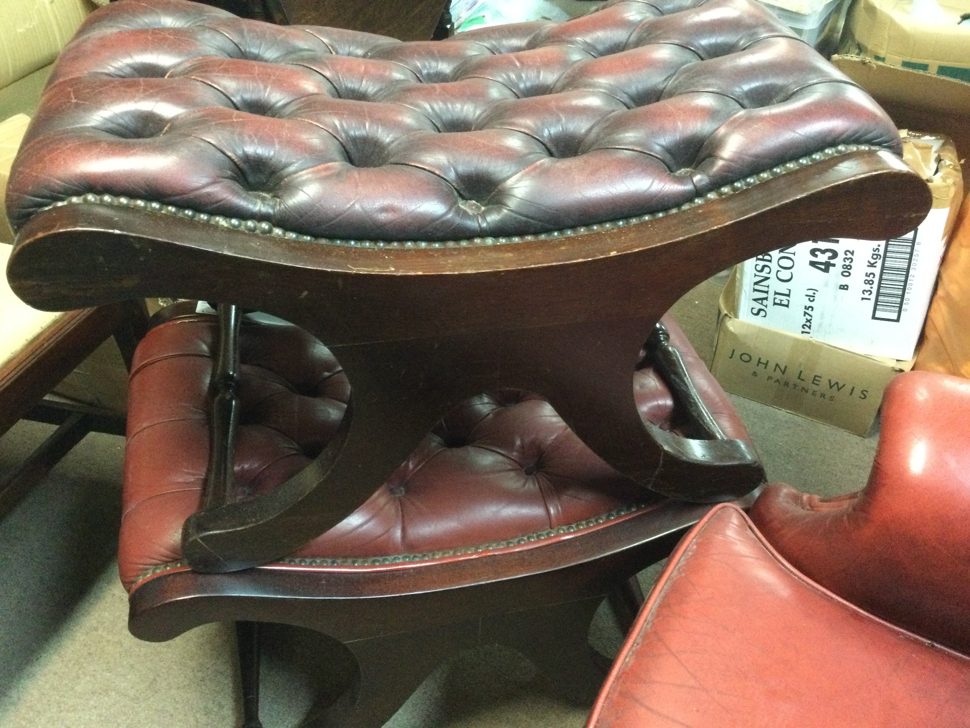 Two X framed stools with button seats .