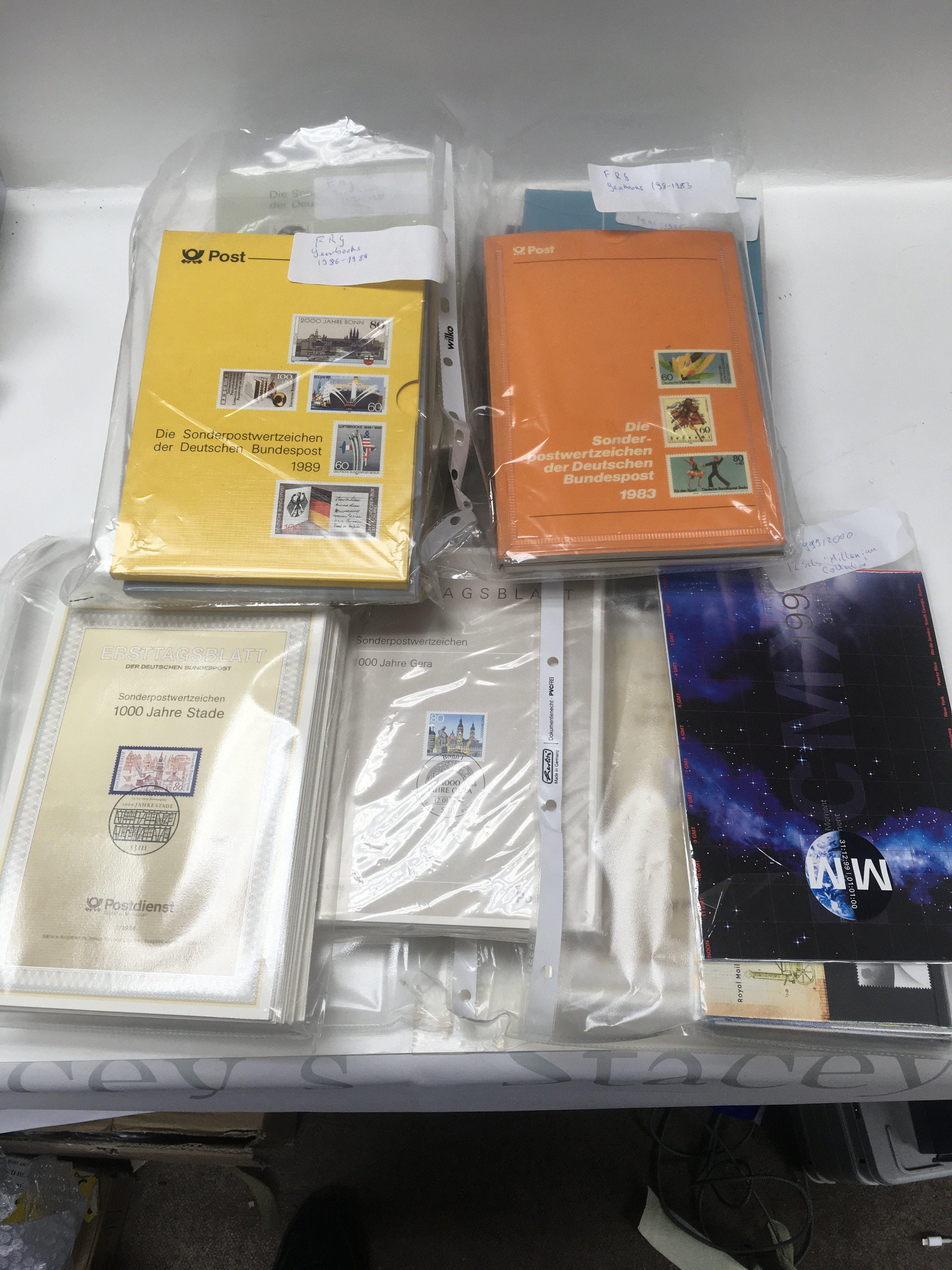 A box containing 1991-1995 German stamps, also including year books 1992-1995 86-89 and 80-83. And first day cover 1992,93,94,95 1991-1994. All in great condition.