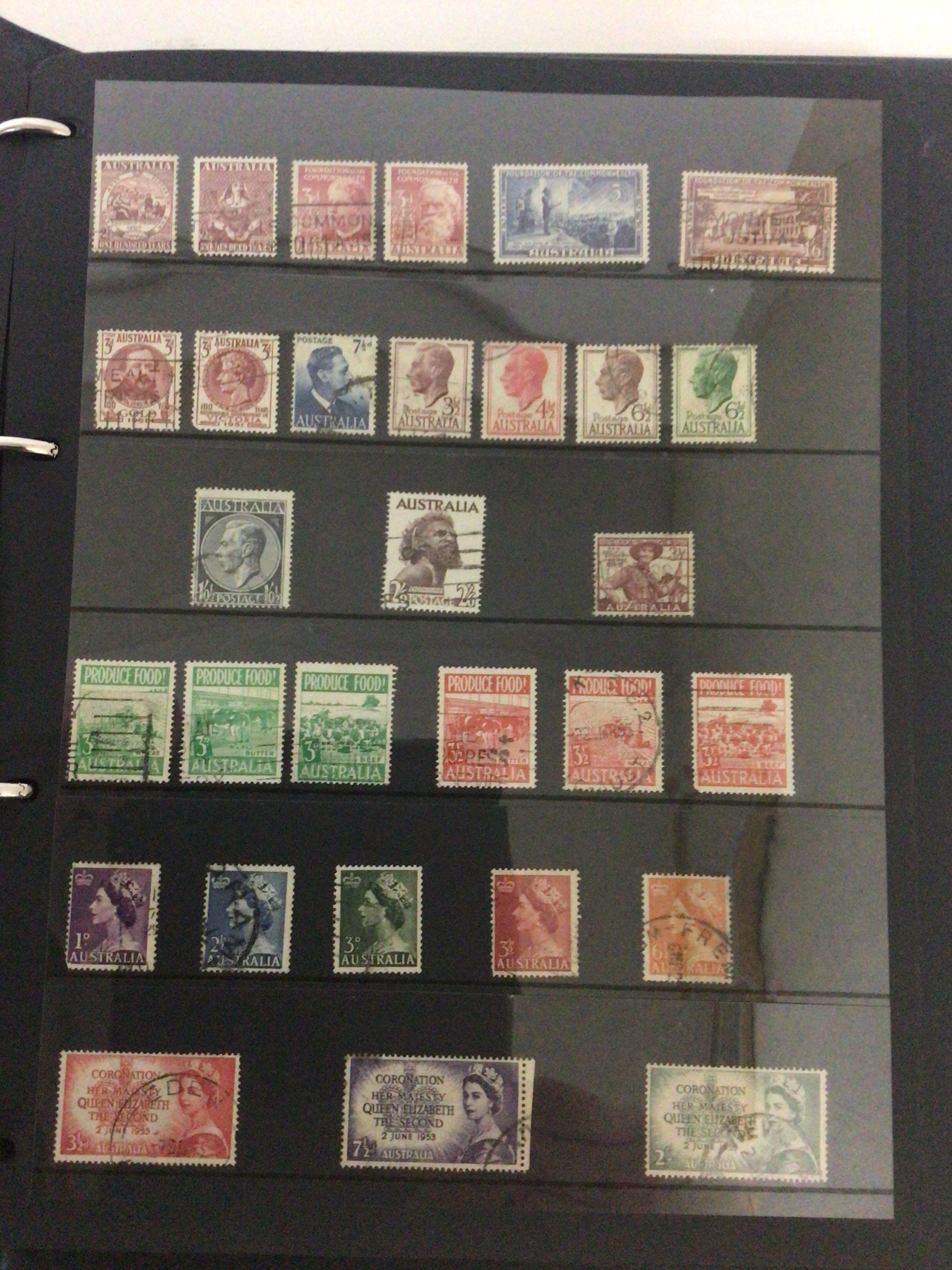 Five red Alpha Major stamp albums containing world stamps from the 19th century onwards America Australia Canada Jamaica and New Zealand mainly used stamps well presented in sleeves (5)