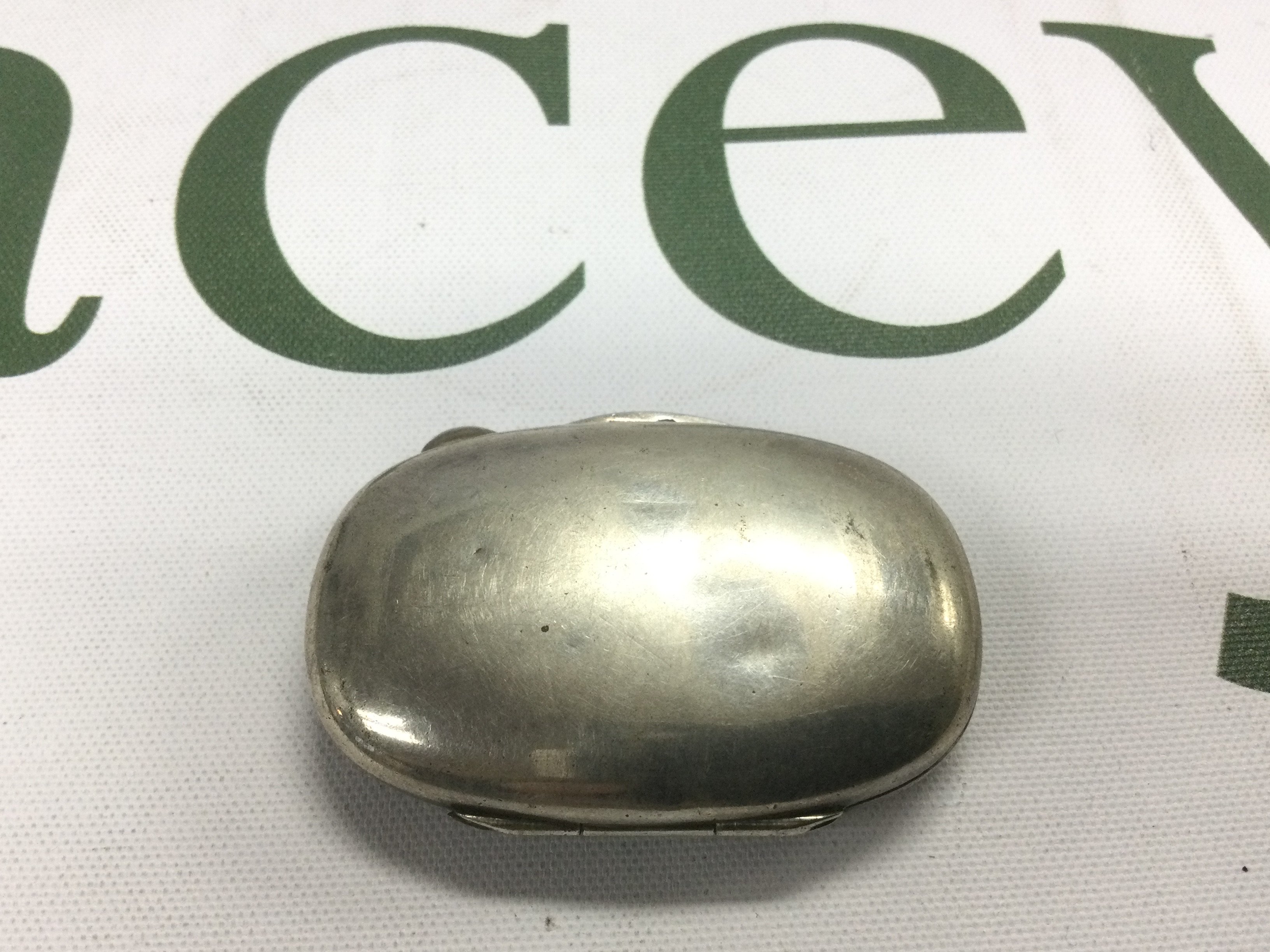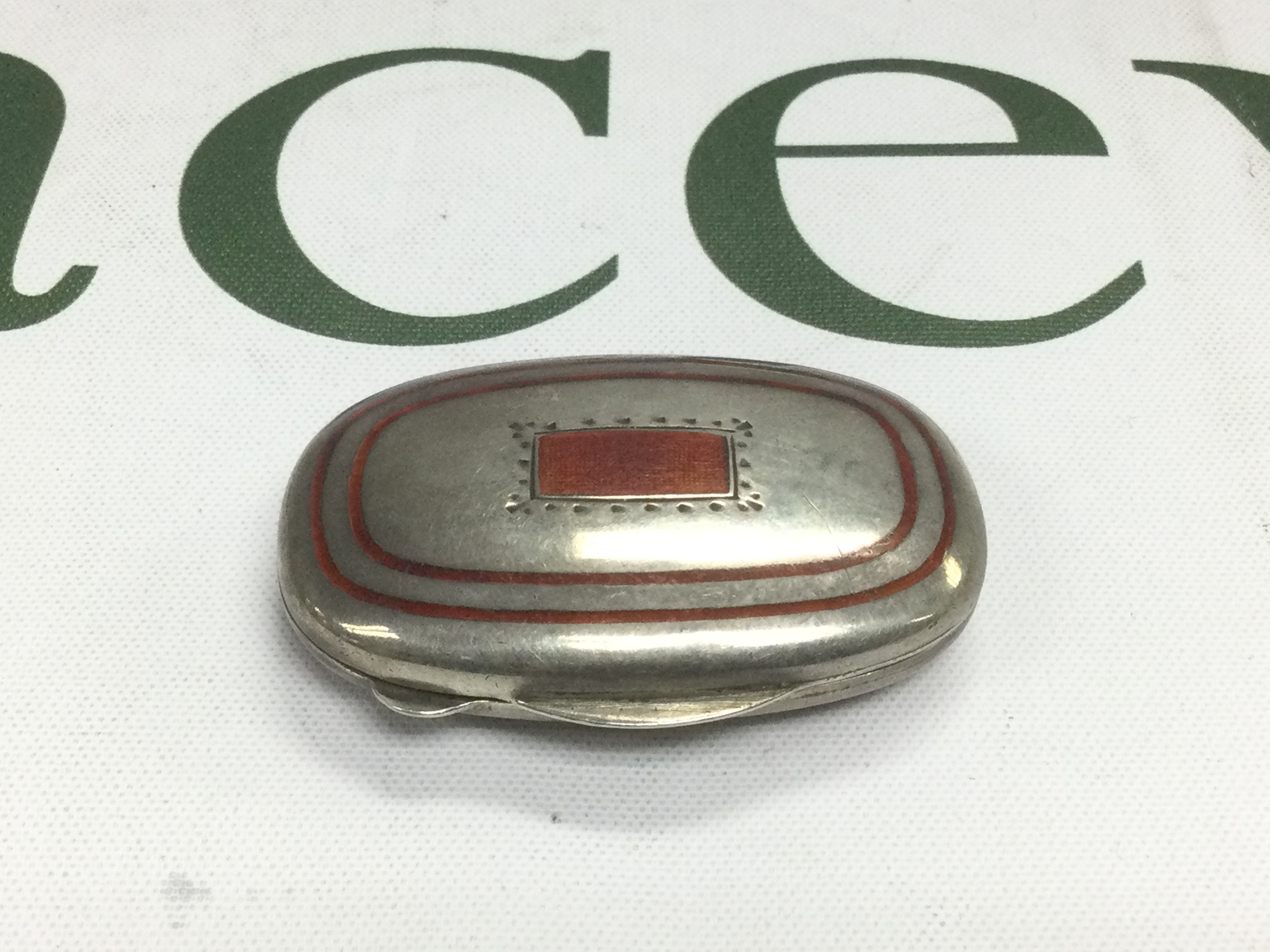 A silver and enamelled pill box, approx 4.5cm x 3.5cm. Shipping category A.
