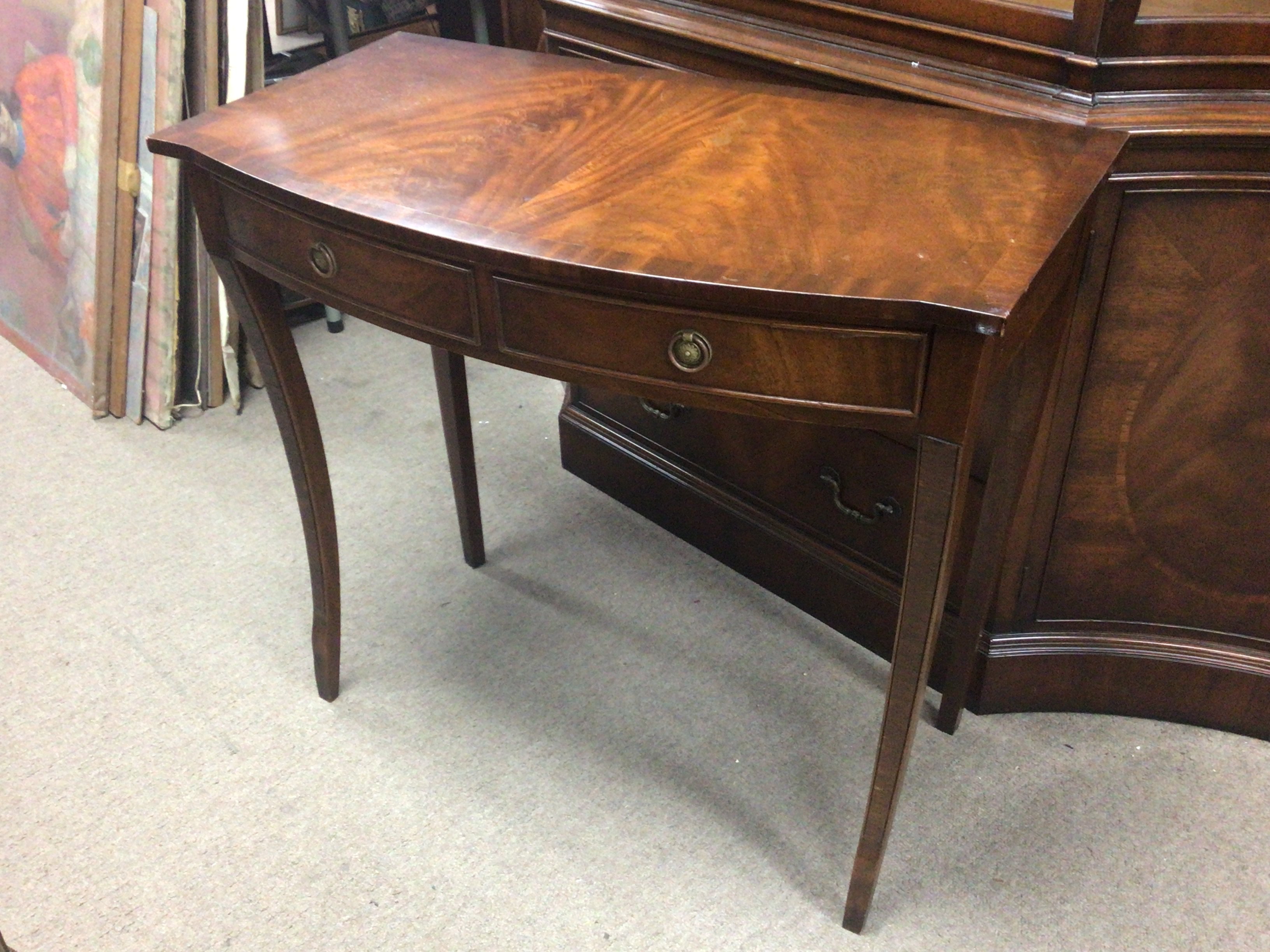 A Mahogany side table fitted with two drawers and with inverted legs width 86cm