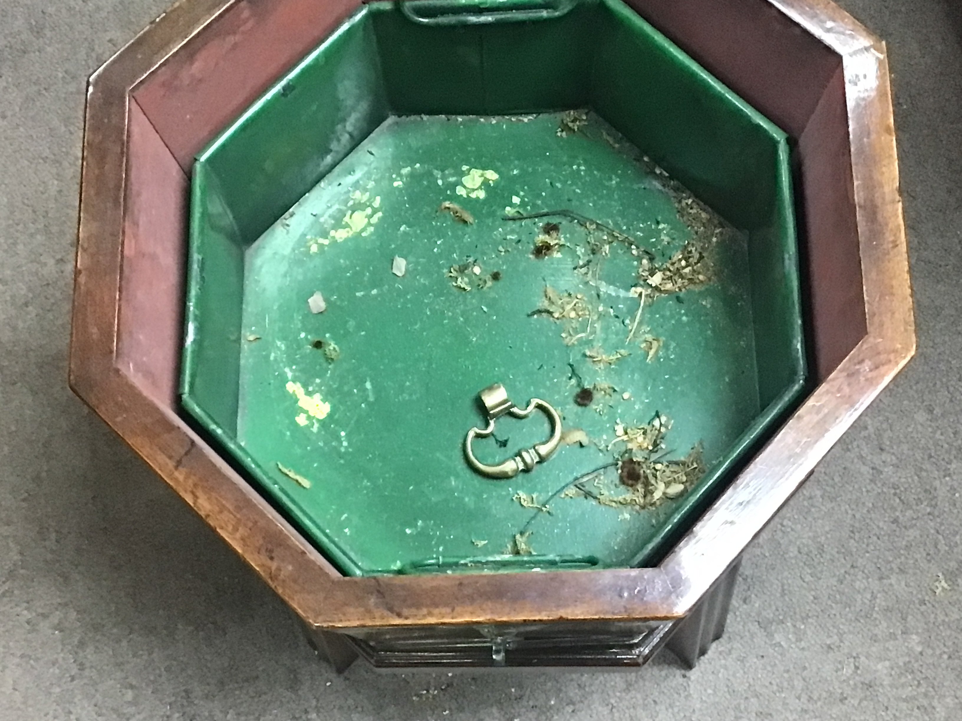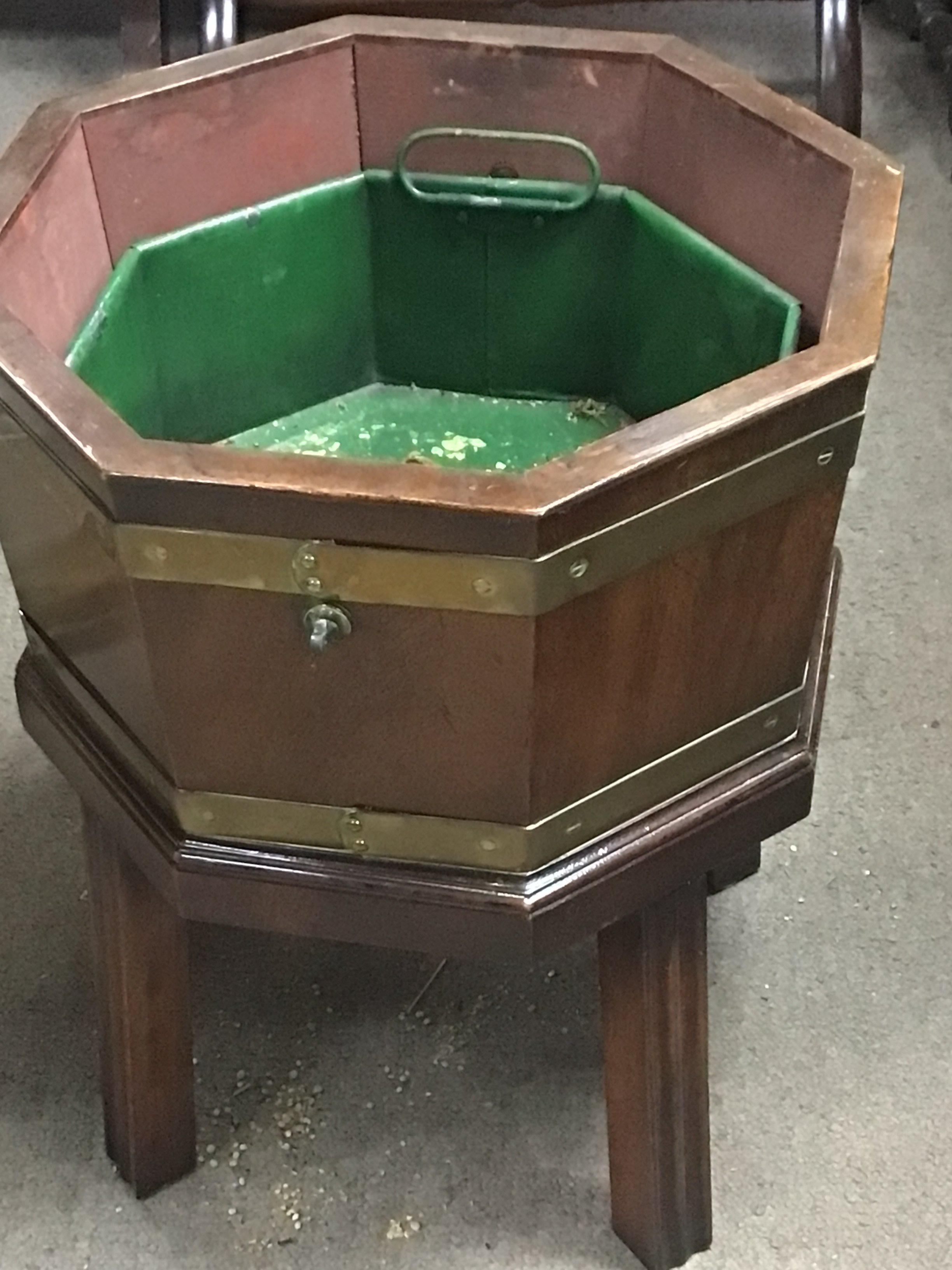 A brass bound mahogany wine cooler of flower jardiniere on fluted legs. Hight 50cm