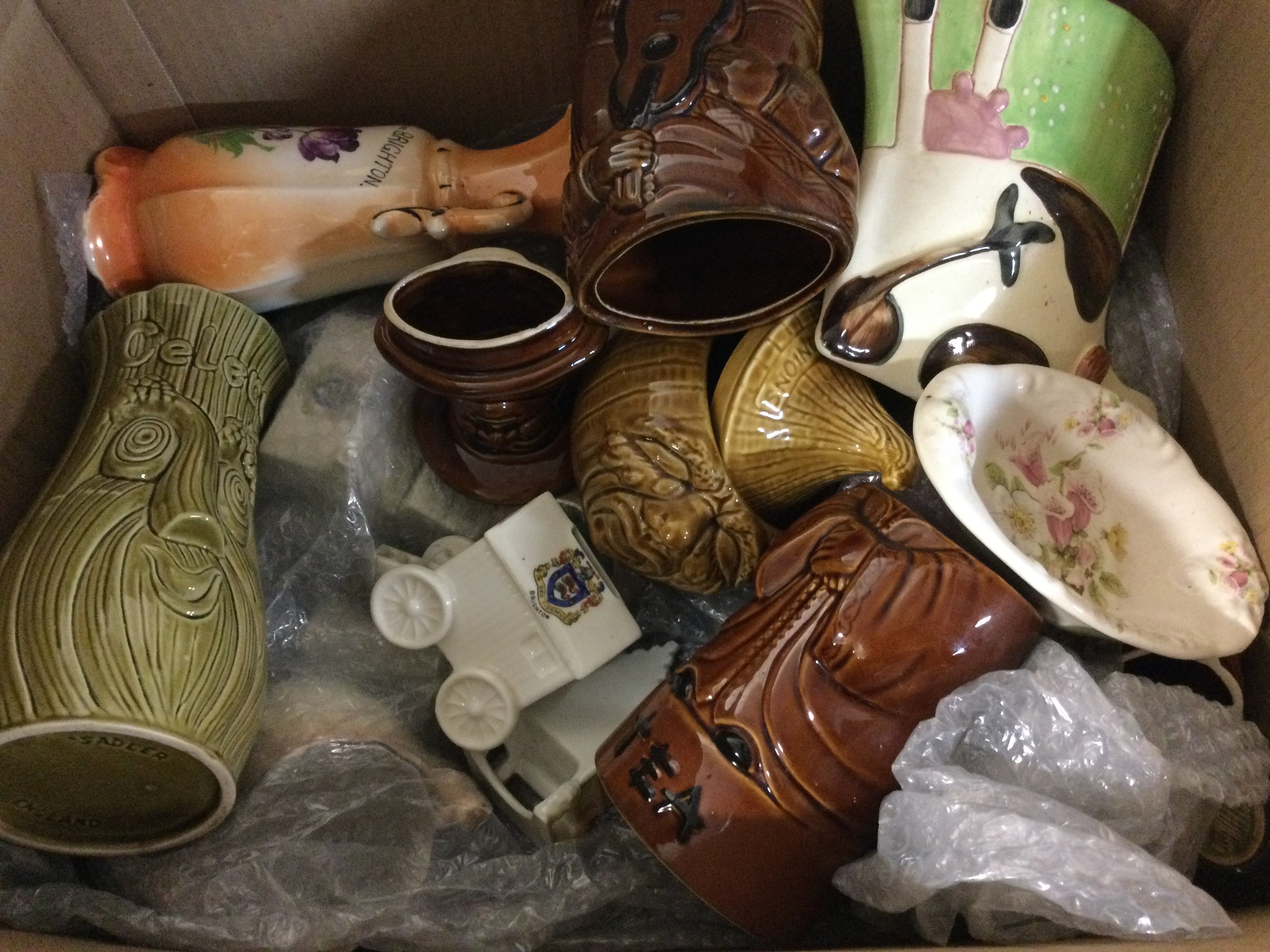 A large assortment of ceramics and vintage glass including shaving mugs etc
