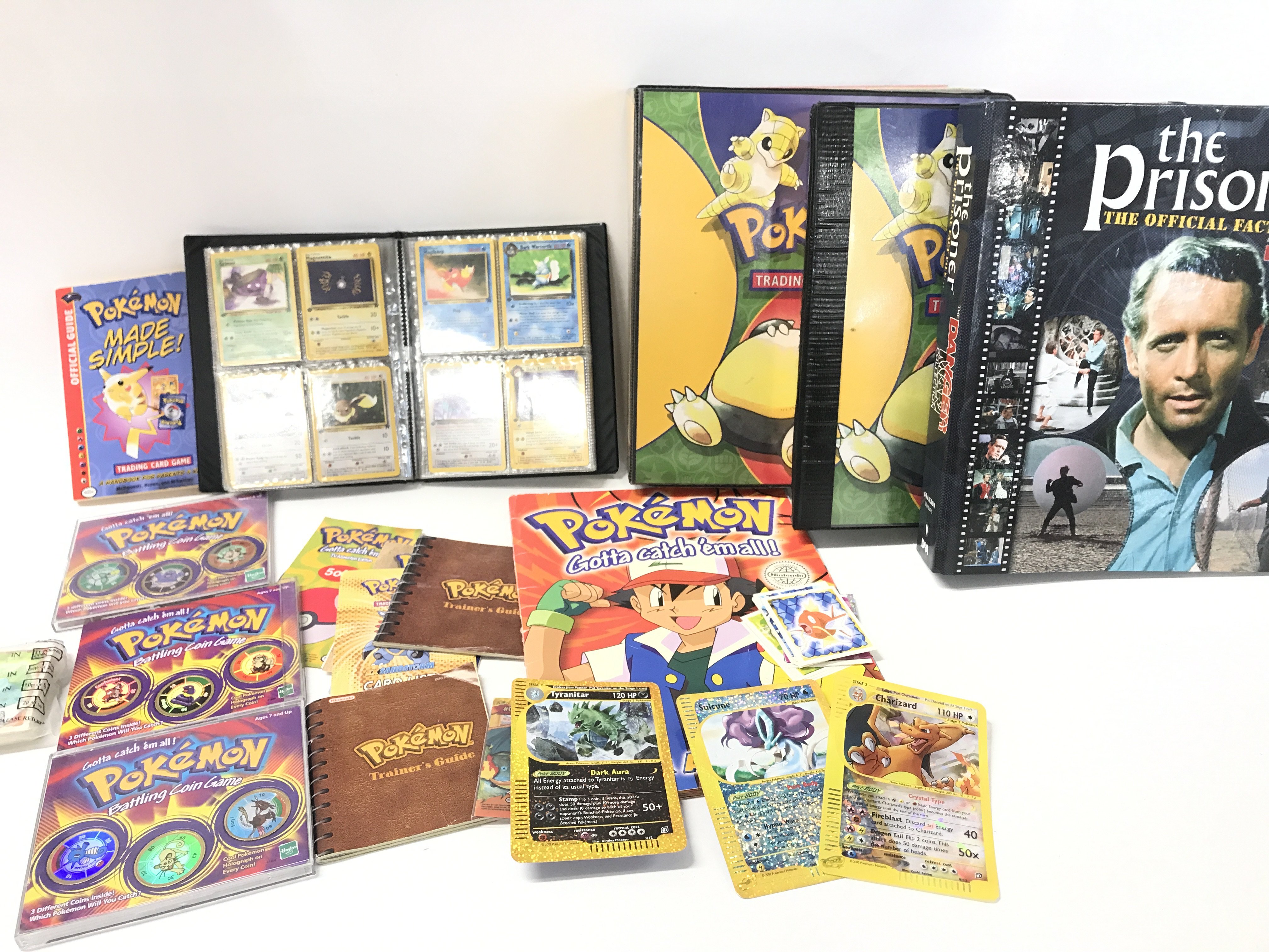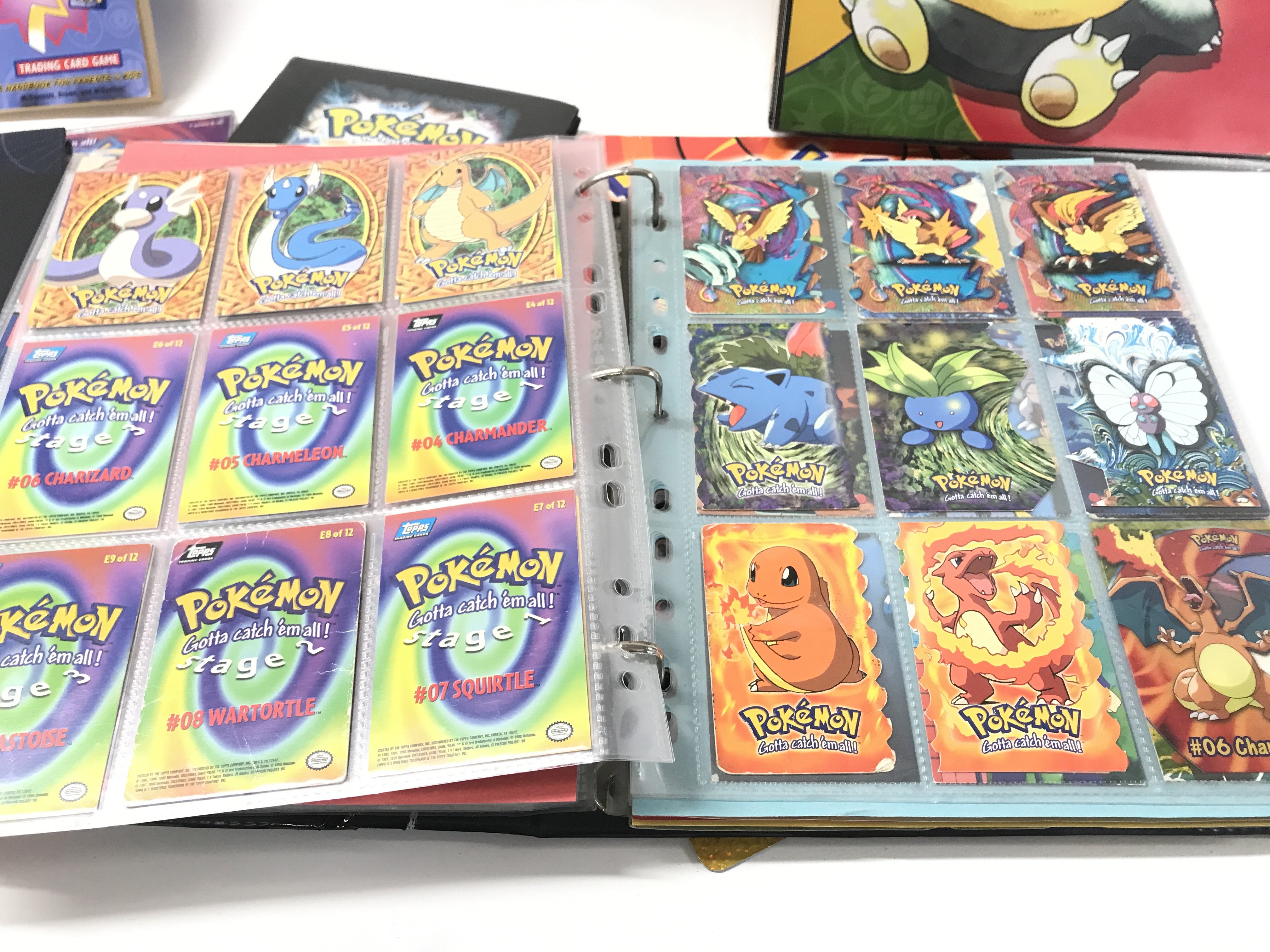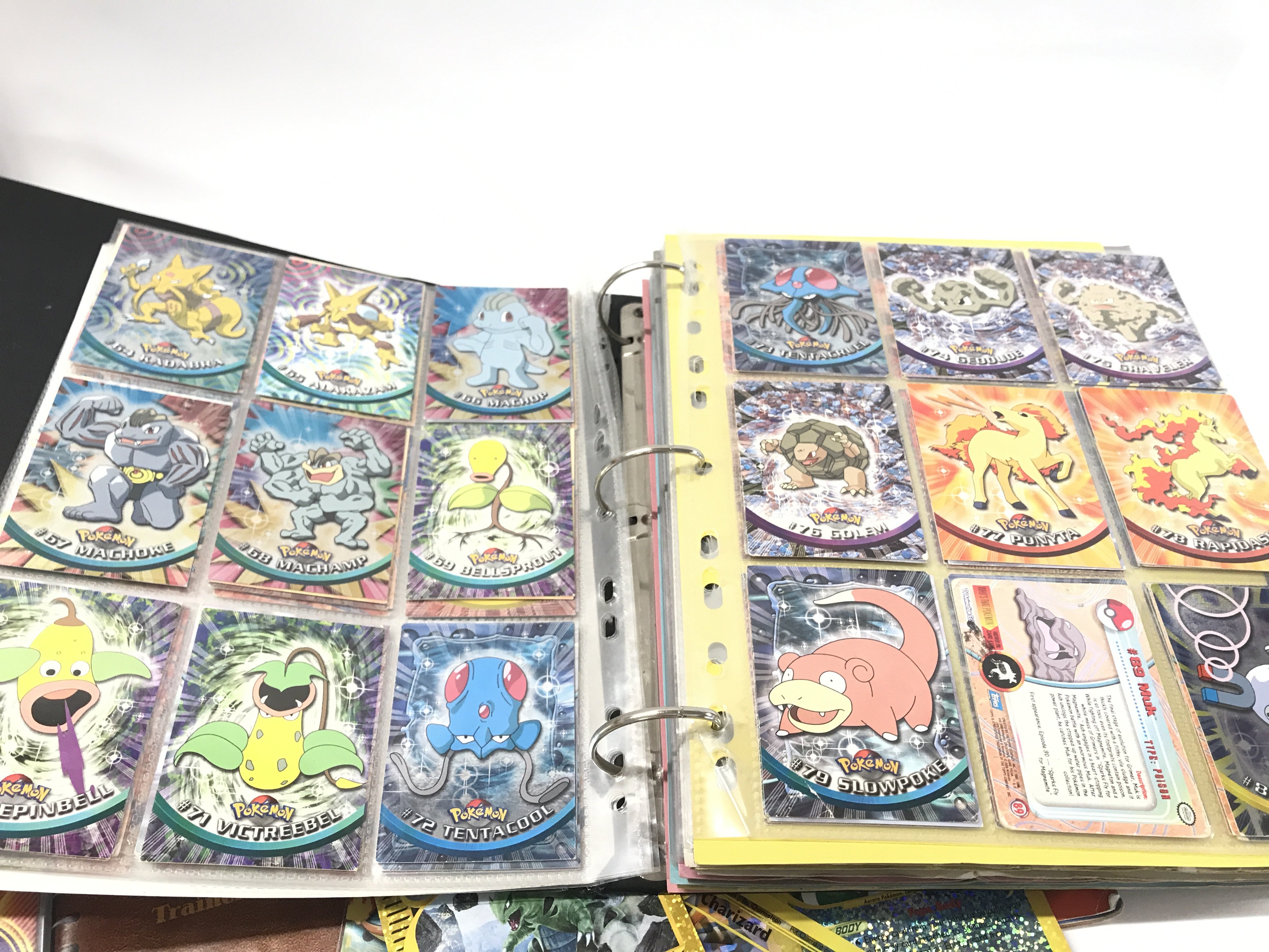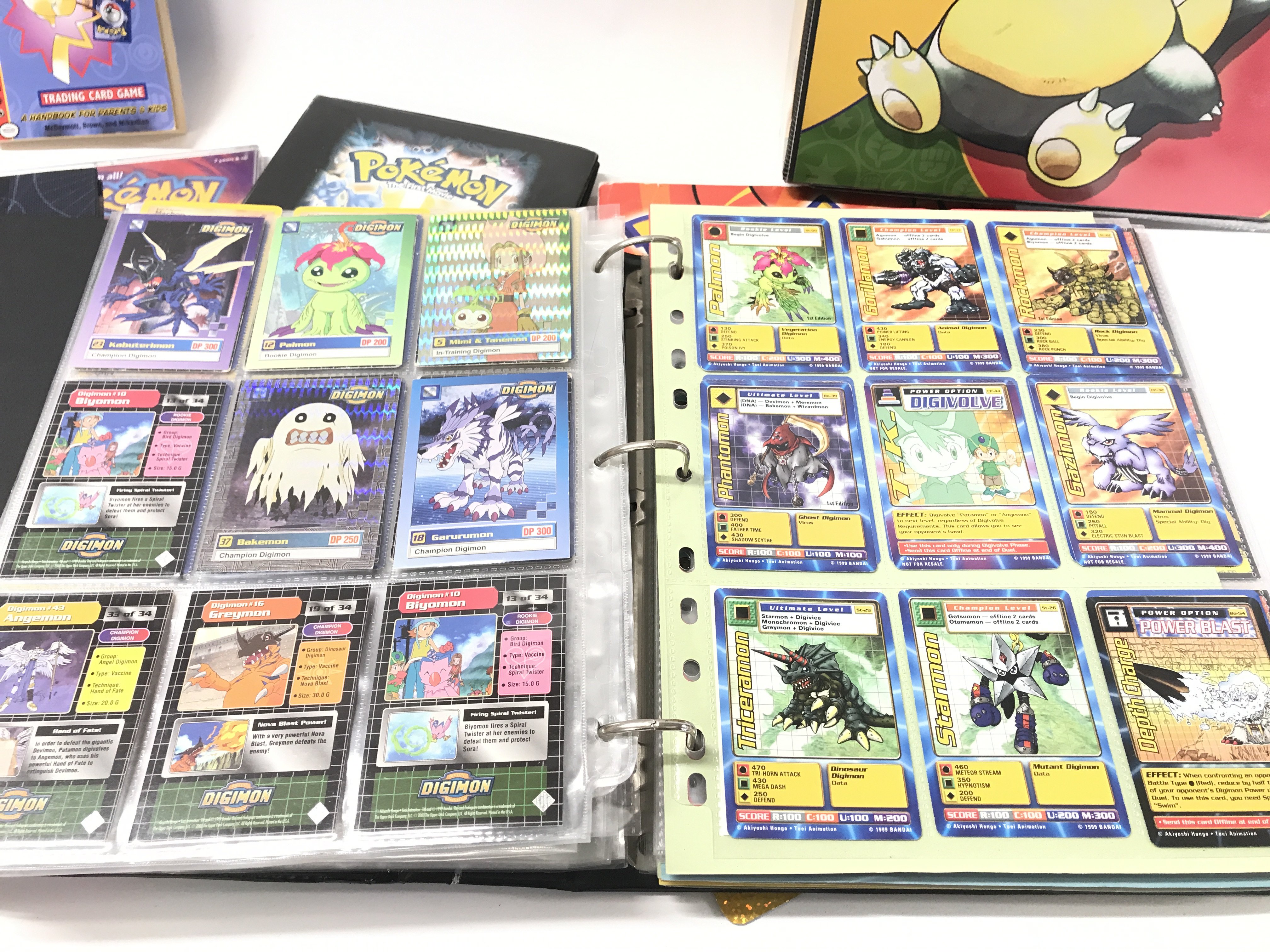 4 X Binders Containing Vintage Pokemon and Digimon Cards. A incomplete Merlin Sticker Book and Coin Game.