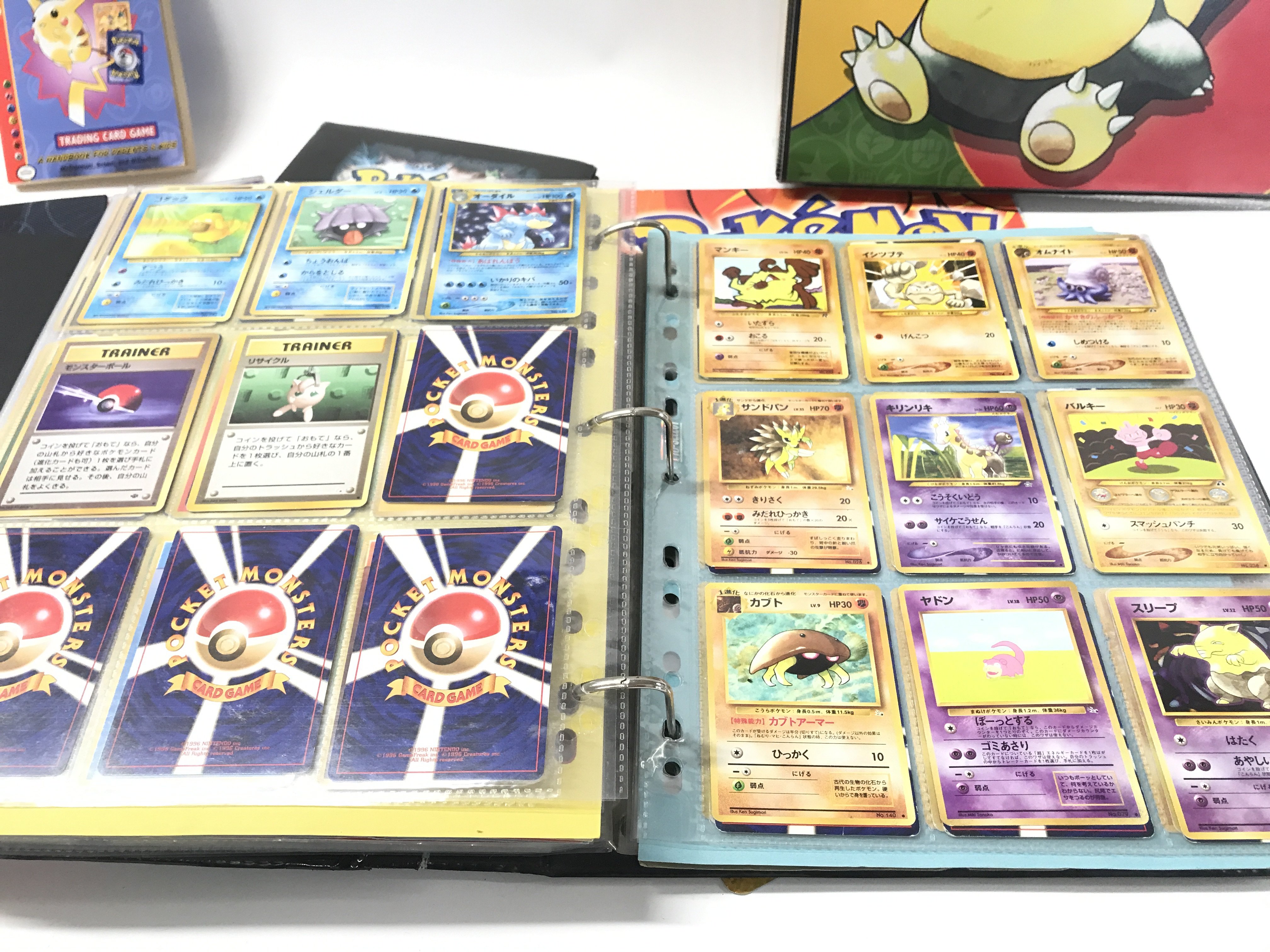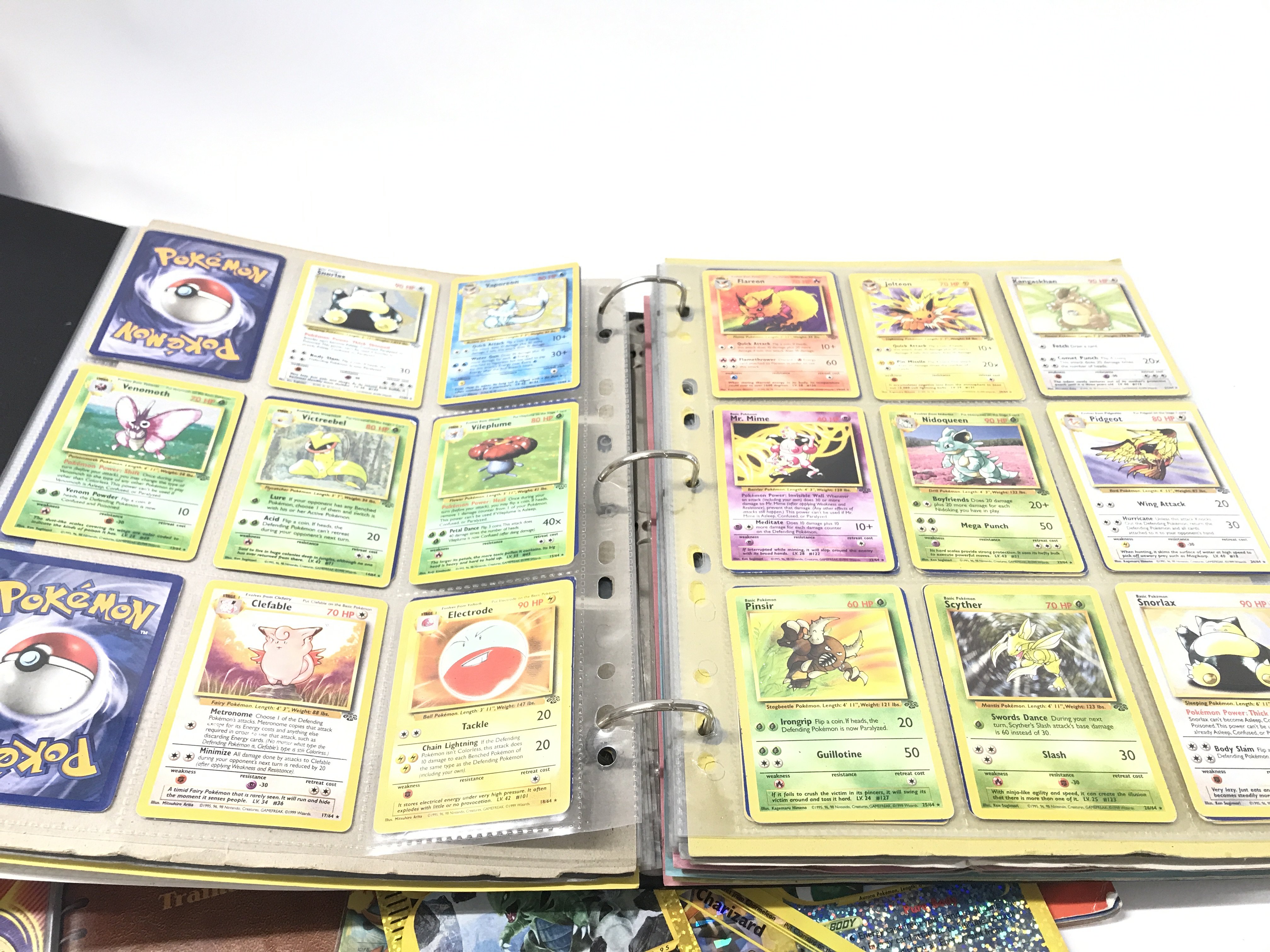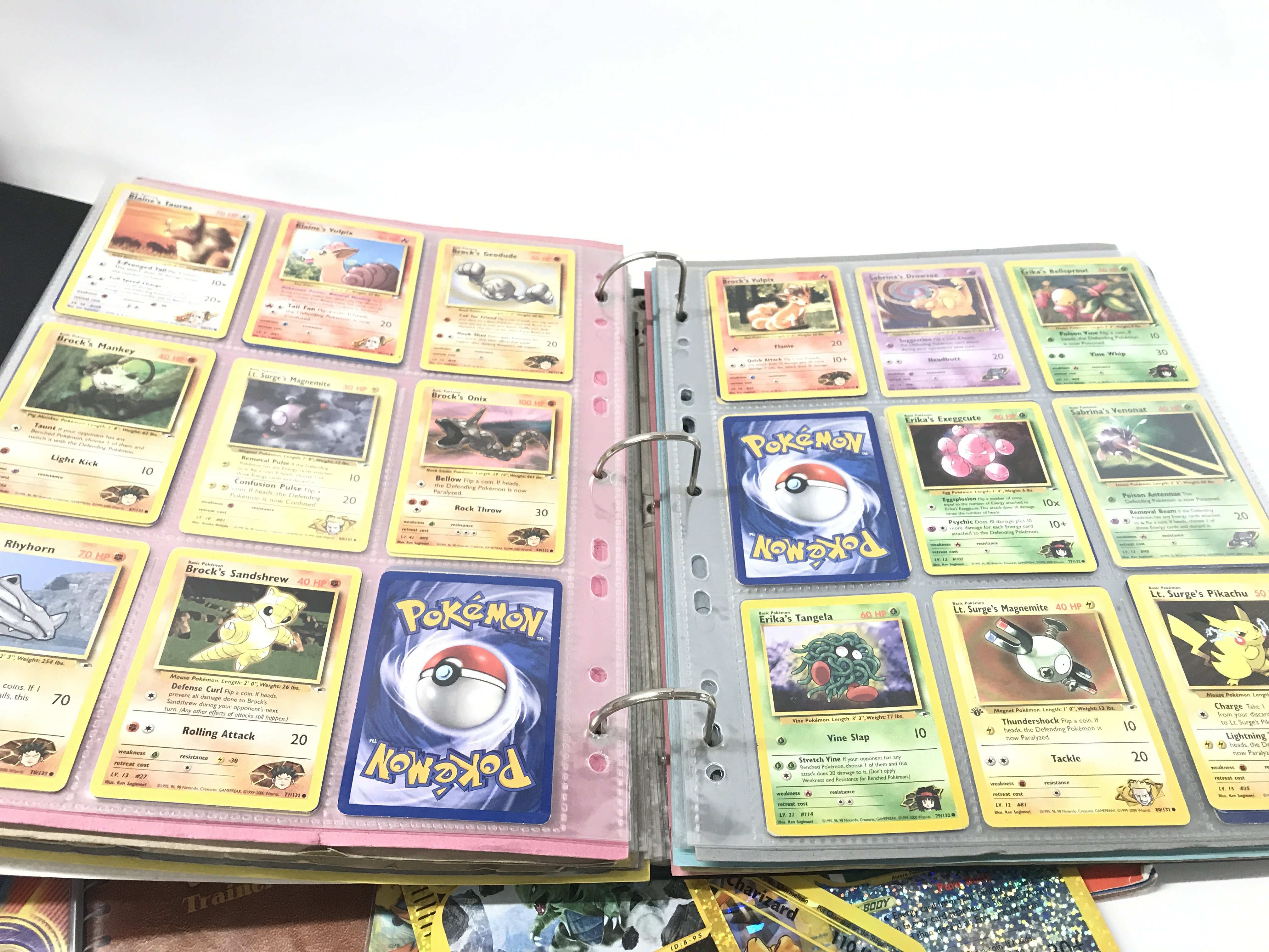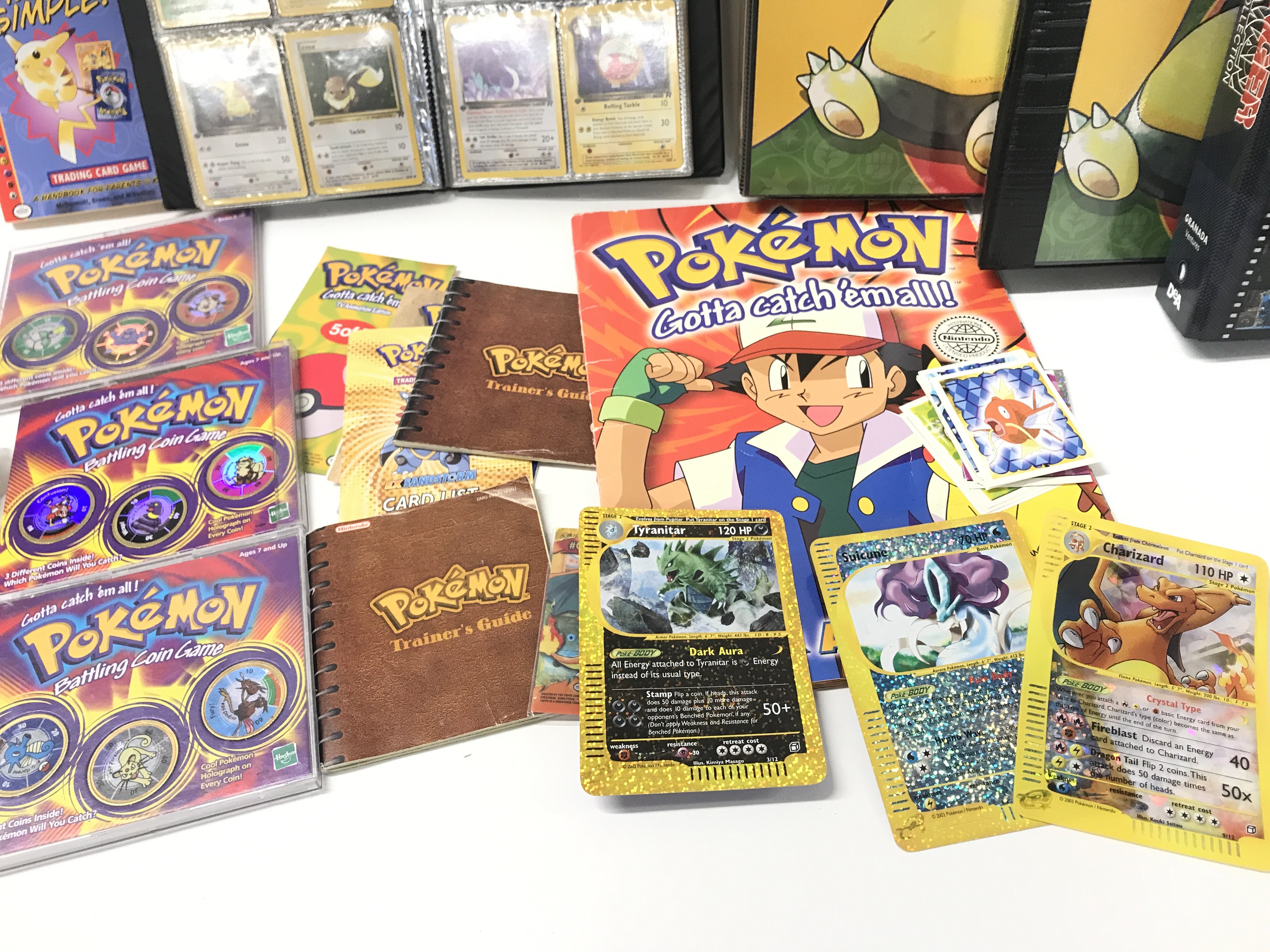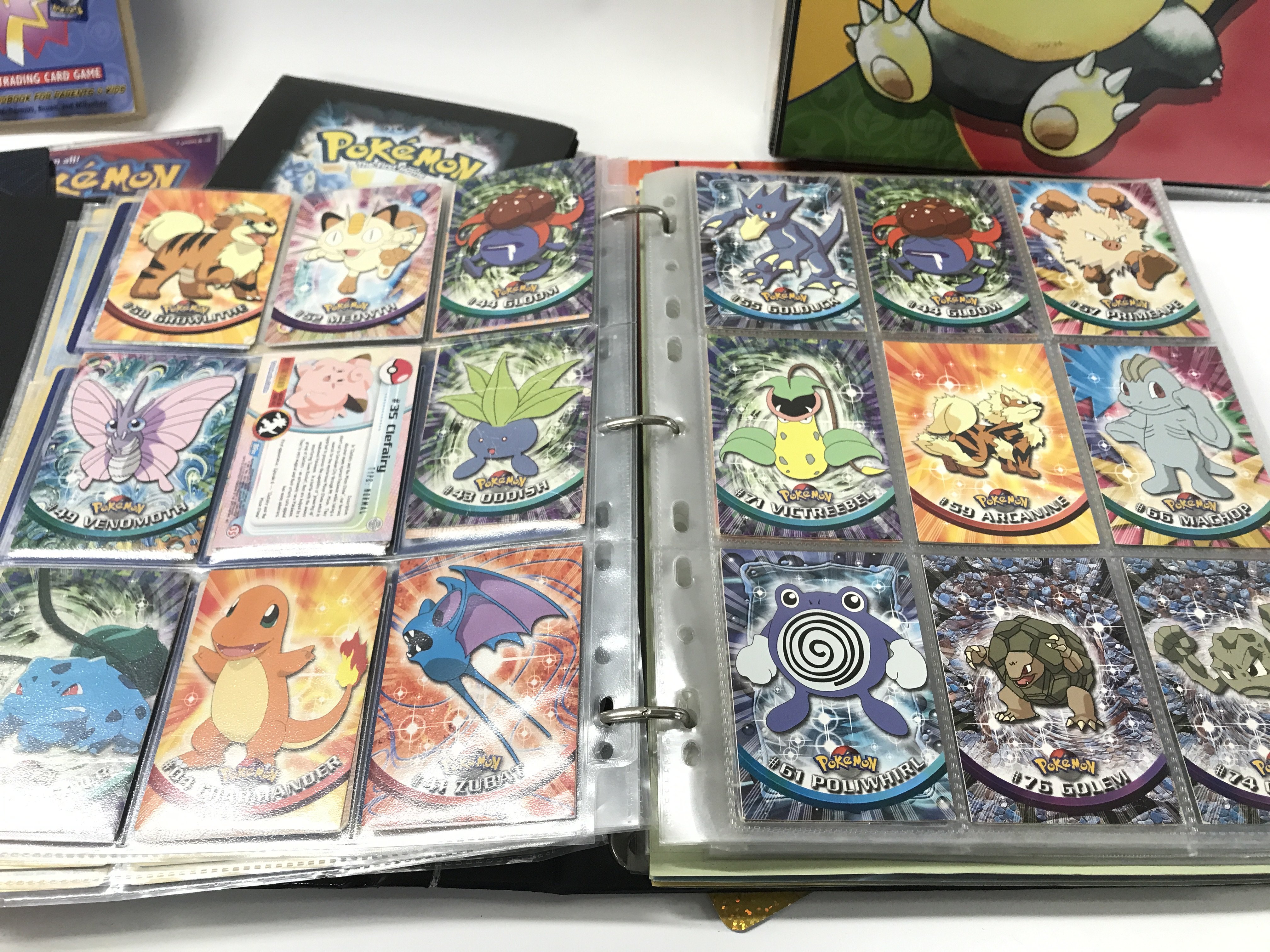 4 X Binders Containing Vintage Pokemon and Digimon Cards. A incomplete Merlin Sticker Book and Coin Game.