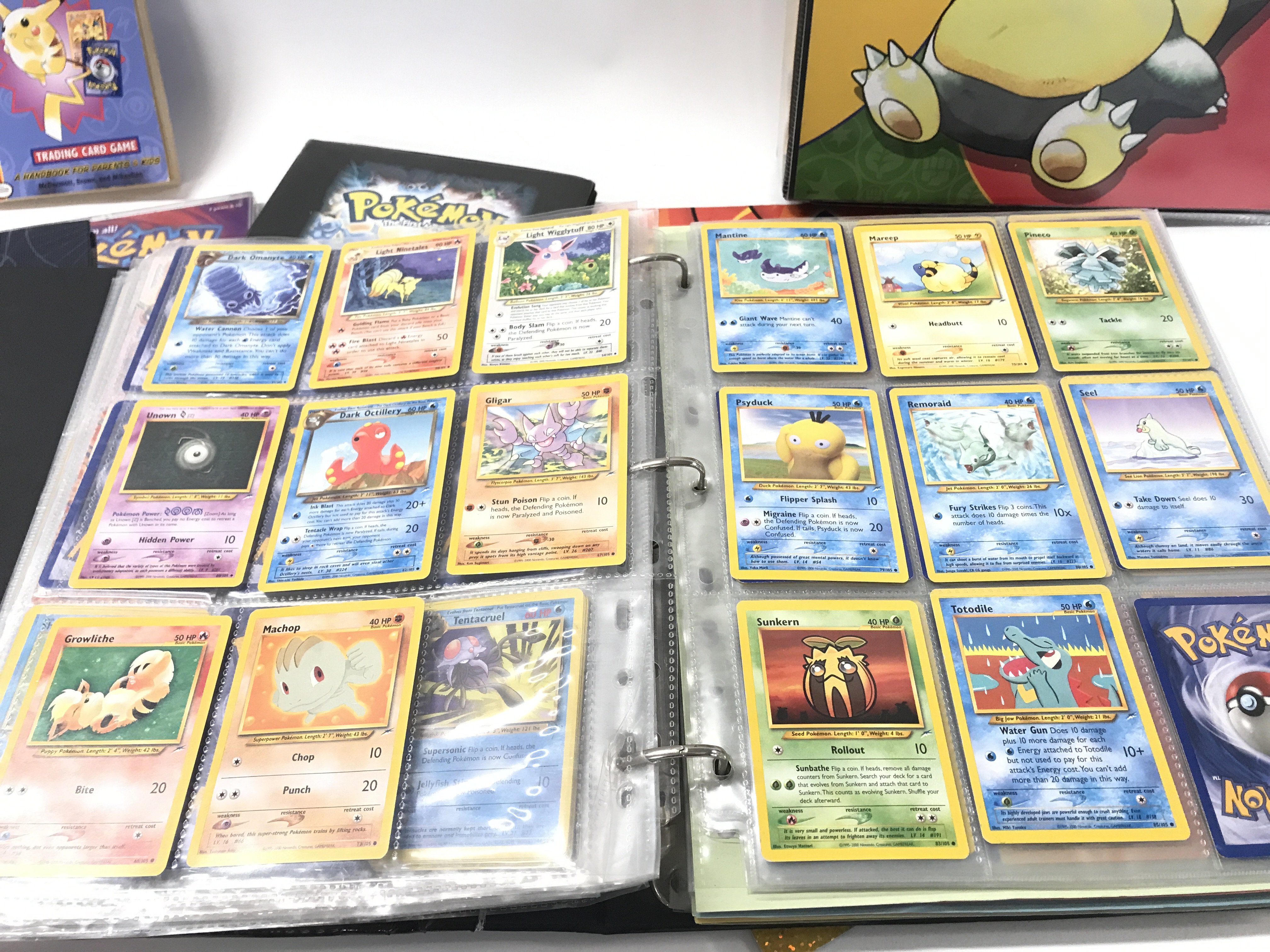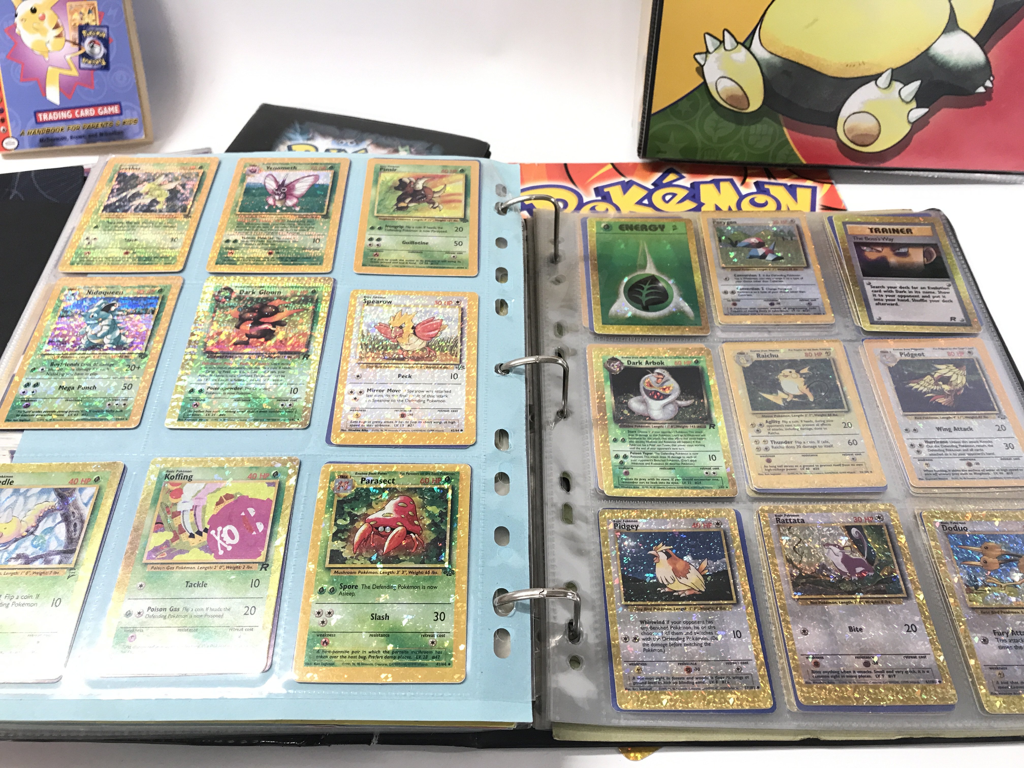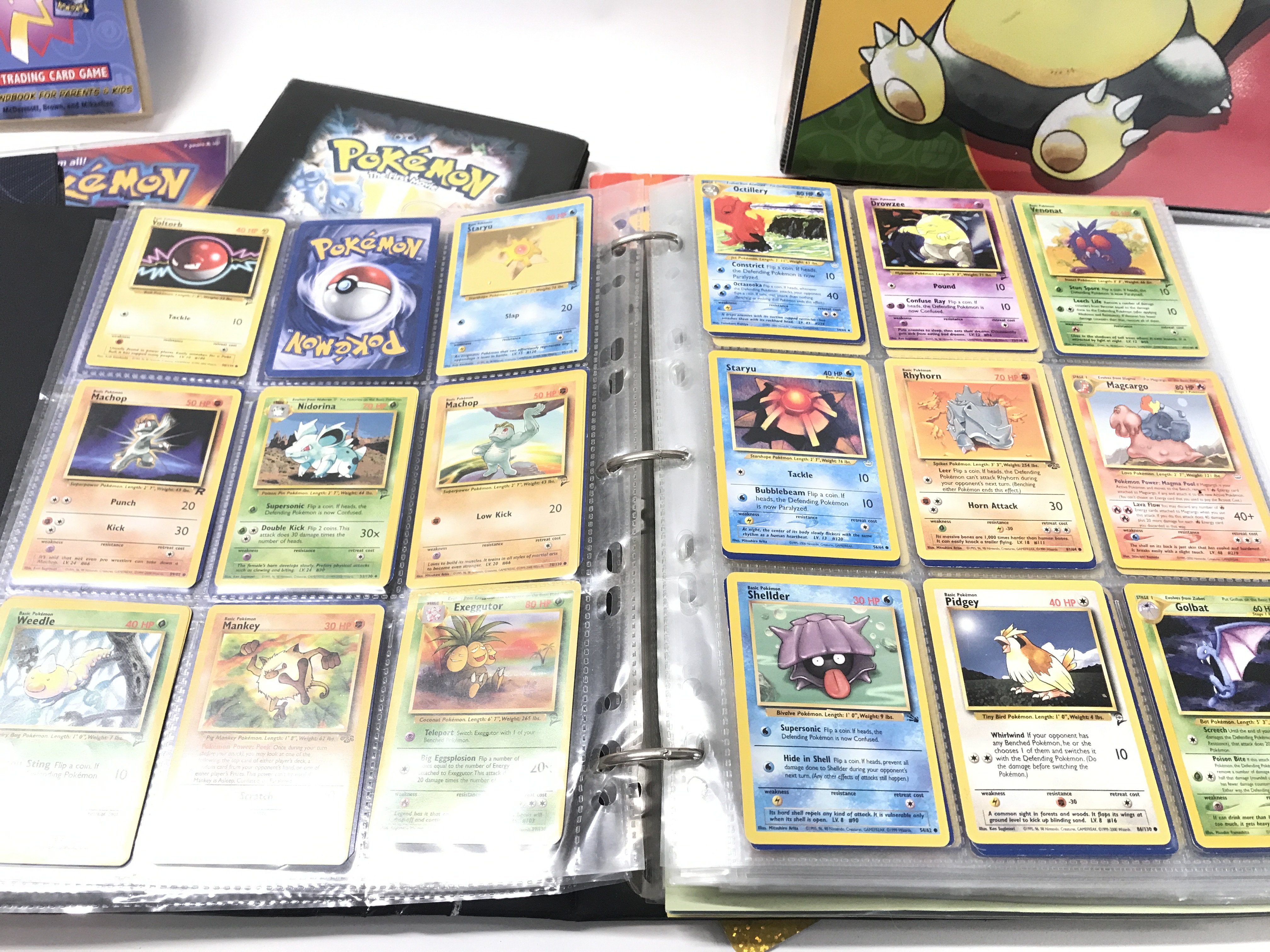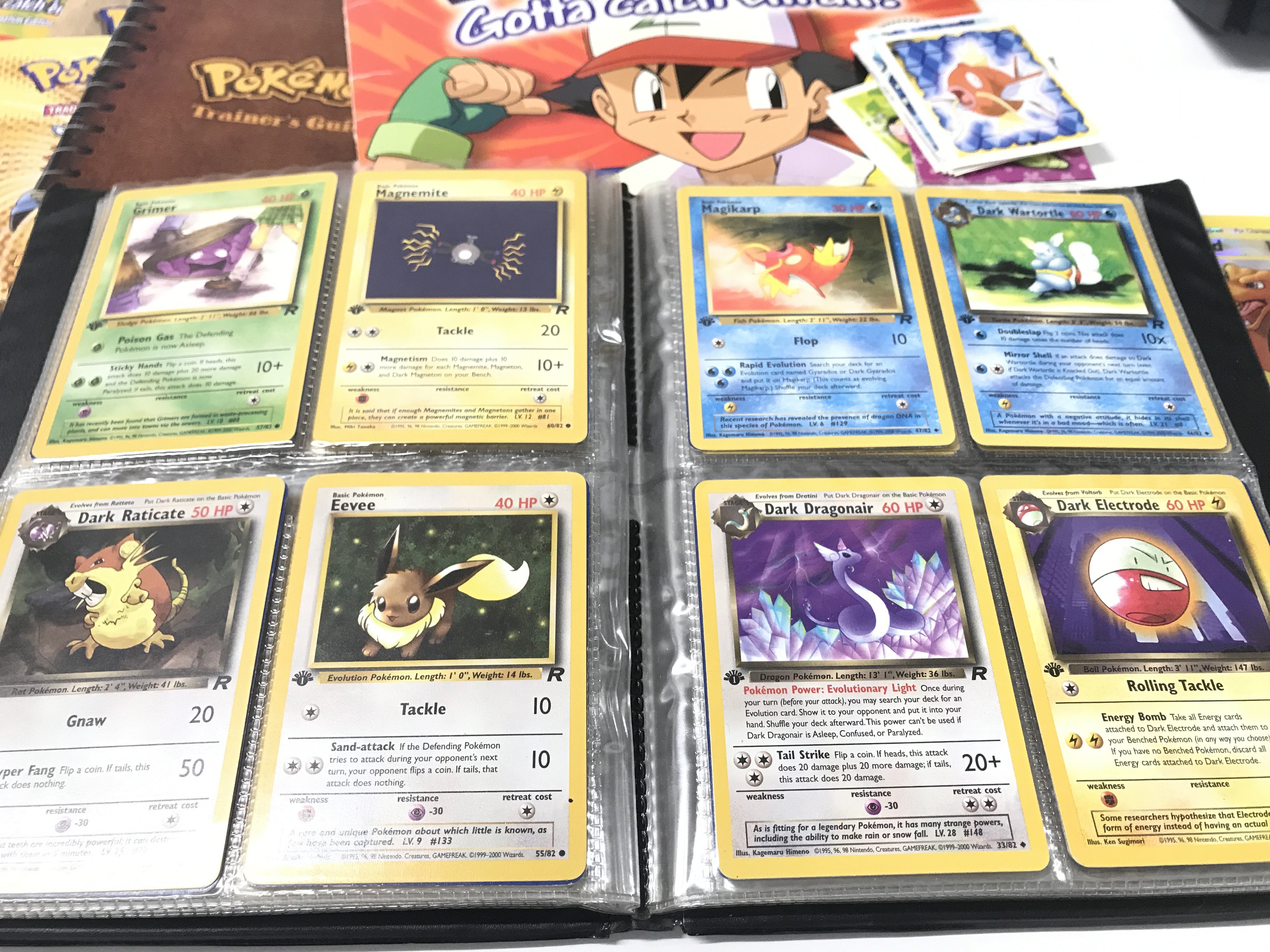 4 X Binders Containing Vintage Pokemon and Digimon Cards. A incomplete Merlin Sticker Book and Coin Game.