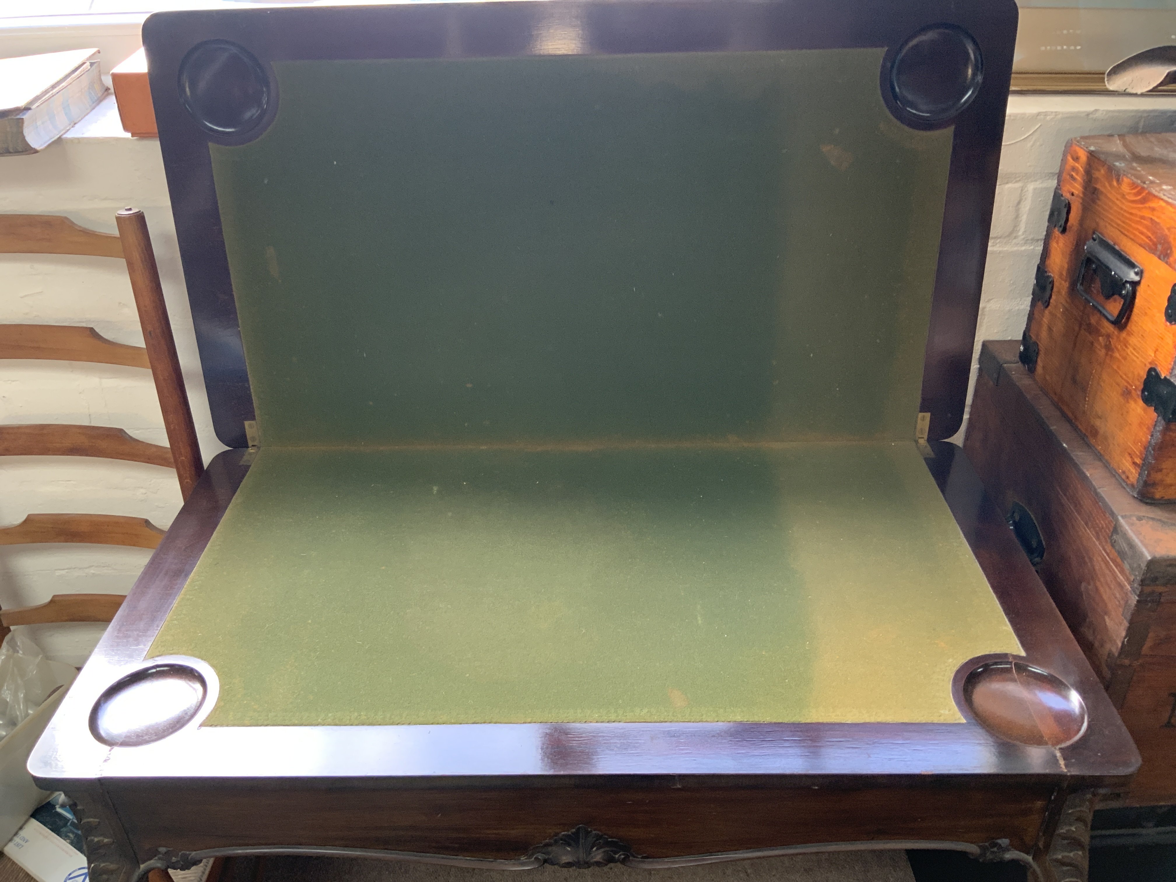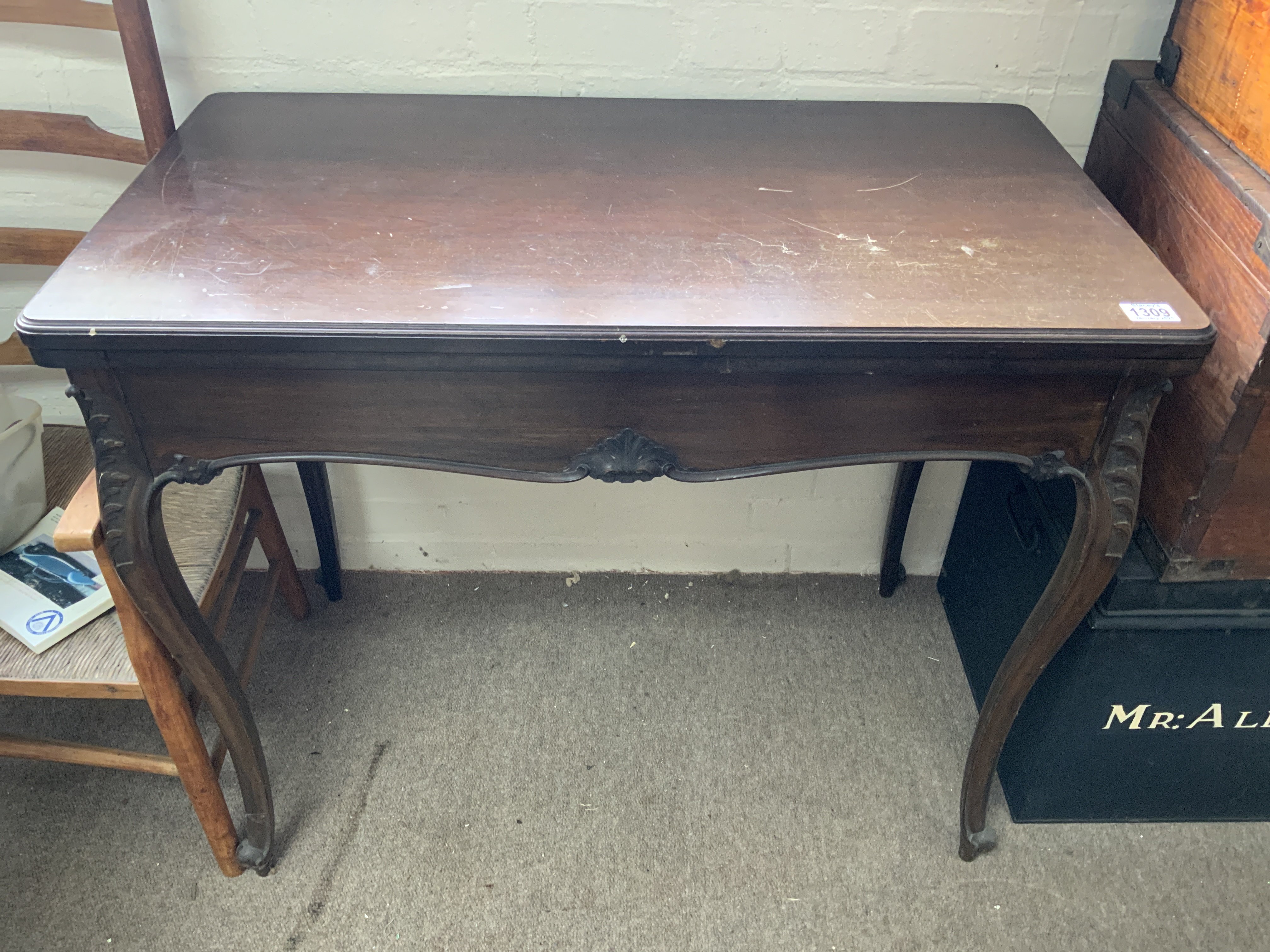 A Victorian mahogany card table. 89cm x 49cm x 76cm
