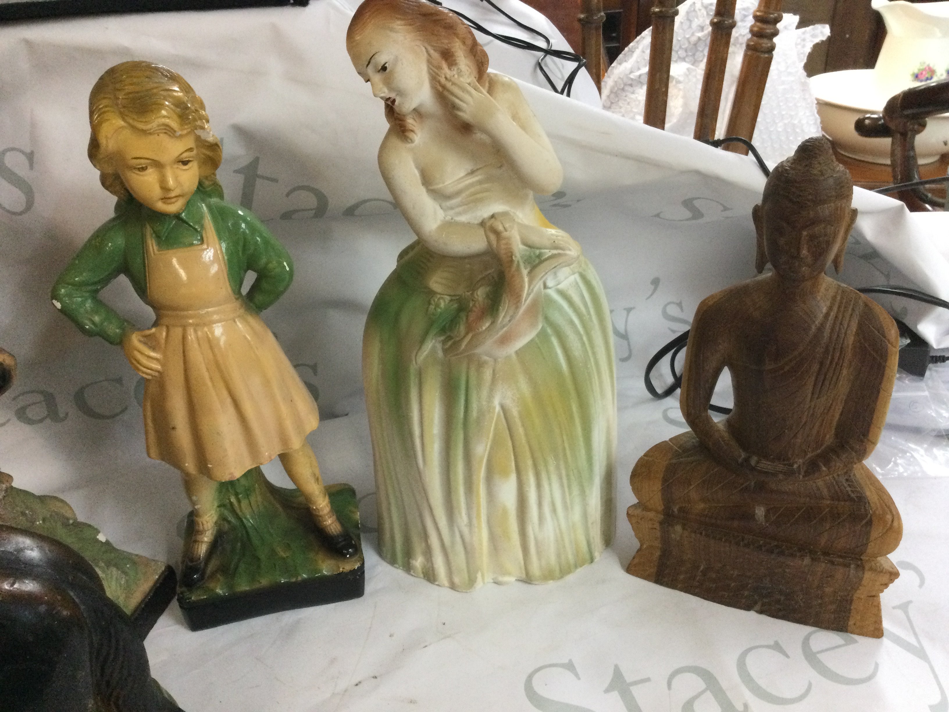 A collective lot of assorted ceramics including a German Shepard figurine. Postage D