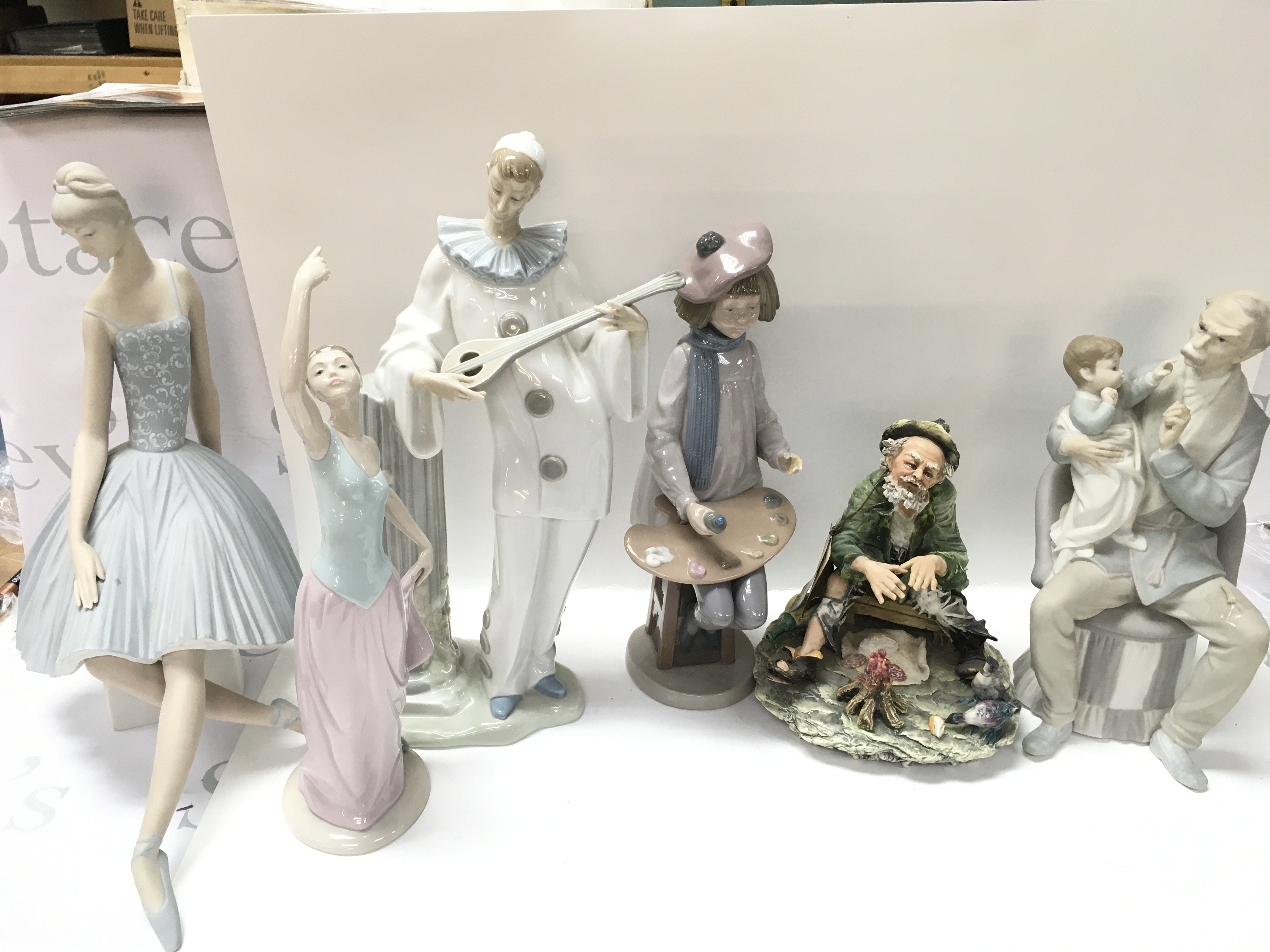 A collection of porcelain figures including Lladro, Capodimonte. This lot cannot be posted