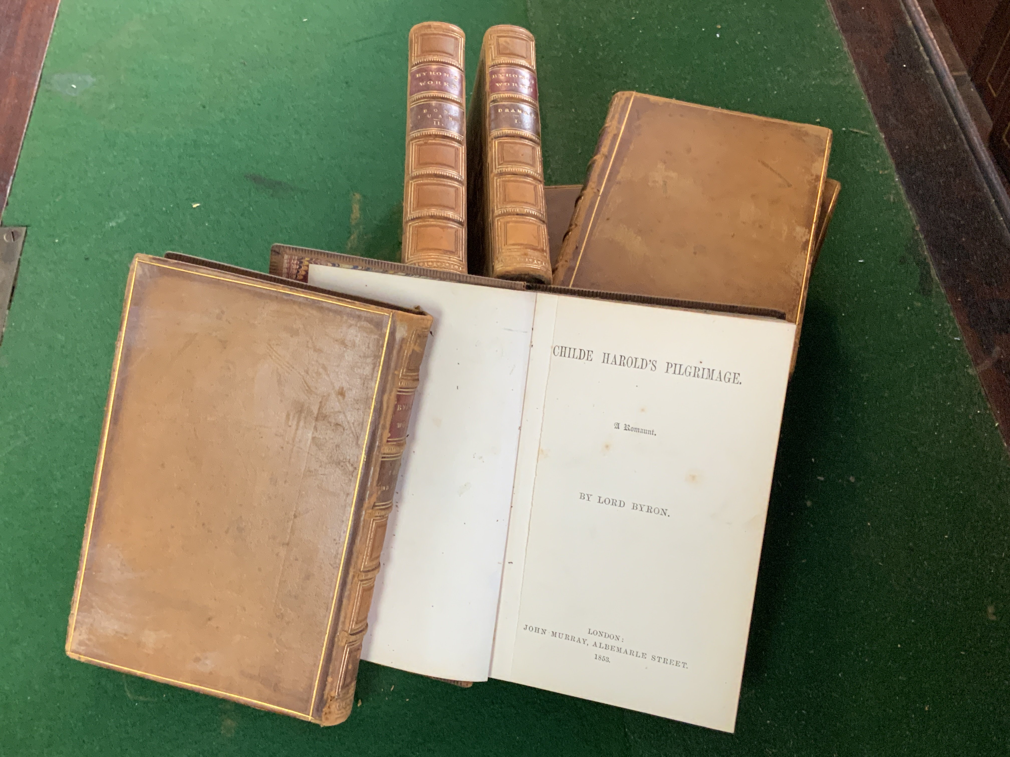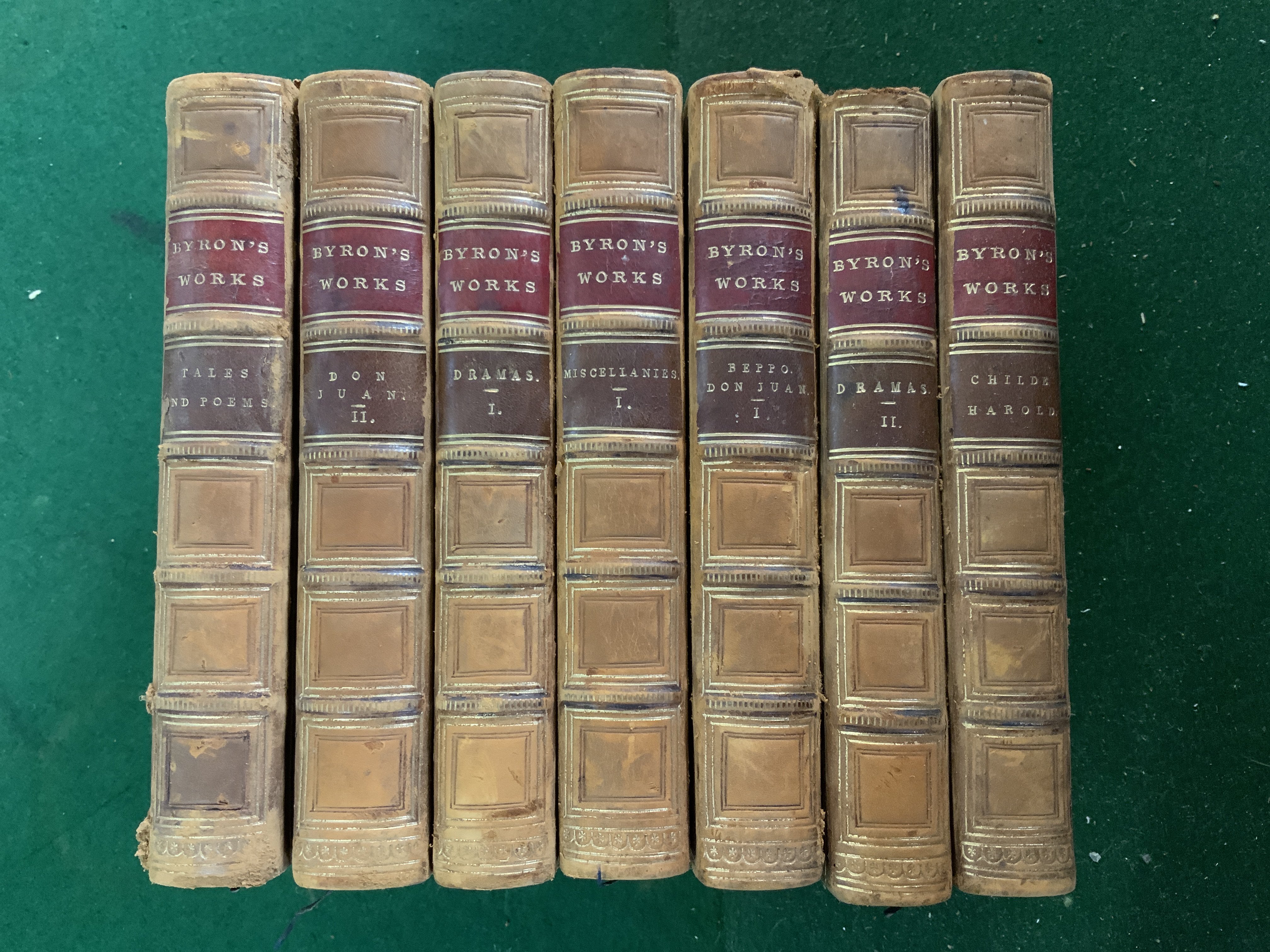 Byron's Works, Lord Byron, Published by John Murray, London, 1853 7 volumes. Tan leather binding.