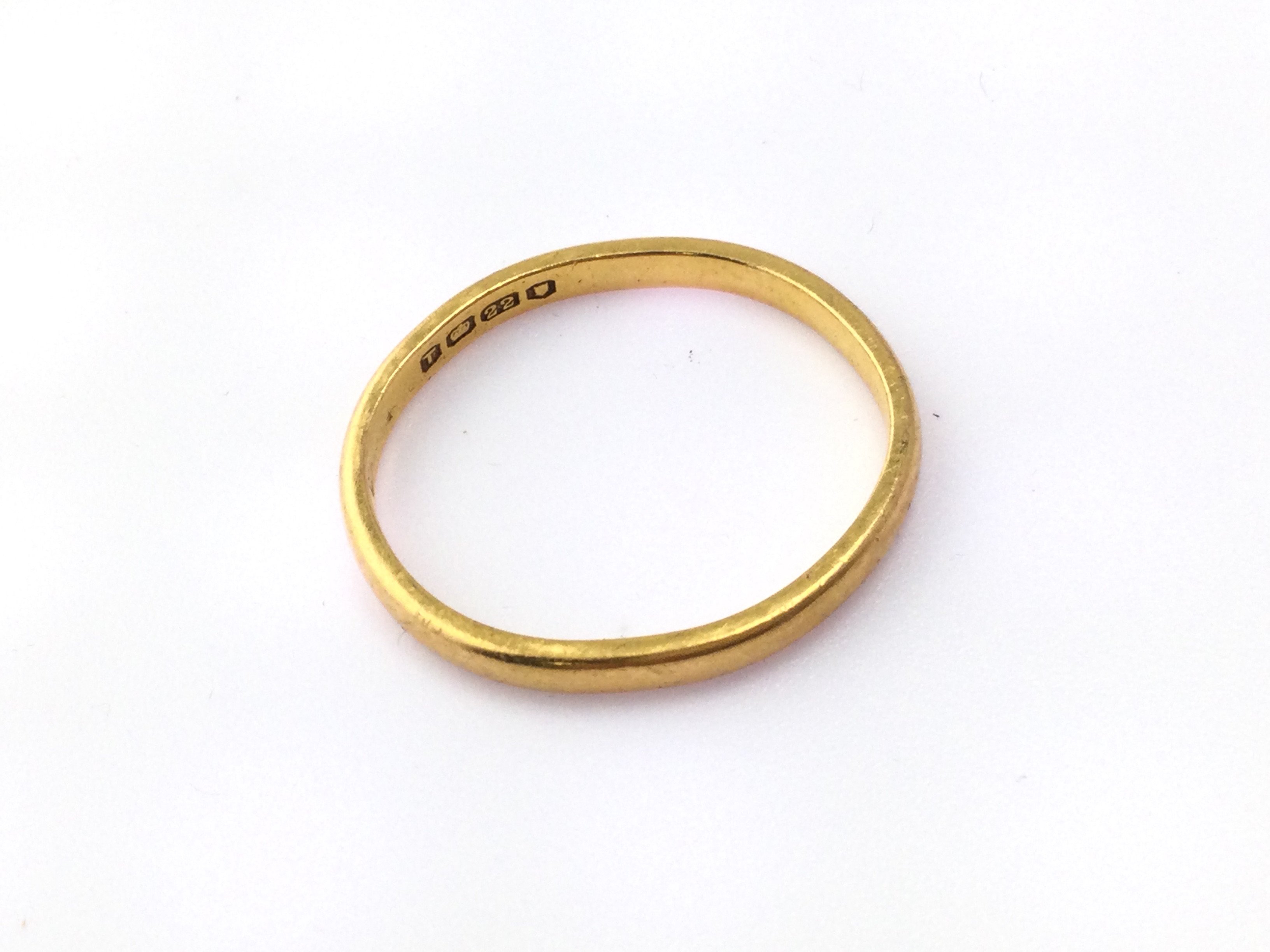22ct gold wedding band. 3.59g approx size R please note misshapen