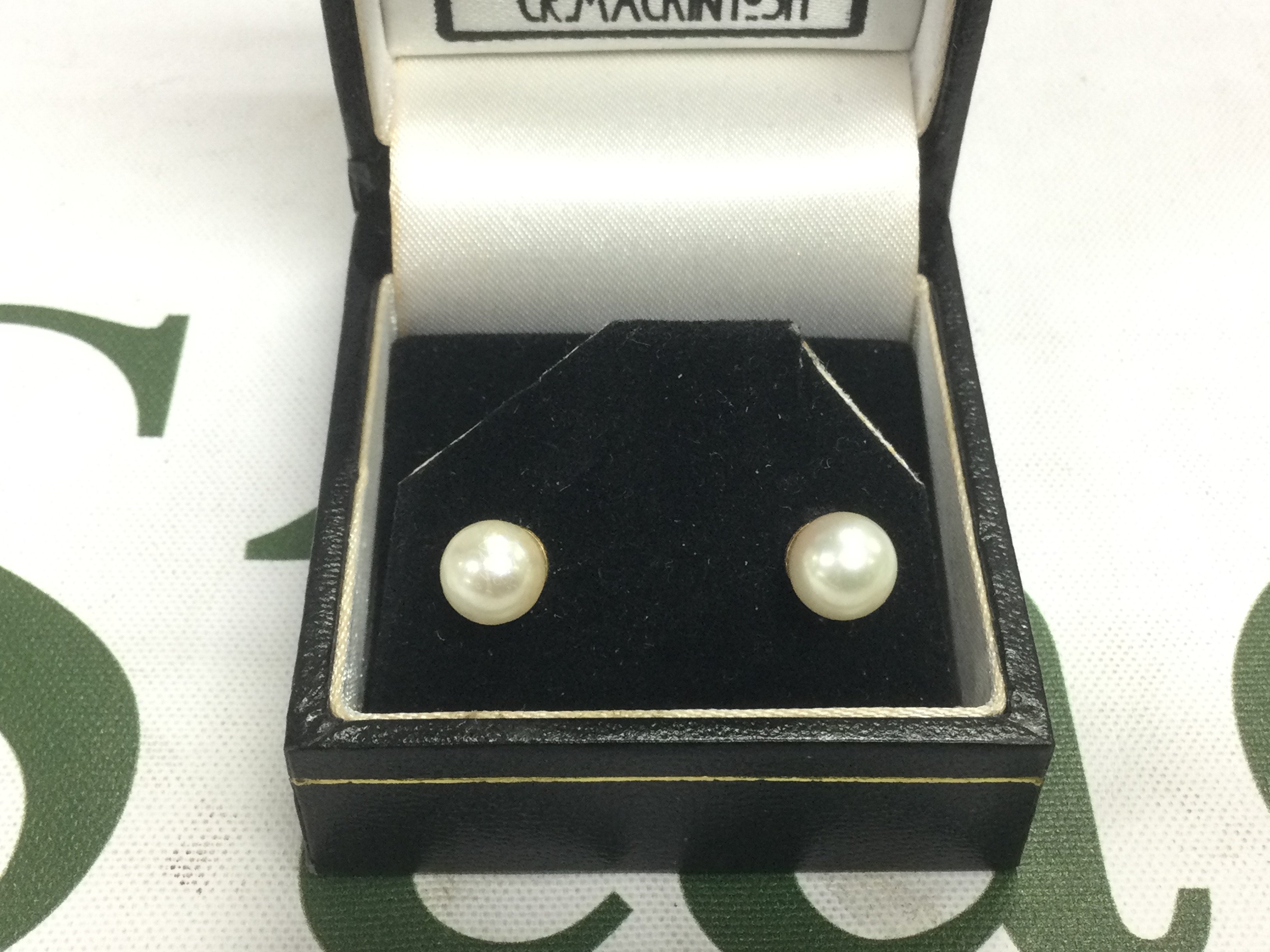 A pair of pearl and 9ct gold earrings. Shipping category A.